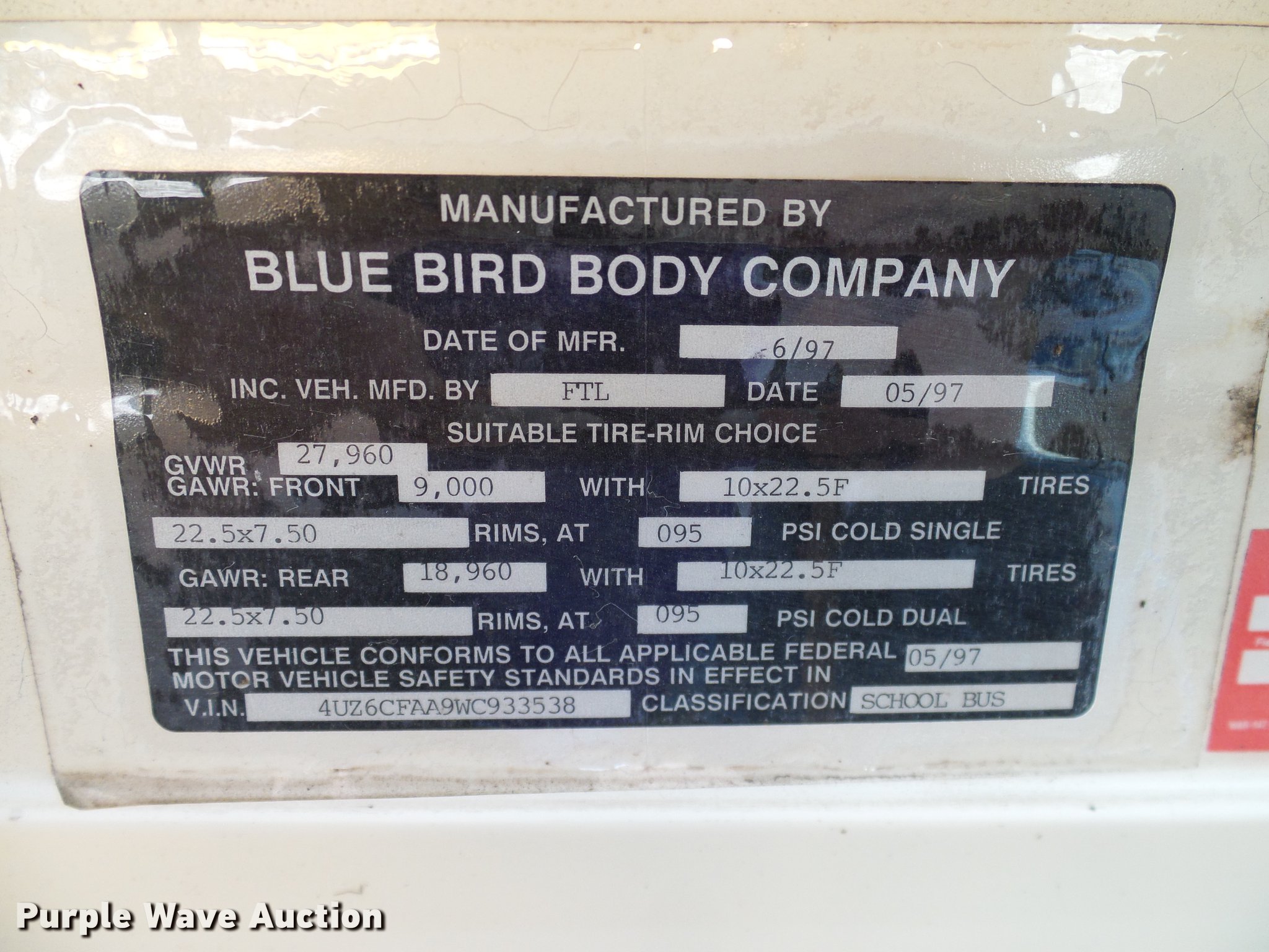 Purple Wave is selling a used Bus in Texas. This item is a 1998 Freightliner FS65 Blue Bird school bus with the following: 8,984 miles on odometer, Cummins ISB 5.9L L6 turbo diesel engine, Automatic transmission, Single axle, Heat, Suspension seat, 47 passenger capacity, (25) adult seats, Ceiling, rear, and side emergency exits, Block heater, Spring suspension, Air brakes, 276" wheelbase, 11R22.5 tires, GVWR 27,960 lbs, Air brakes will not release, Unit# B181