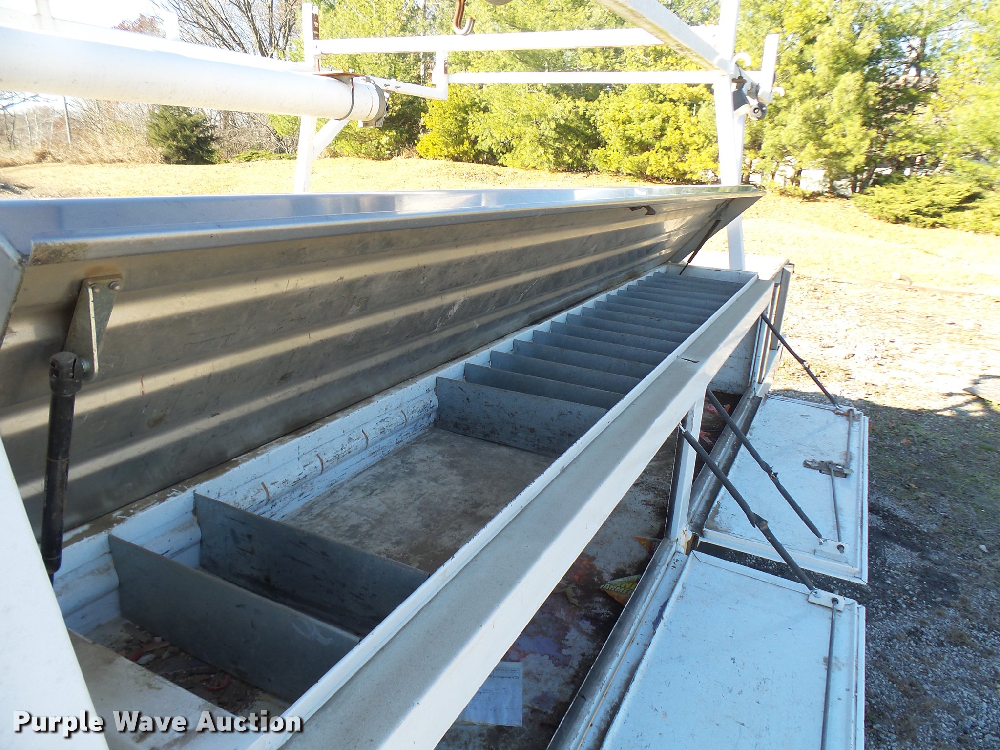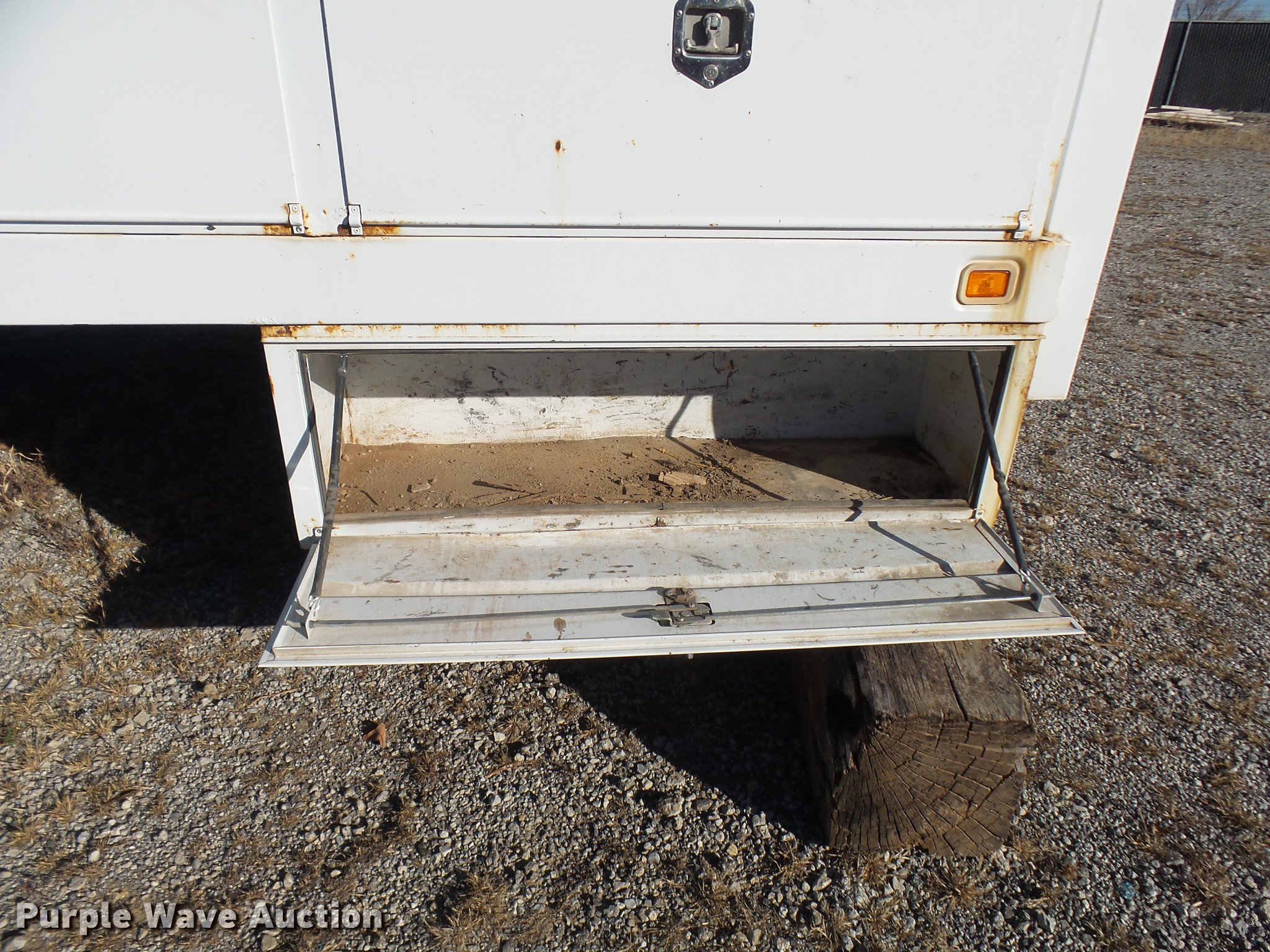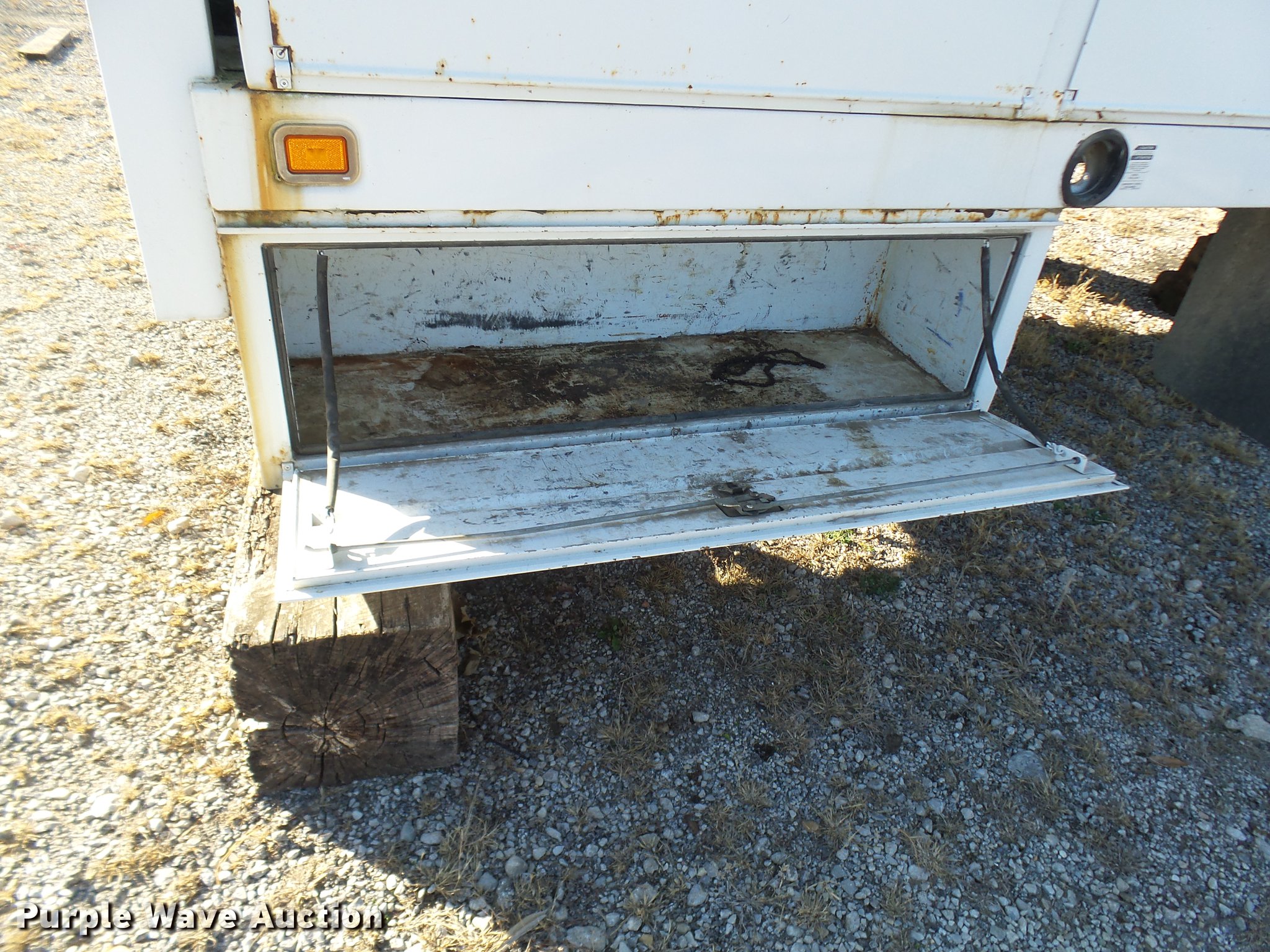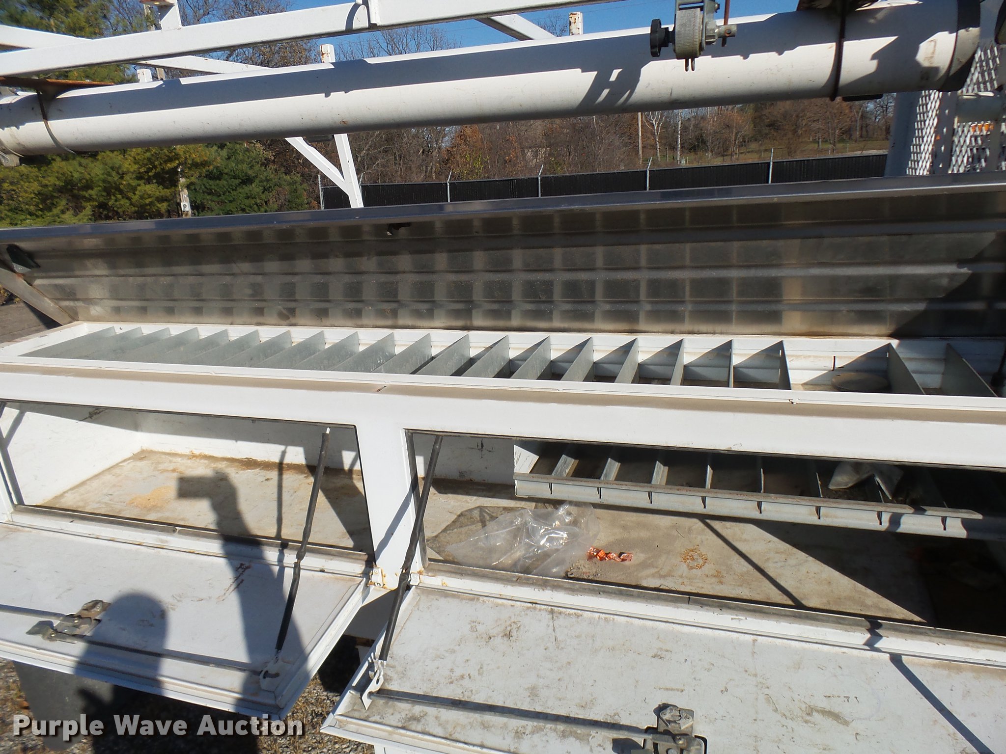 Purple Wave is selling a used Truck Part and Attach. in Missouri. This item is a 2006 Harbor truck body/Knapheide utility bed with the following: 12.5'L x 8'W, Steel floor, Headache rack, Ladder/pipe rack, (2) side storage boxes, Oxygen and acetylene tank storage, Stake pockets, Removable tailgate and sides, Receiver hitch, Drop bumper and lights, Mud flaps