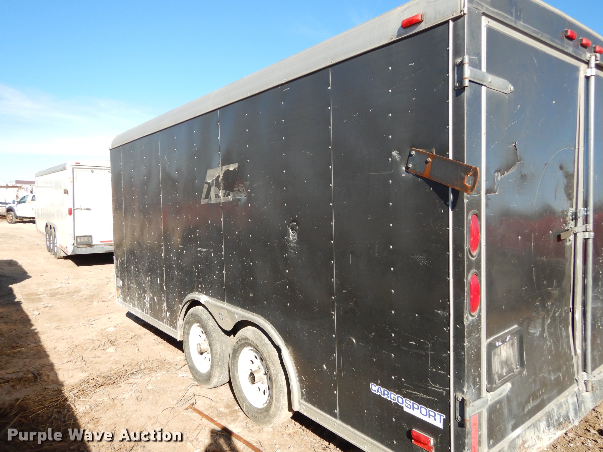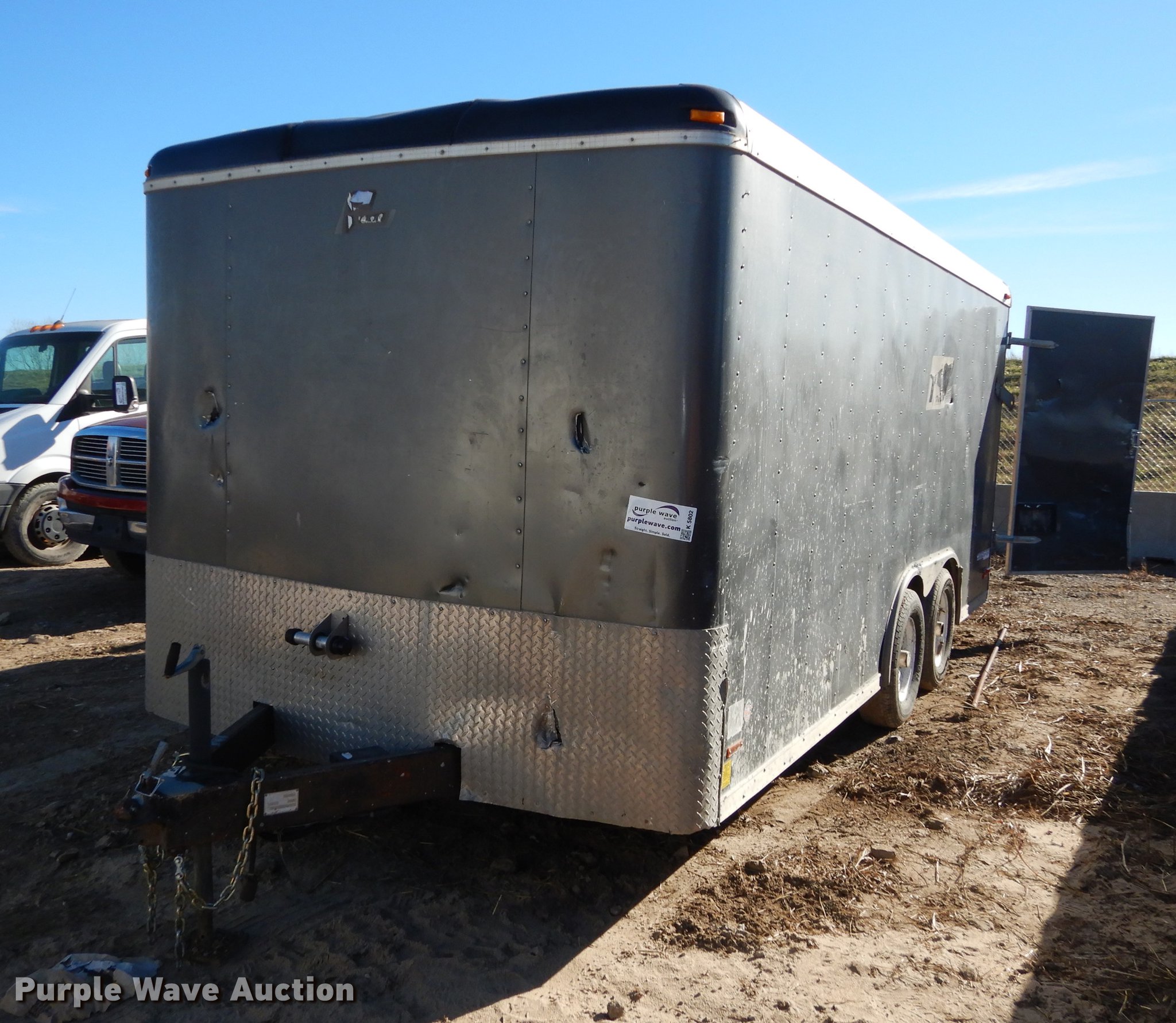 Purple Wave is selling a used Enclosed Cargo Trailer in Kansas. This item is a 2004 Pace C5816TA2 Sport enclosed cargo trailer with the following: 200"L x 94"W, Side entry door, Rear swing doors, 2 5/16" ball hitch, Safety chains, Lights, Tandem axle, 205/75R15 tires, GVWR 7,000 lbs, Unit# 21-192