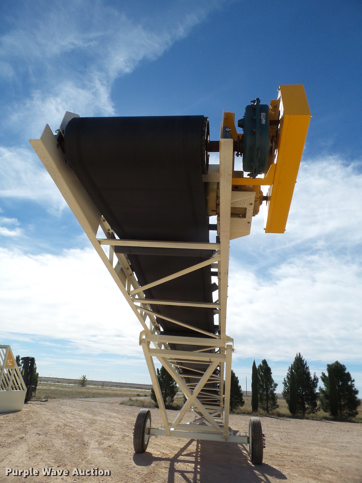 Purple Wave is selling a used Conveyor in Texas. This item is a JP 36/60 radial stacking conveyor with the following: 60'L, 36"W belt, Bolder electric motor, 20 HP, PPI idler pulleys, Dodge TA4207H, Fifth wheel hitch, Pintle hitch, 11R22.5 tires, Unused