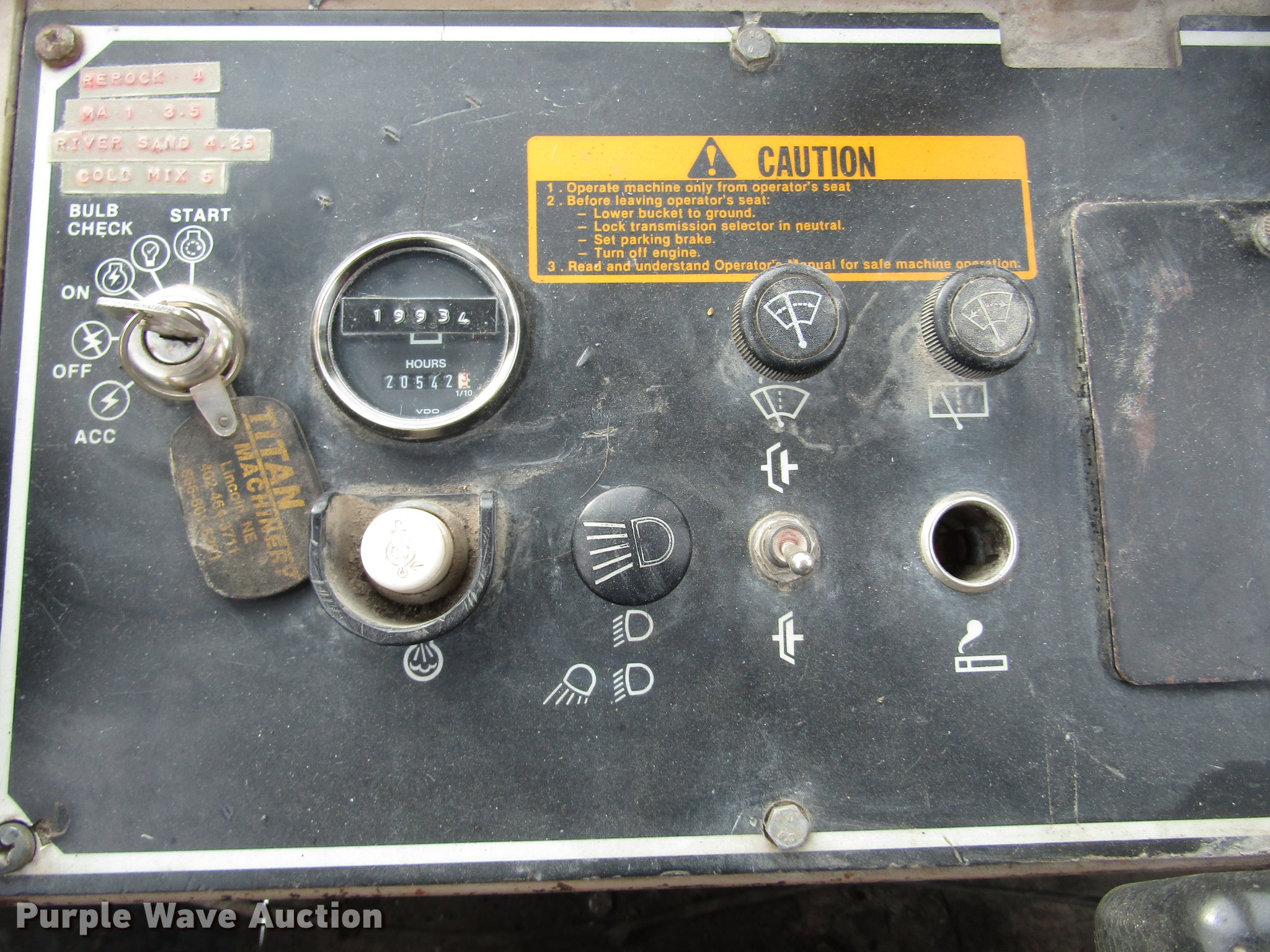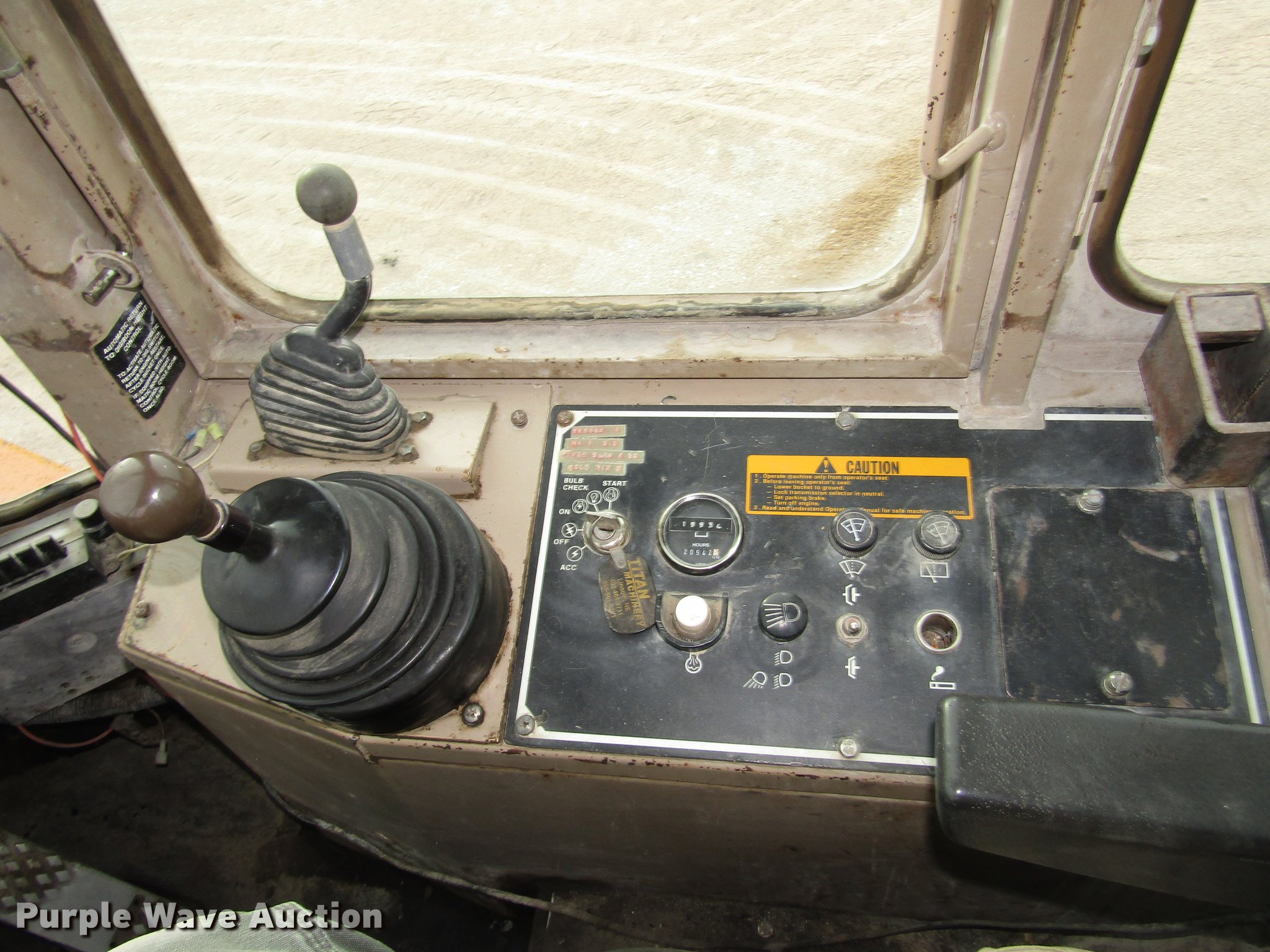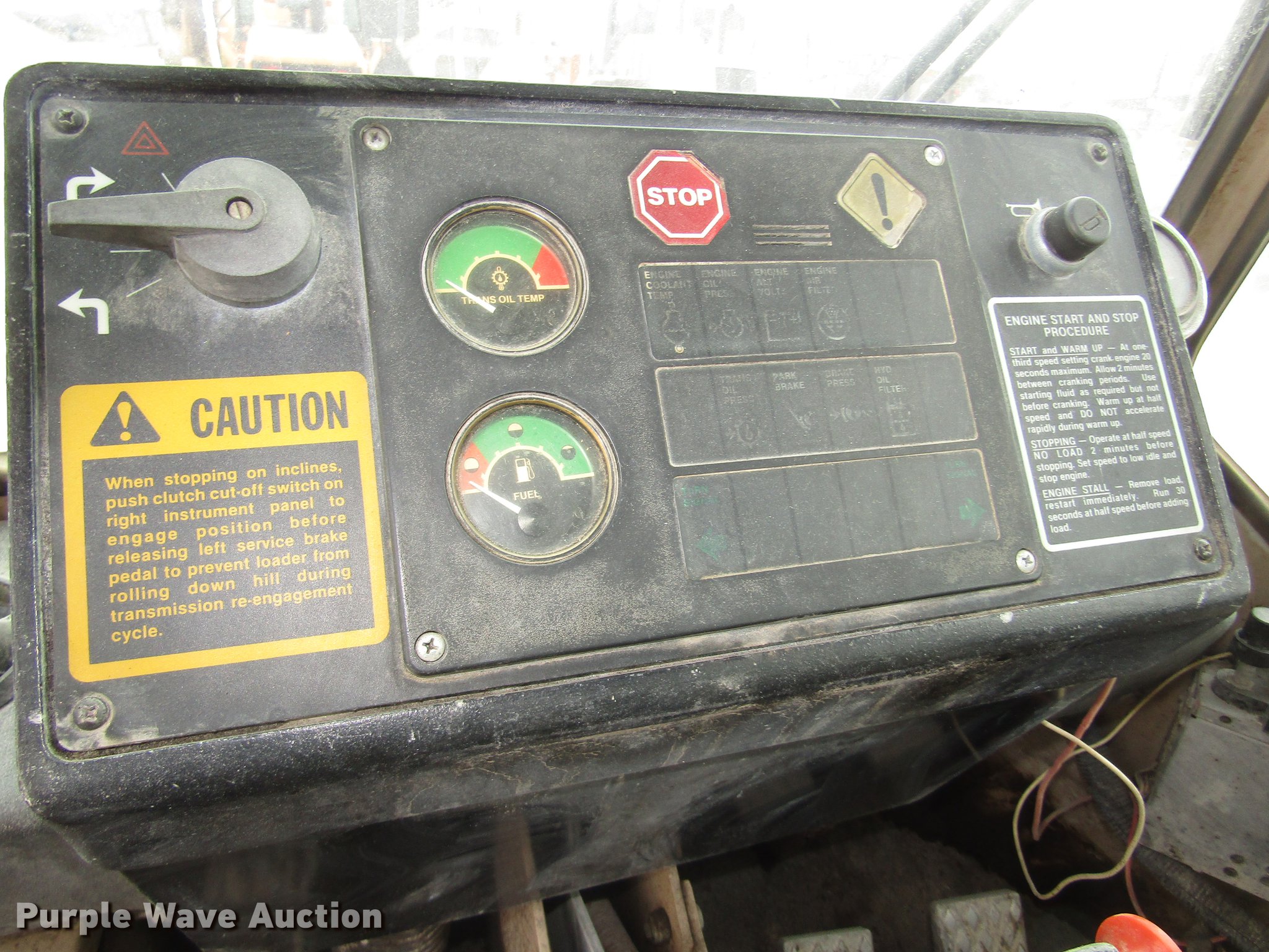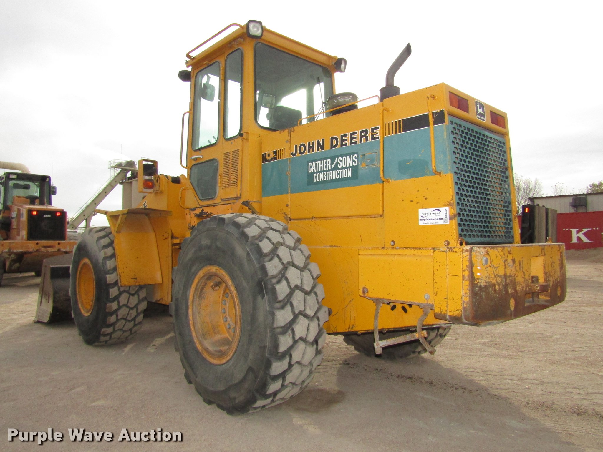 Purple Wave is selling a used Wheel Loader in Nebraska. This item is a 1988 John Deere 544E wheel loader with the following: 20,543 hours on meter, John Deere six cylinder turbo diesel engine, 115 HP, Powershift transmission, 4F-3R gears, Front differential lock, EROPS, Serial 8768379, Heat, AM/FM, Tilt steering wheel, Suspension seat, Motorola two way radio, Joystick bucket controls, Auxiliary hydraulics, Wipers, Front and rear work lights, Block heater, WB JD544E 100"W general purpose bucket, 2.5 cu. yd. capacity, Bolt-on cutting edge, 20.5R25 tires, Operator manual, Cab headliner missing, Serial 515939