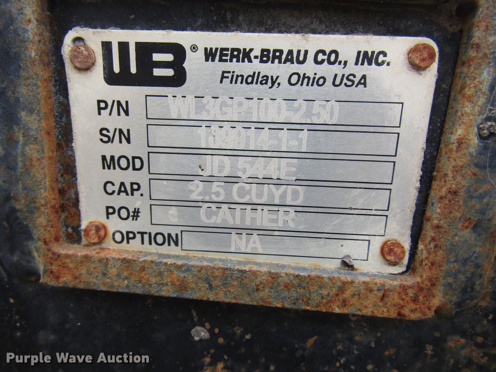 1988 John Deere 544E wheel loader. 20,543 hours on meter, John Deere six cylinder turbo diesel engine 115 HP, Powershift transmission 4F-3R gears, Front differential lock, EROPS Serial 8768379, Heat, AM/FM, Tilt steering wheel, Suspension seat, Motorola two way radio, Joystick bucket controls, Auxiliary hydraulics , Wipers, Front and rear work lights, Block heater, WB JD544E 100"W general purpose bucket 2.5 cu. yd. capacity, Bolt-on cutting edge, 20.5R25 tires, Operator manual , Cab headliner missing, Serial 515939. Cather & Sons Construction Inc.. 6400 N 70th St. Lincoln, NE 68507