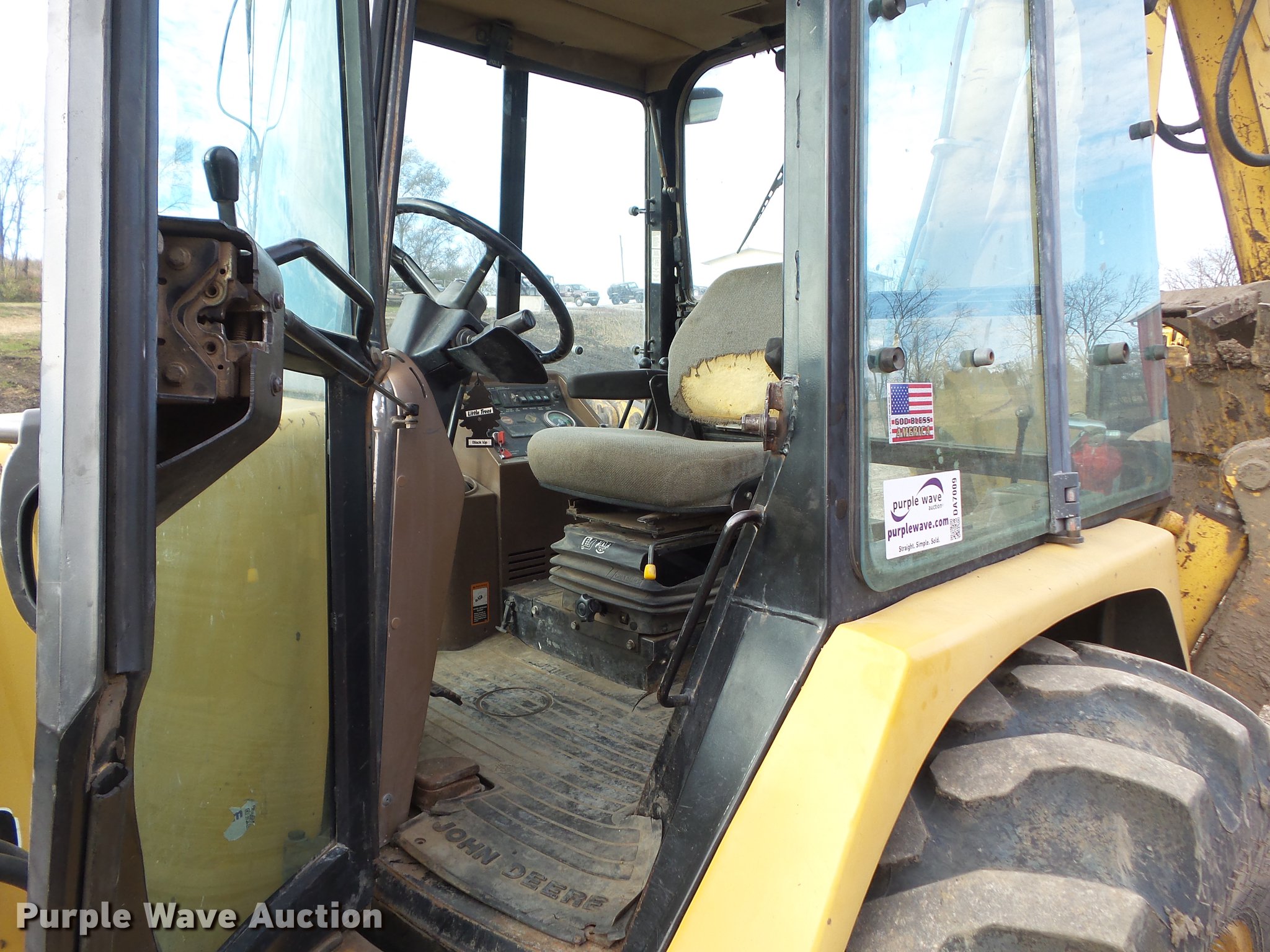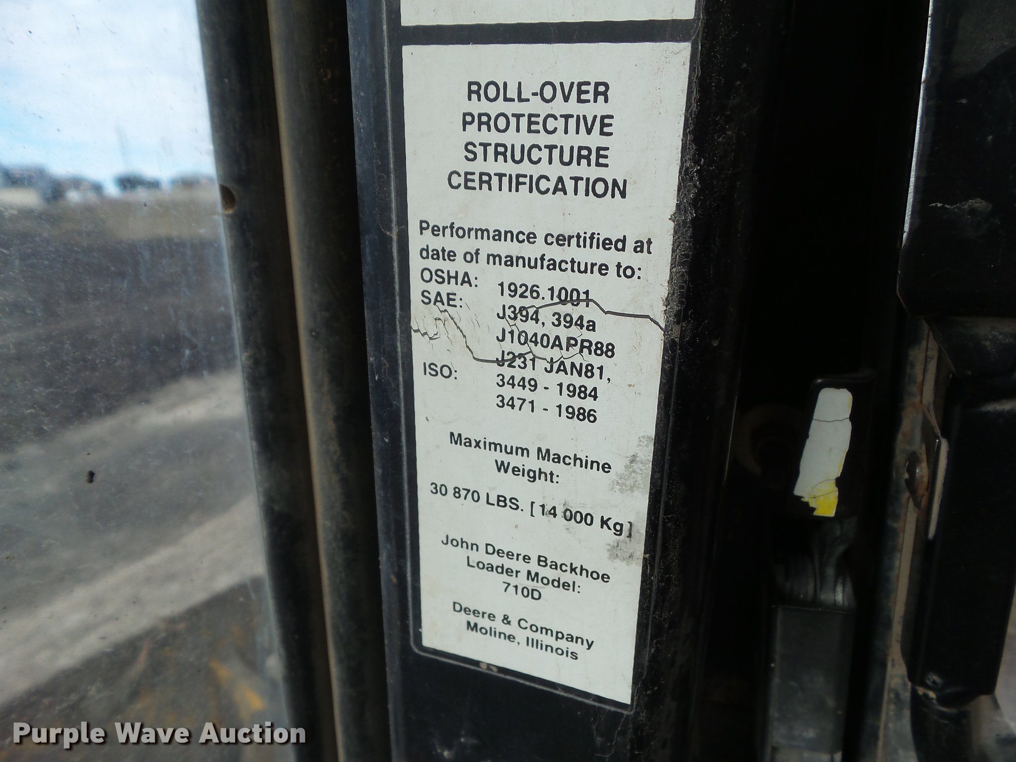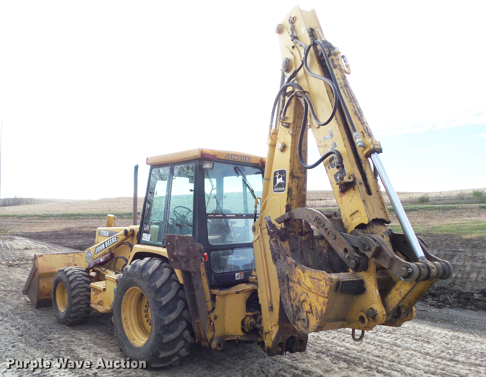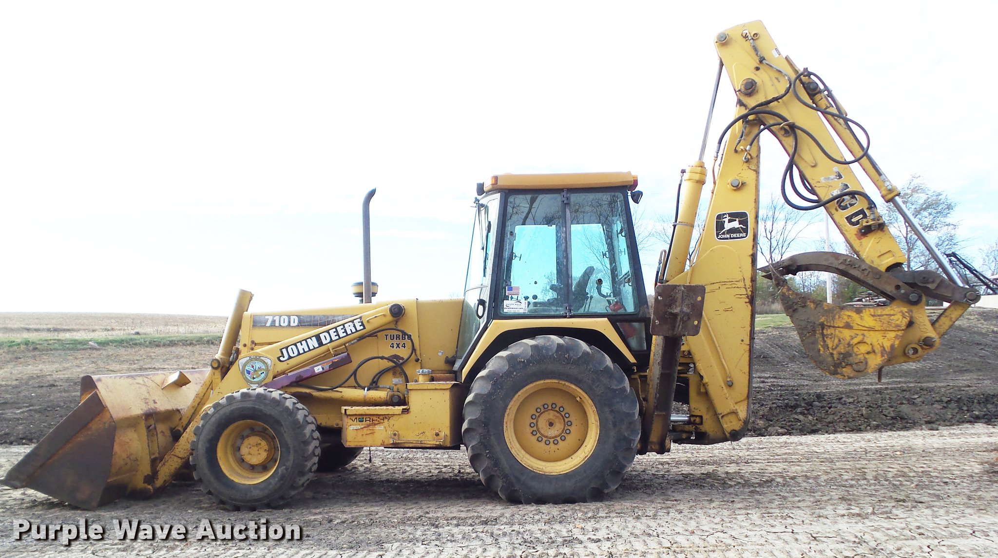 1995 John Deere 710D backhoe. 9,801 hours on meter, Hours may vary, unit is still in use, John Deere 6059TT002 six cylinder turbo diesel engine Serial T06059T505079, Powershift transmission 4F-4R gears, Four wheel drive, Differential lock, EROPS, Tilt steering wheel, Suspension seat, Wipers, Front and rear work lights, John Deere AT164531 96"W loader bucket Bolt-on cutting edge, Auxiliary hydraulics Hydraulics capped, E-stick, Construction Products 36"W backhoe bucket (5) teeth, Amulet M071AW mechanical thumb Adjustable links, Serial 9813, Block heater, Ether start, Front counter weights, 15-19.5NHS front tires, 21L-28 rear tires, Serial T0710DJ811620. View repairs. Backer Produce. 11696 SE Miller Dr. Runnells, IA 50237