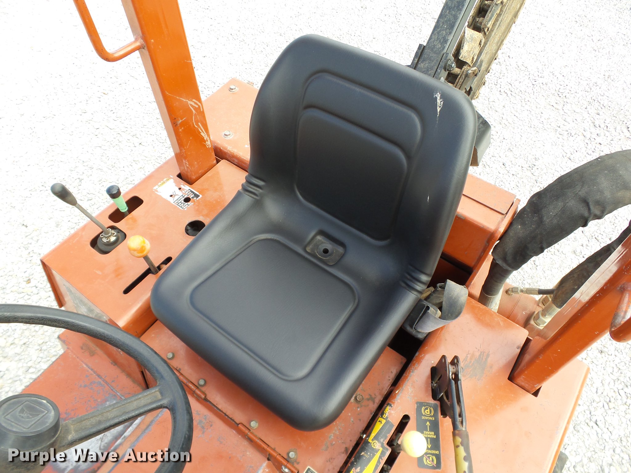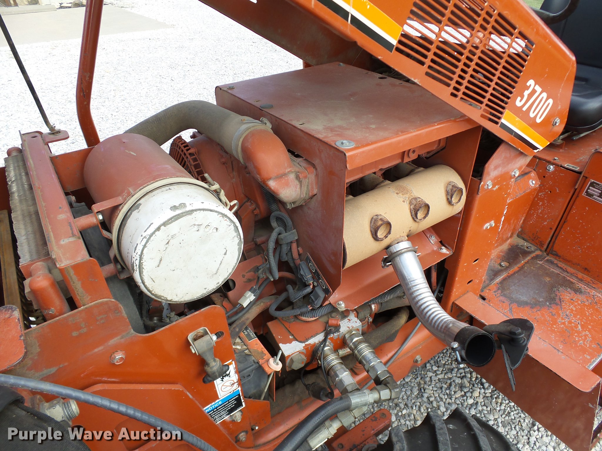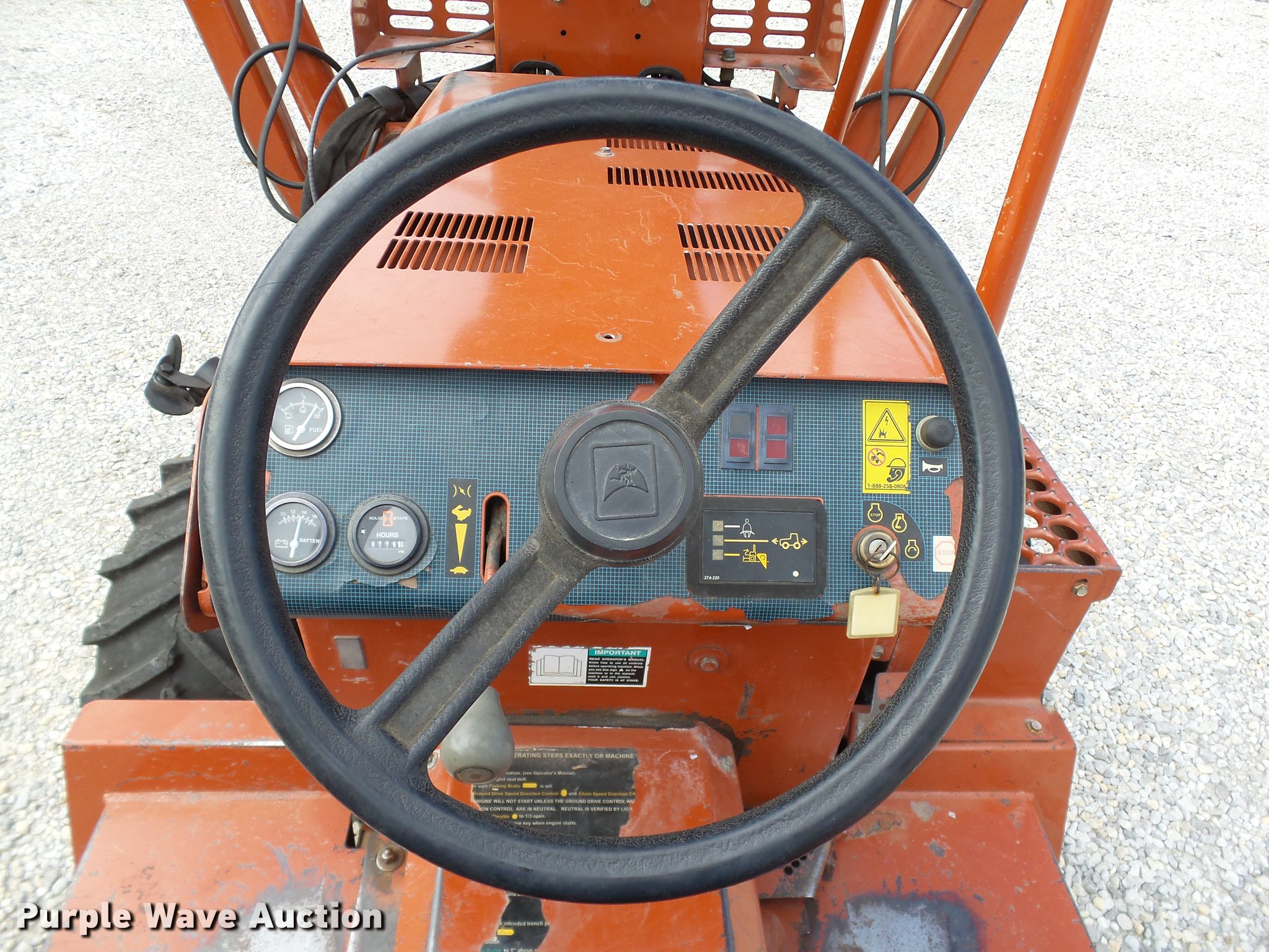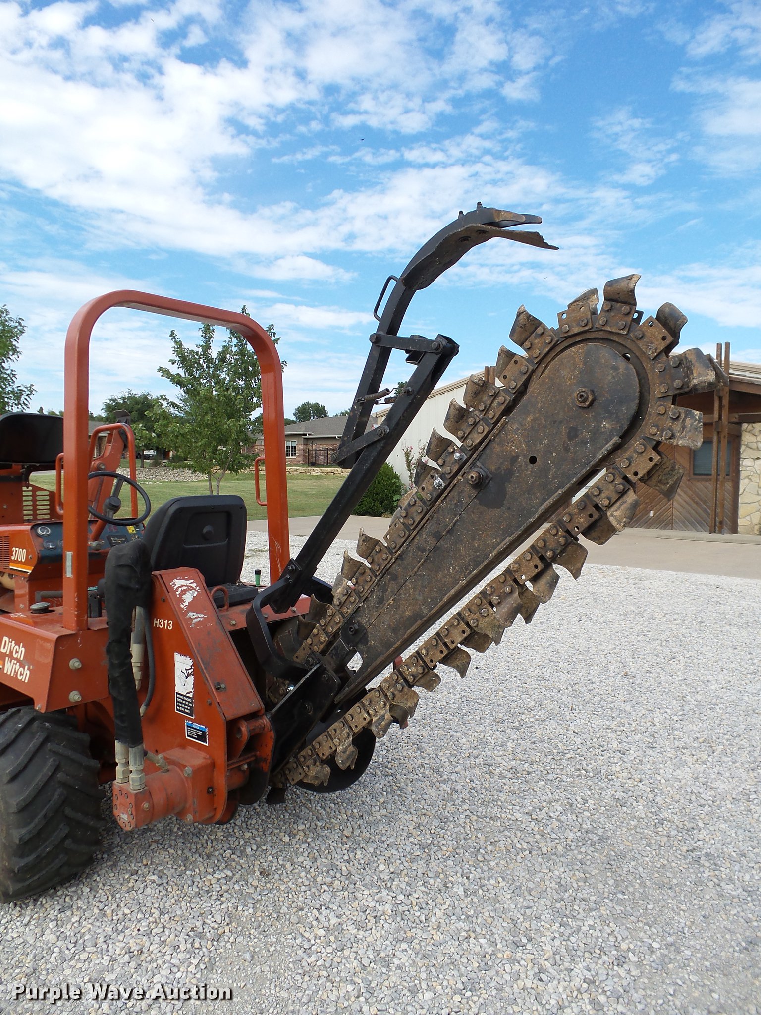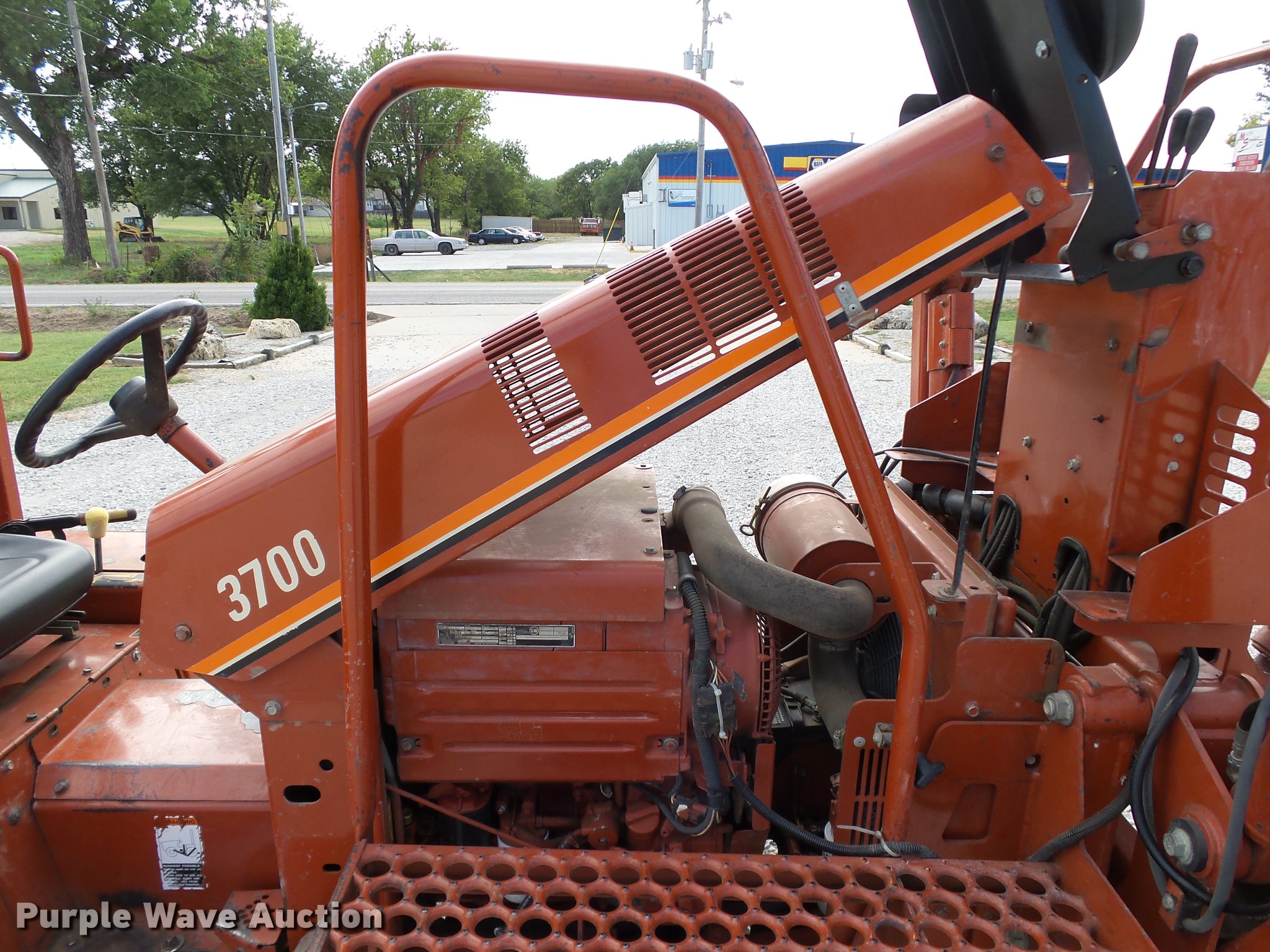 Purple Wave is selling a used Trencher or Rock Saw in Oklahoma. This item is a 2000 Ditch Witch 3700DD trencher with the following: 780 hours on meter, Deutz F3L1011F three cylinder diesel engine, 45 HP, Serial 00447673, Hydrostatic transmission, Four wheel drive, Auxiliary hydraulic connections, Two Post ROPS bar, H313 trencher, 63" trenching depth, 6" cutting width, Dirt teeth, Restraint bar, Crumber bridge, Manual crumber arch, Serial 8T0185, A322 backhoe, 72" maximum digging depth, 102" reach from pivot, 160 degree swing, 12"W bucket, (4) teeth, Serial 1T0414, 64"W four-way backfill blade, Carlisle Tru Power 26 x 12.00-12 NHS tires, Serial 3T0825