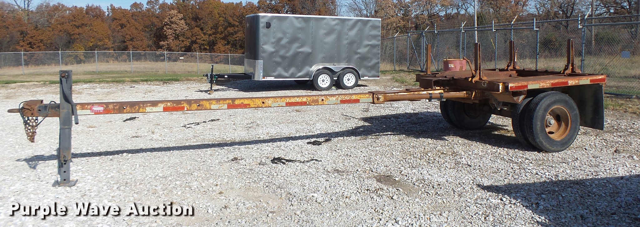 Purple Wave is selling a used Trailer Other in Missouri. This item is a 1979 Utility pole trailer with the following: 23'L x 90"W, Steel deck, Pintle hitch, Single leg landing gear, Spring suspension, Electric brakes, Steel wheels, 7.50R16LT tires, Unit# 178-3