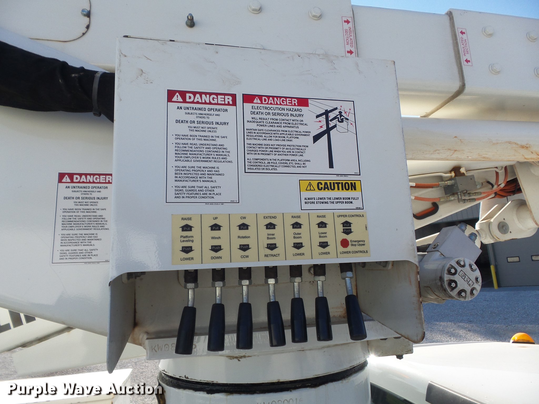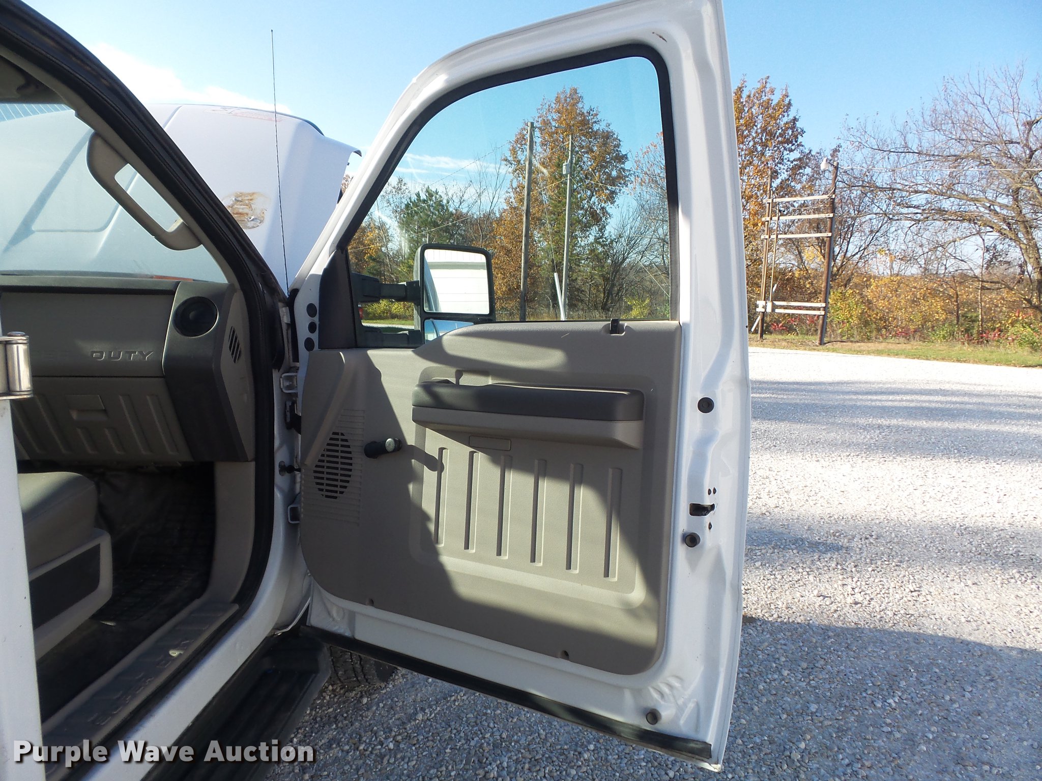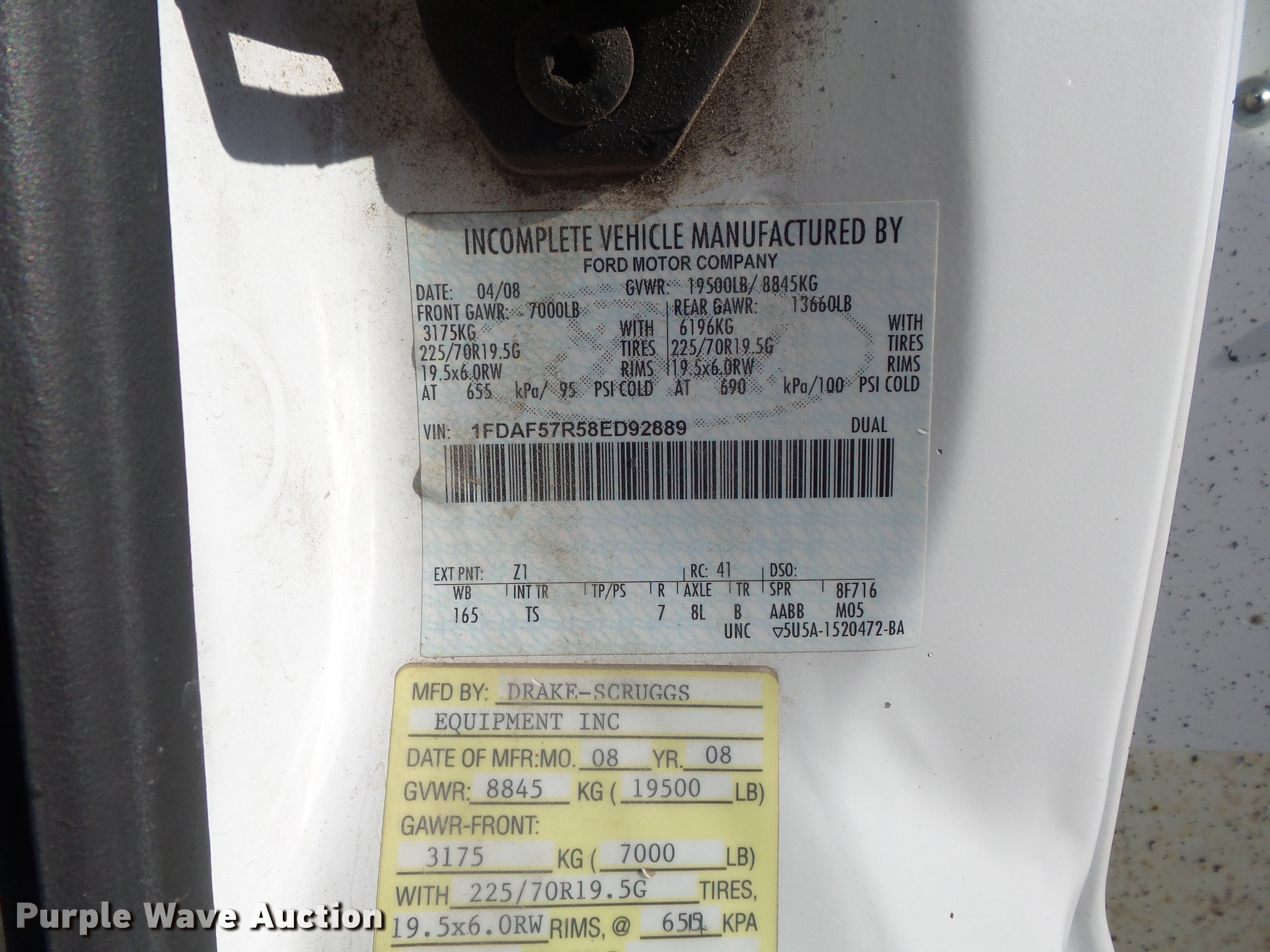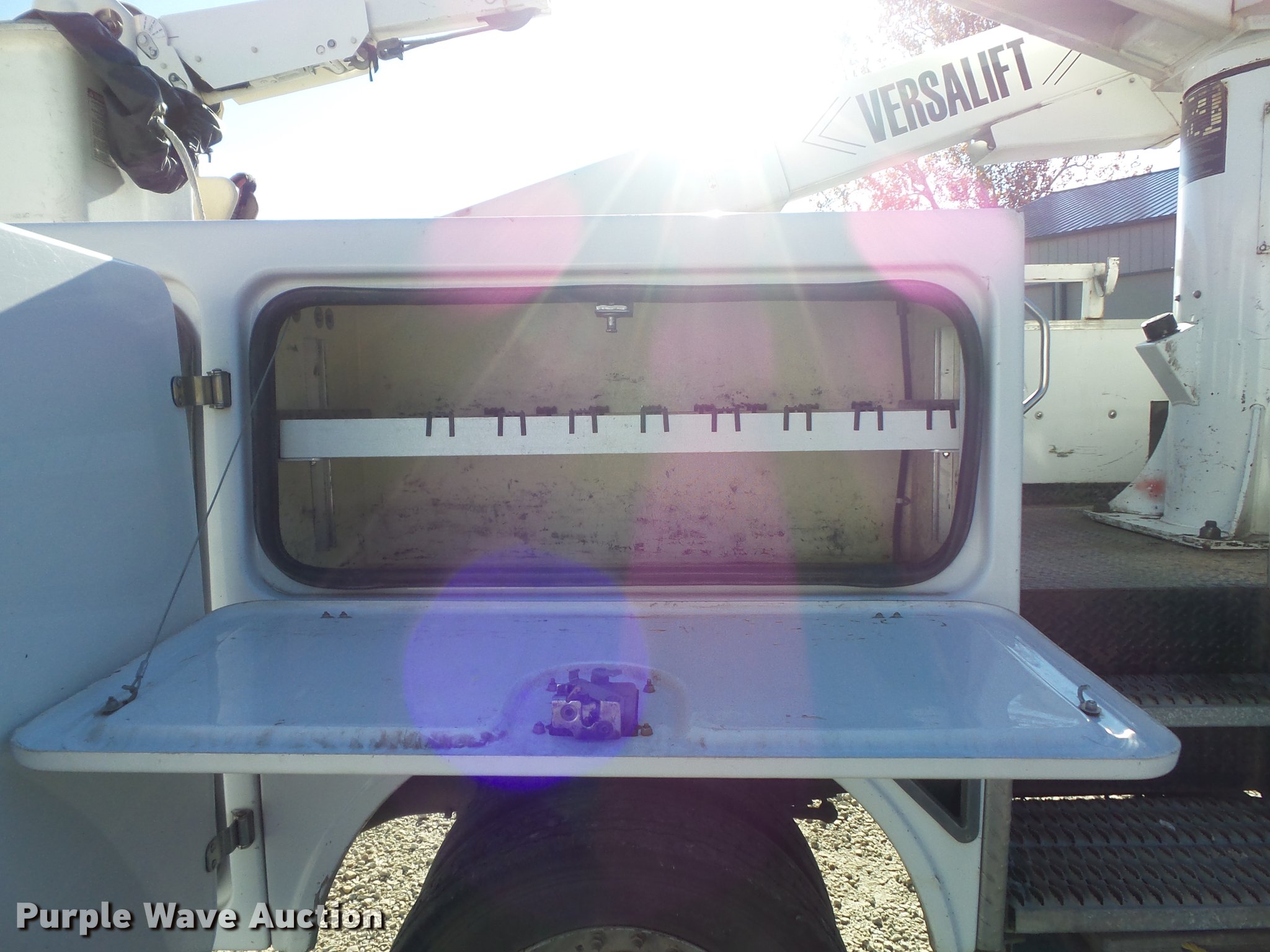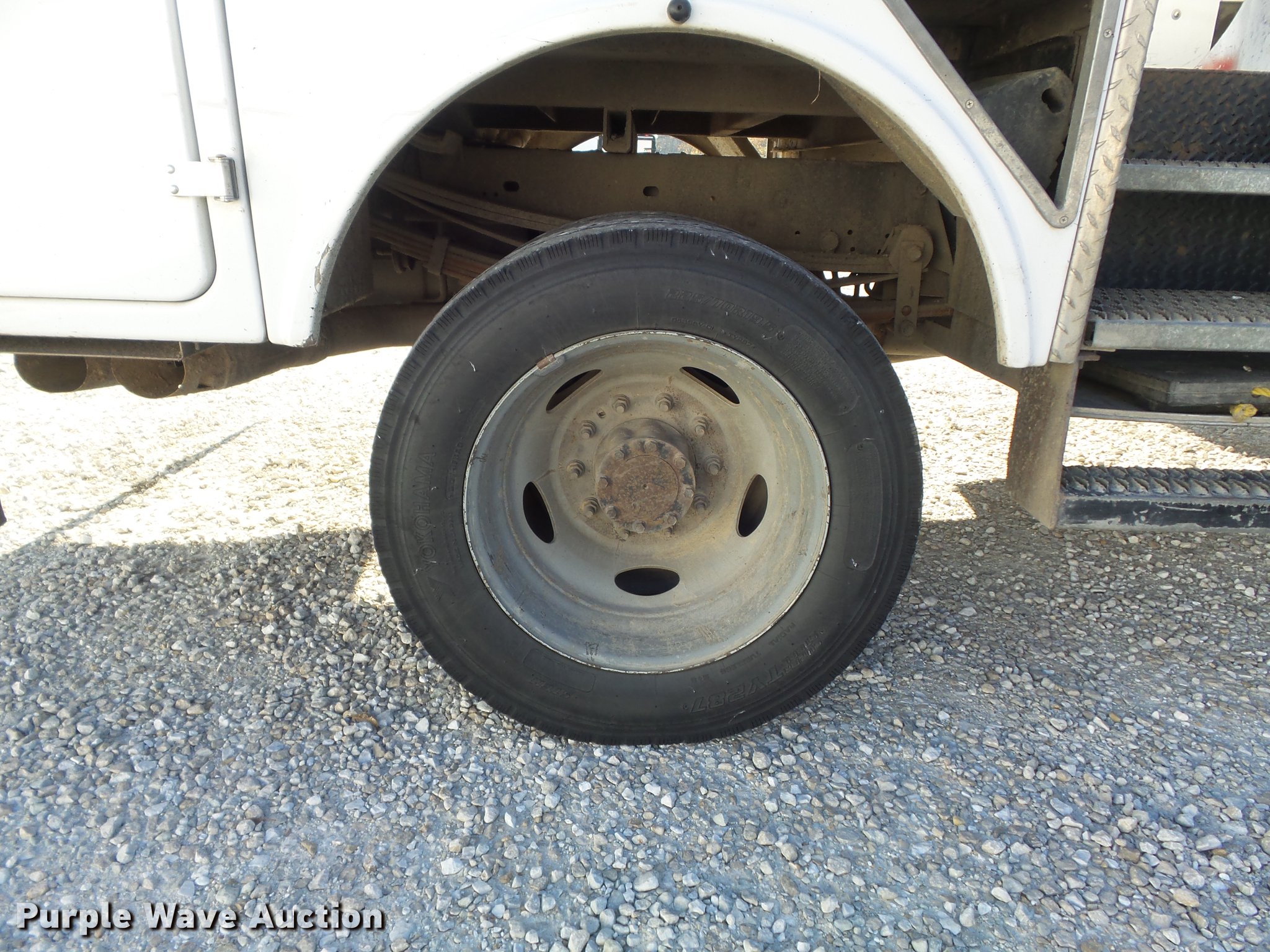 Purple Wave is selling a used Bucket Truck in Illinois. This item is a 2008 Ford F550 XL Super Duty bucket truck with the following: 192,155 miles on odometer, 6.4L V8 OHV 32V turbo diesel engine, Automatic transmission, Four wheel drive, Single axle, AC and heat, AM/FM, Trailer brake controller, Block heater, Backup alarm, Beacon light, PTO, Front tow hooks, Brand FX service bed, 11'L, Shelving, 1,200 watt power inverter, Serial 08-19014, 2008 Versalift VST-40I boom, 400 lbs maximum lift capacity, 40' maximum lift height, Man basket, Ground and platform controls, 100 degree bucket rotation, Boom rotation, Articulated, insulated, telescopic boom, Extendable jib crane, 1,000 lbs maximum lift capacity, Rope material handler, Serial KW080016, Single fuel tank, Spring suspension, Hydraulic brakes, 225/70R19.5 tires, GVWR 19,500 lbs