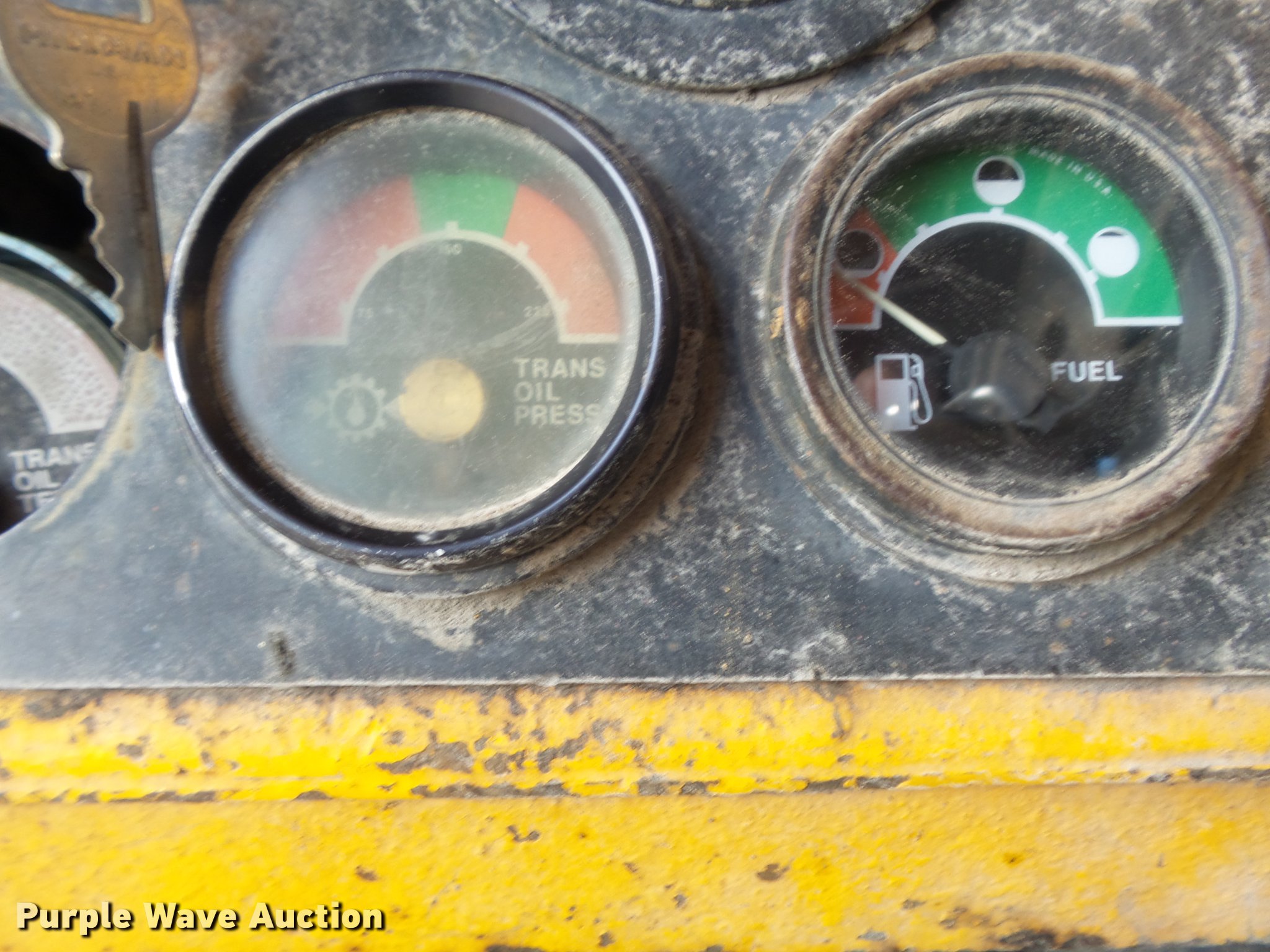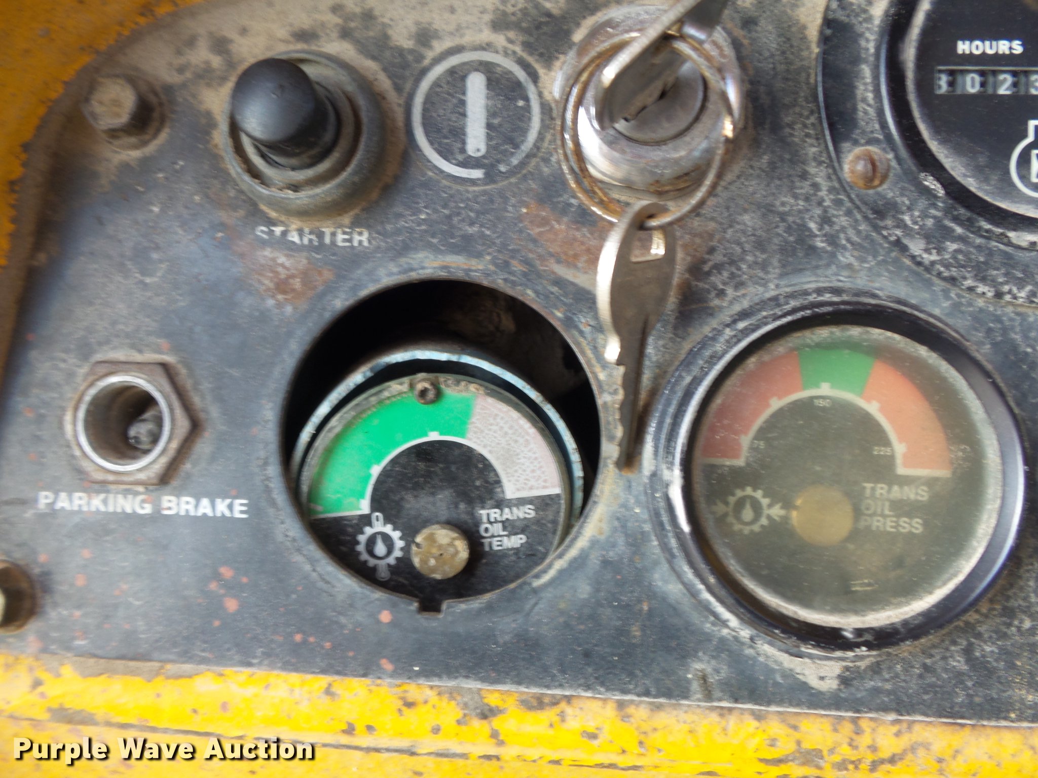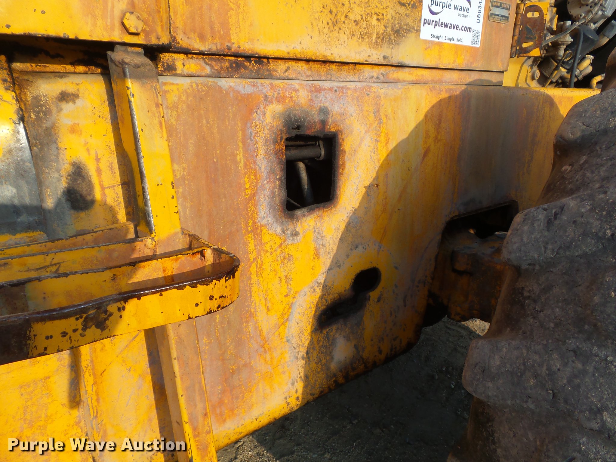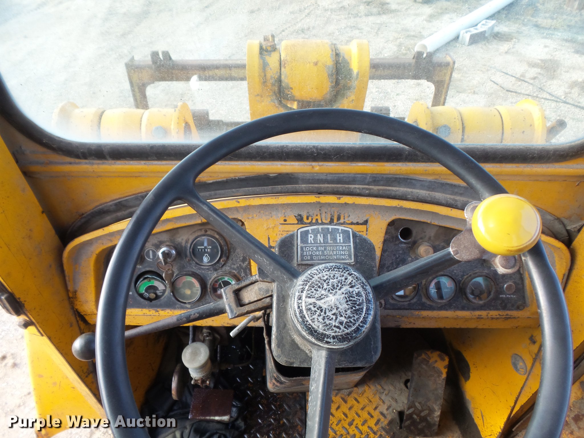 Purple Wave is selling a used Wheel Loader in Missouri. This item is a 1980 John Deere 444 wheel loader with the following: 3,023 hours on meter, John Deere six cylinder diesel engine, 85 HP, Serial T06359DF224230, Powershift transmission, 2F-1R gears, Joystick bucket controls, Front and rear work lights, Block heater, Ether start, 93"W general purpose bucket, Weld-on cutting edge, Uni Tool pallet forks, 48"L, 15.5-25 tires, Hydraulic oil leak, Remanufactured engine 10/2010, Serial 350869T