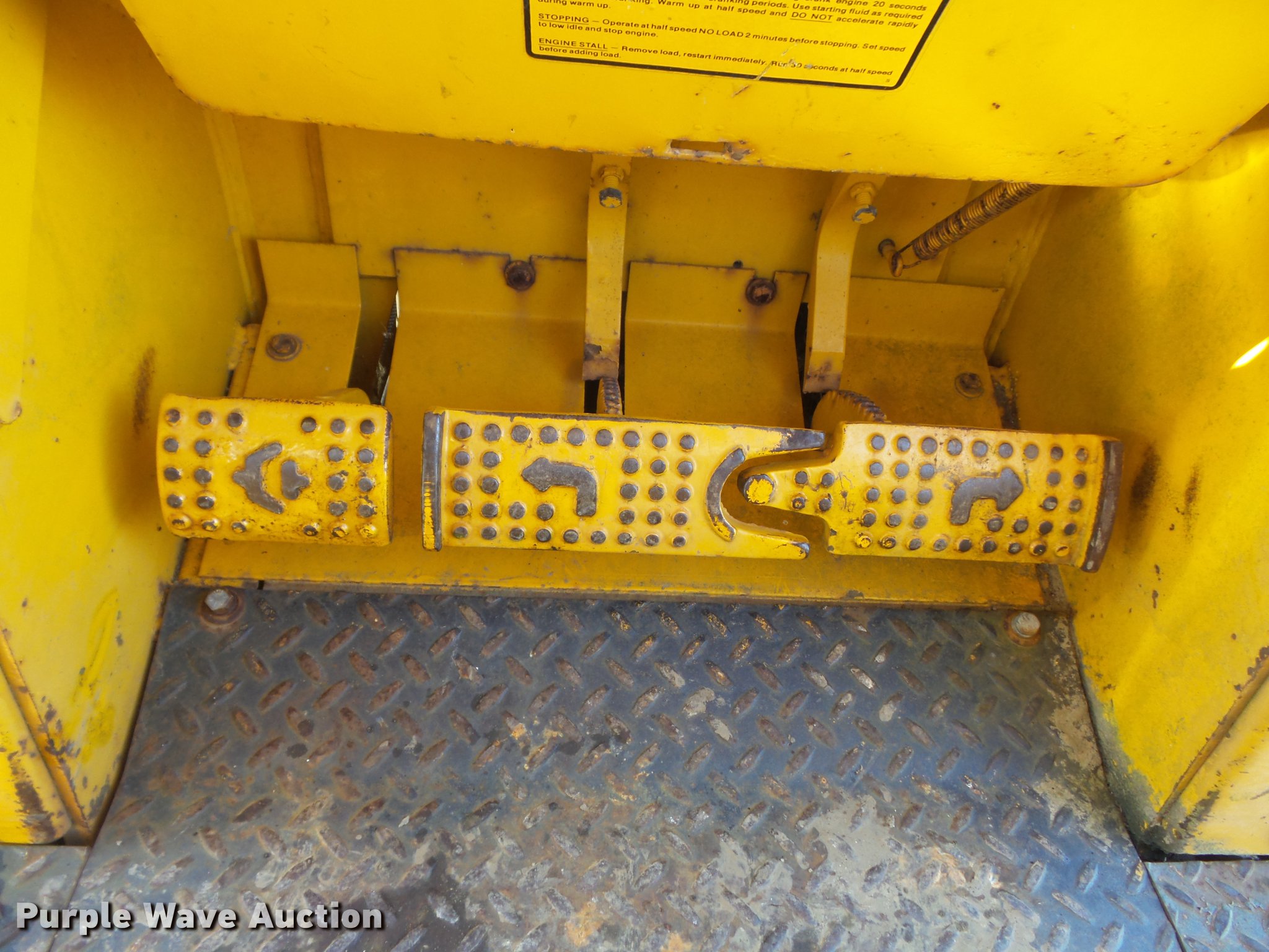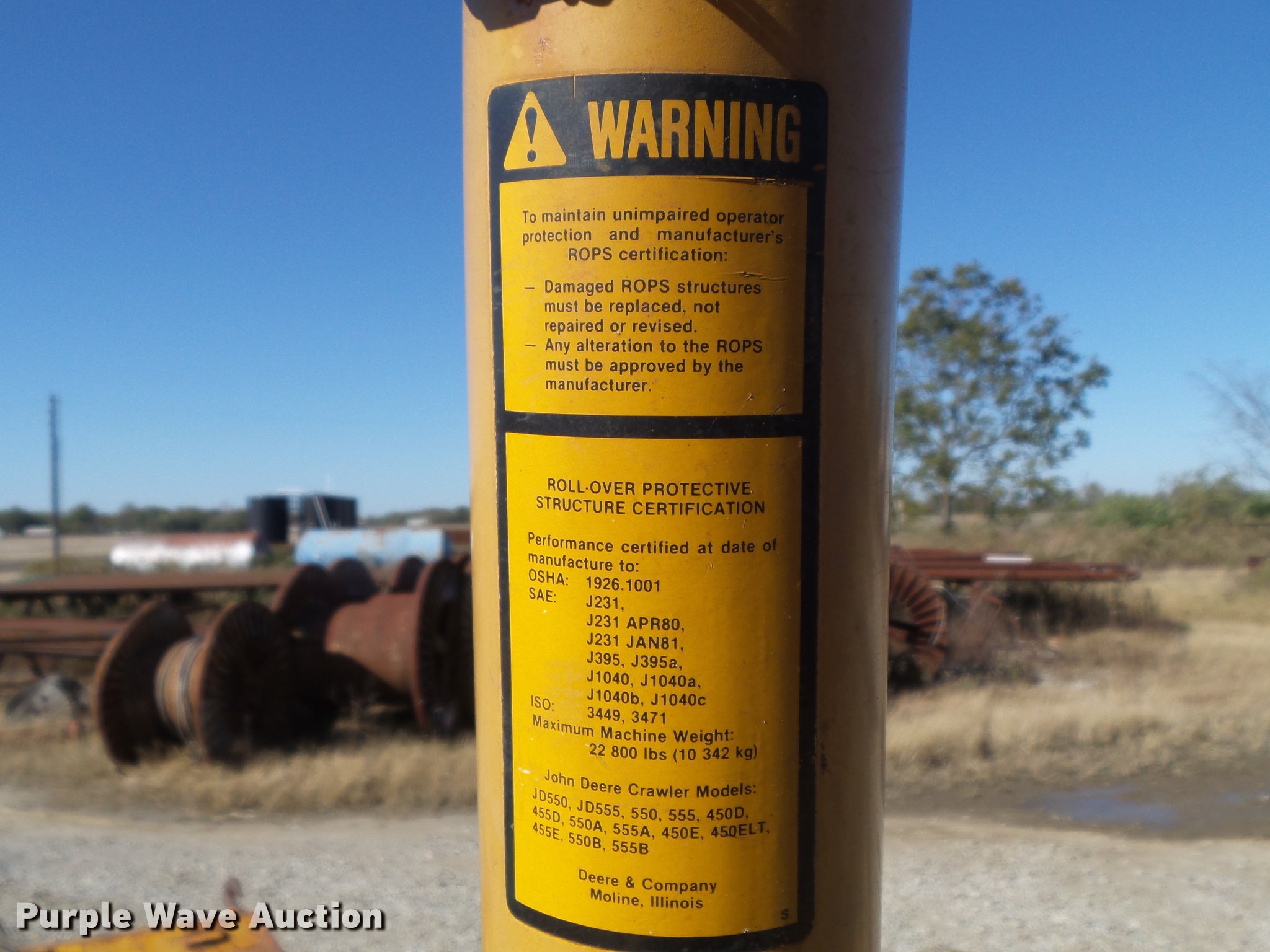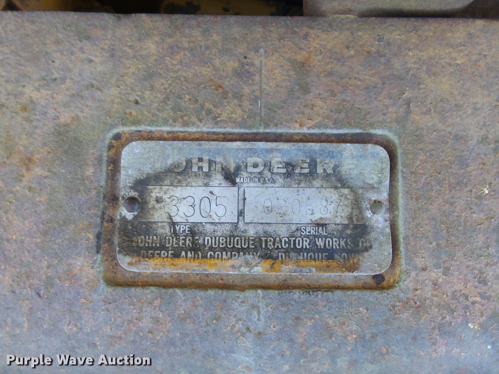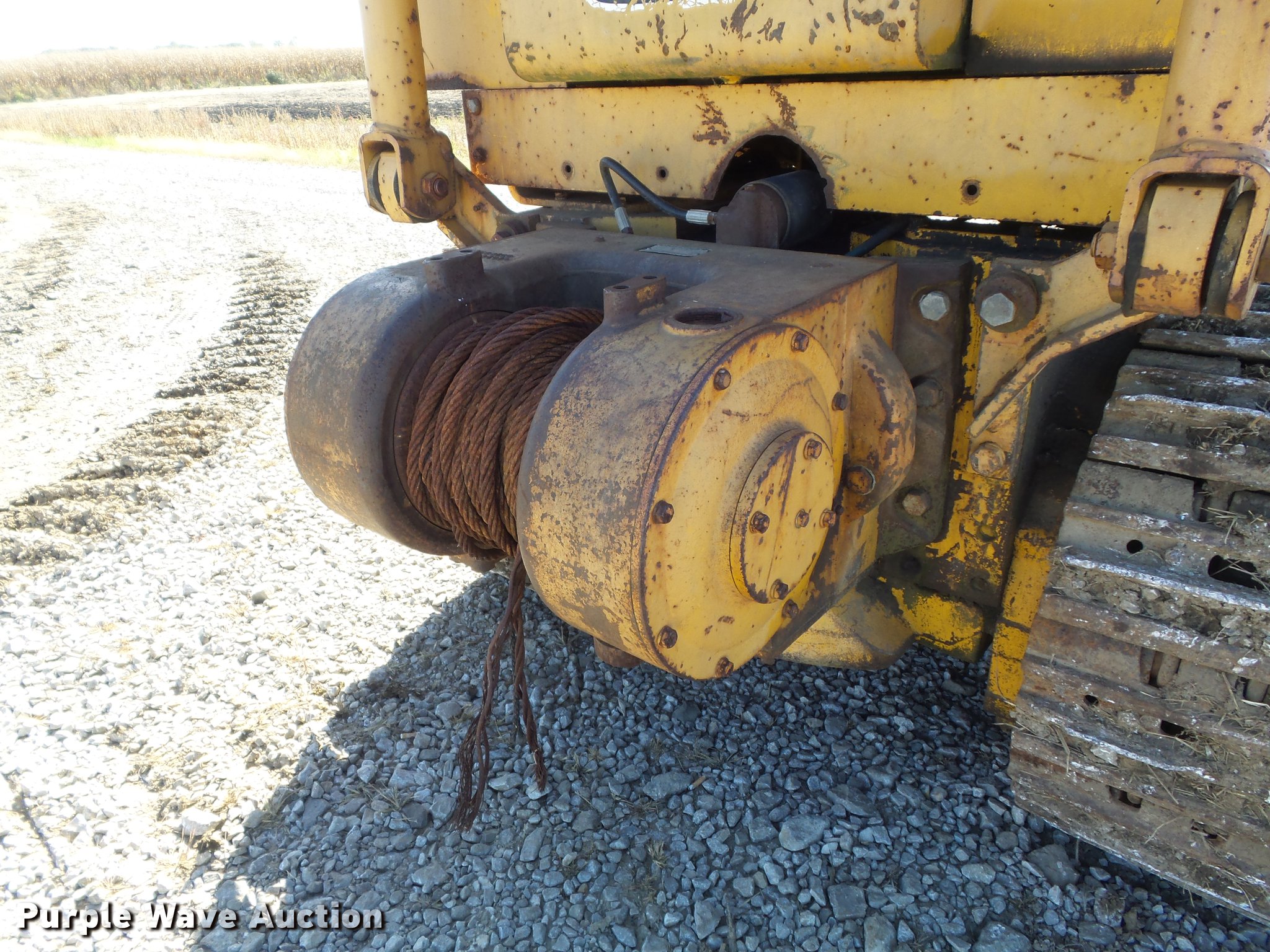 Purple Wave is selling a used Crawler Loader in Illinois. This item is a 1987 John Deere 455E track loader with the following: John Deere four cylinder diesel engine, 70 HP, 8F-4R gears, OROPS, Joystick bucket controls, John Deere AT34579 bucket, 88"W, Weld-on cutting edge, 1.5 cu. yd. capacity, Front auxiliary hydraulics, Winch, Model 3305, Serial 020587, 14"W triple grouser track pads, Serial T0455EX733972