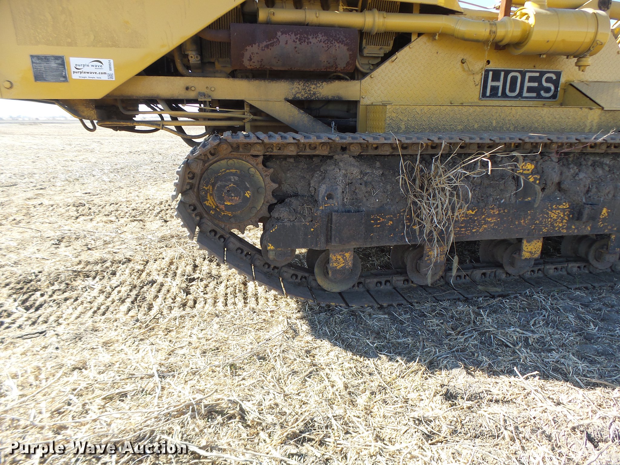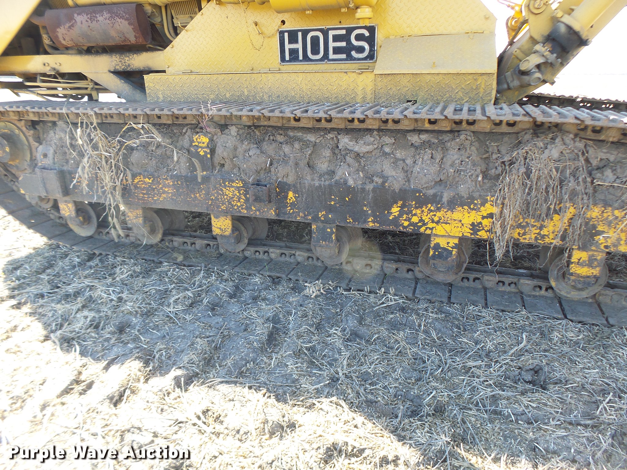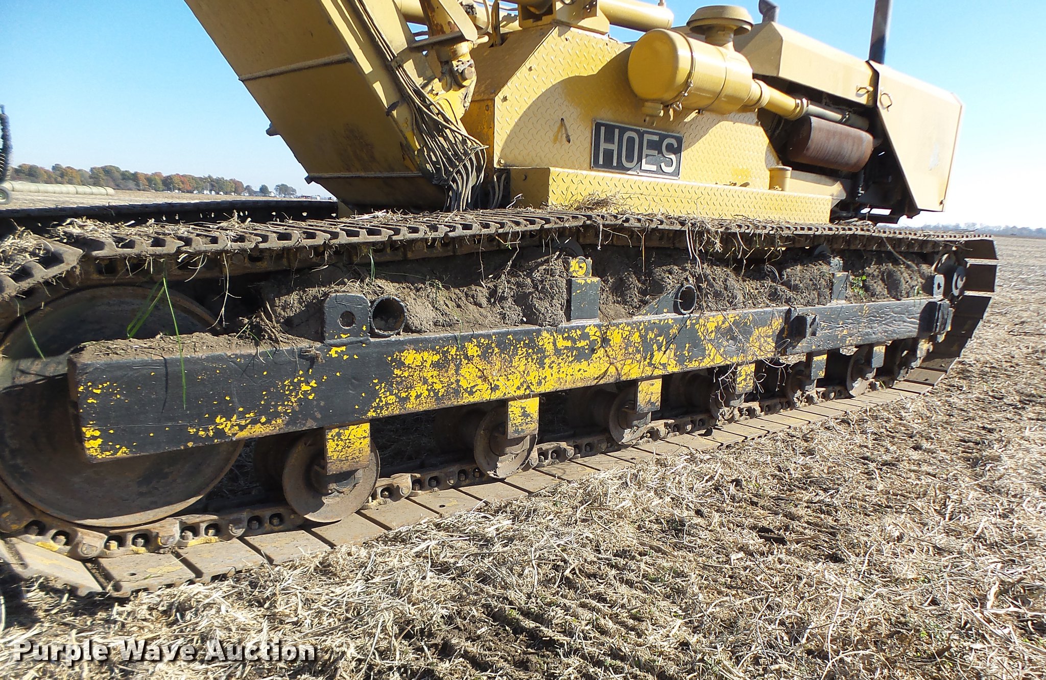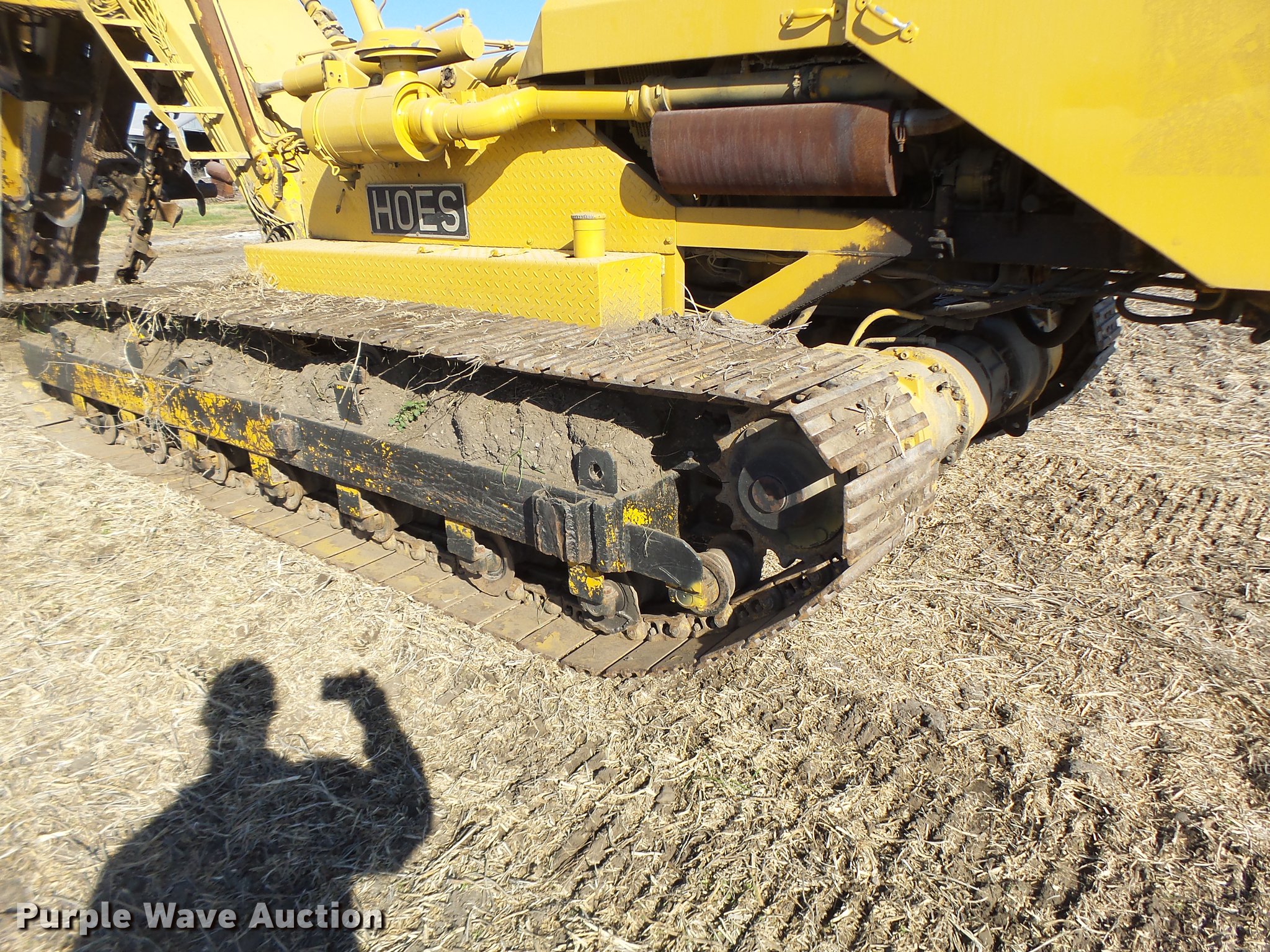 Hoes 684 trencher. 10,139 hours on meter, Deutz eight cylinder diesel engine, Hydrostatic transmission, Suspension seat, 12'L trencher boom 7.5' maximum digging depth, 16" cutting width, Dirt teeth, 12" crumber shoe width, 8" tile boot, 17"W steel tracks. C&N Heil Farms Inc.. 31990 CR 137. Norborne, MO 64668