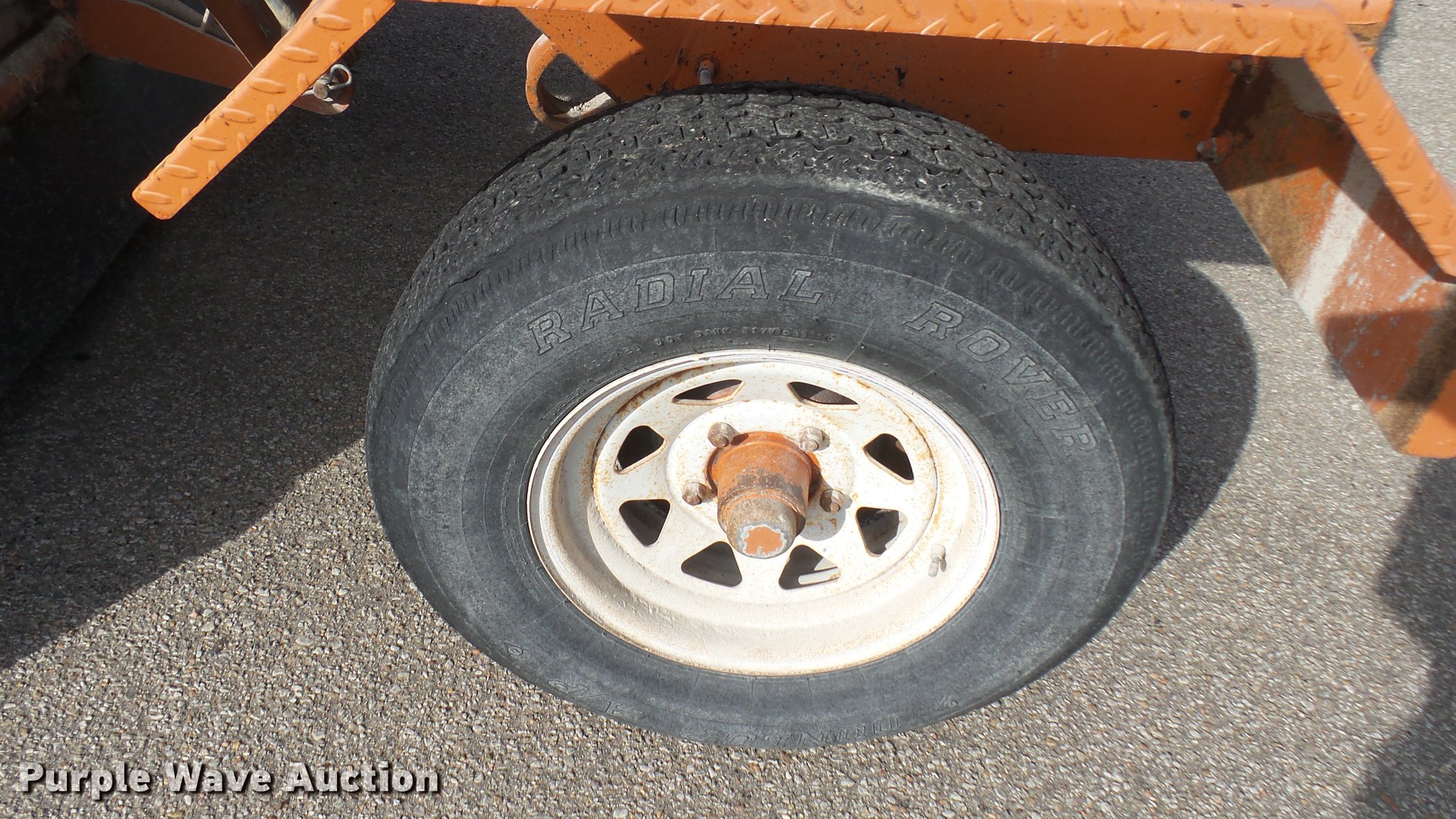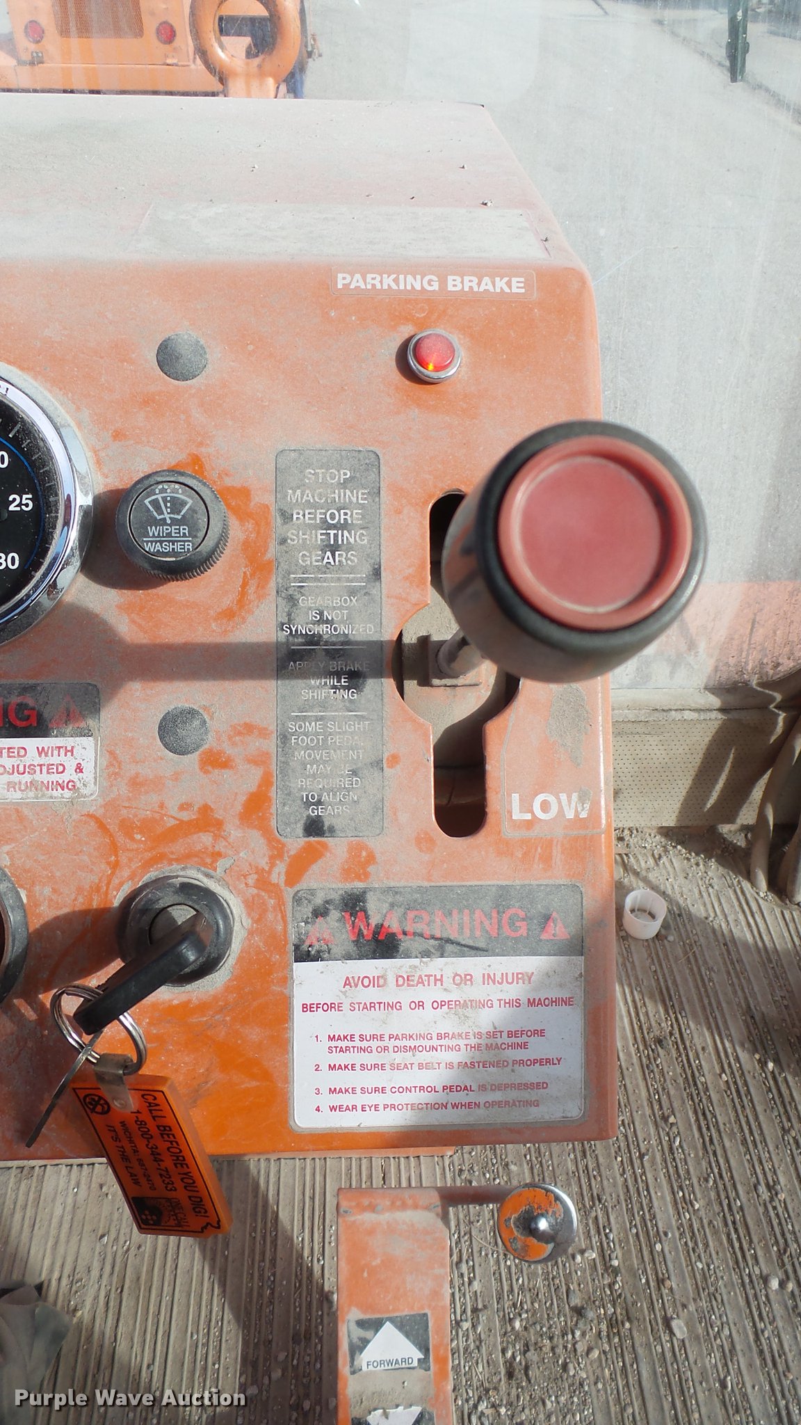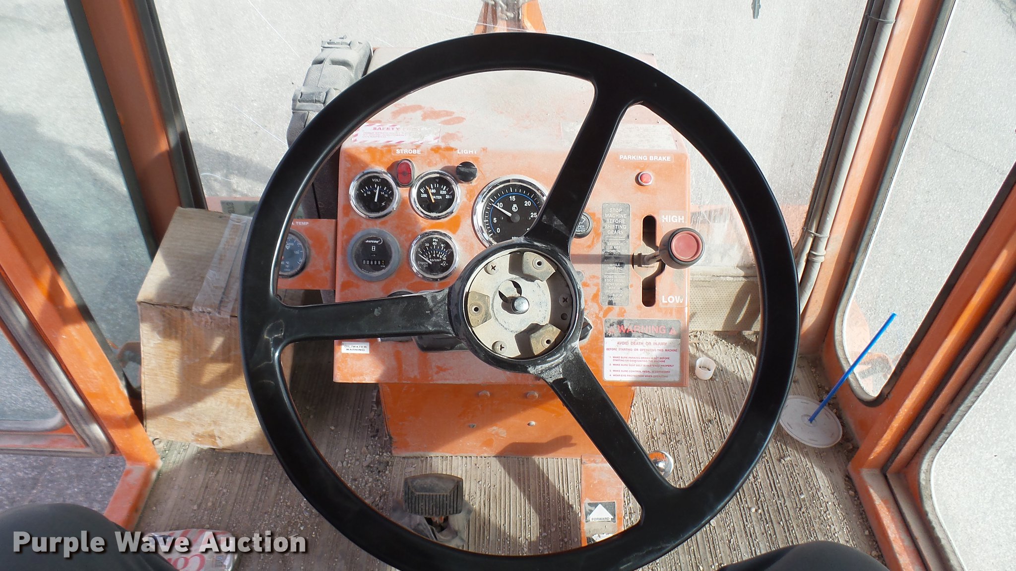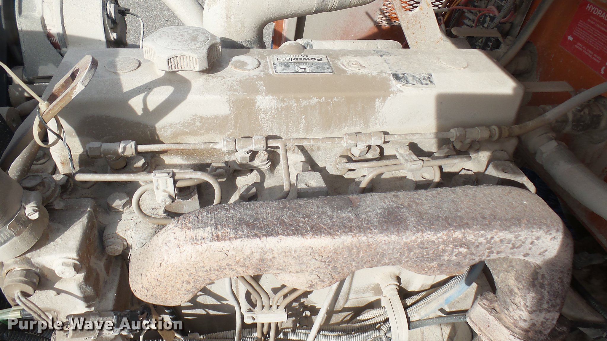 Purple Wave is selling a used Broom in Kansas. This item is a 2003 Broce RJ350 broom with the following: 899 hours on meter, John Deere four cylinder diesel engine, Two speed hydrostatic transmission, EROPS, AC and heat, Joystick broom controls, 8'W mid-mount wafer broom, Hydraulic lift, Hydraulic angle adjustment, Work lights, Pintle hitch, Hydraulic brakes, 235/75R15 tires, Windshield cracked, Serial 404133