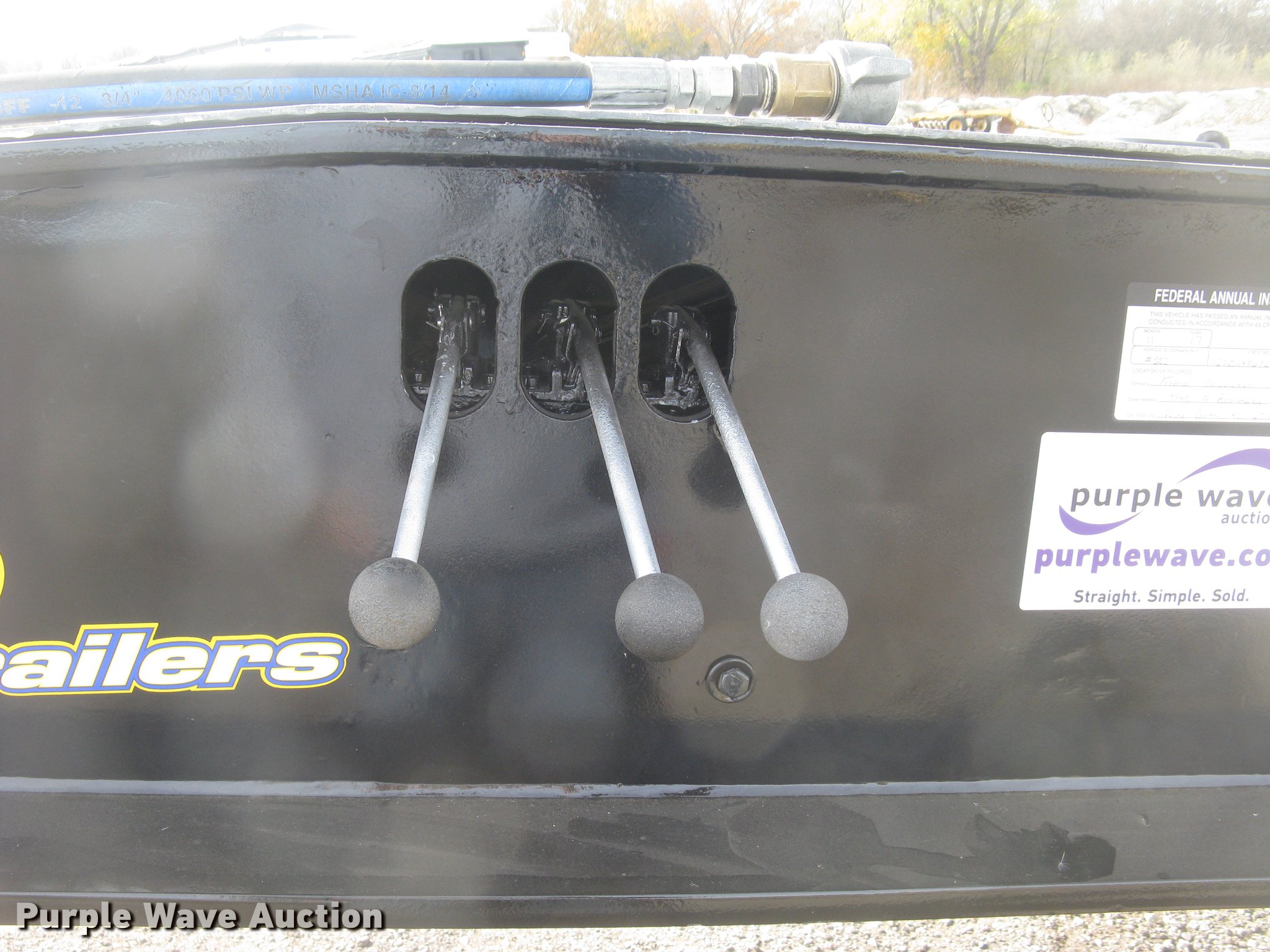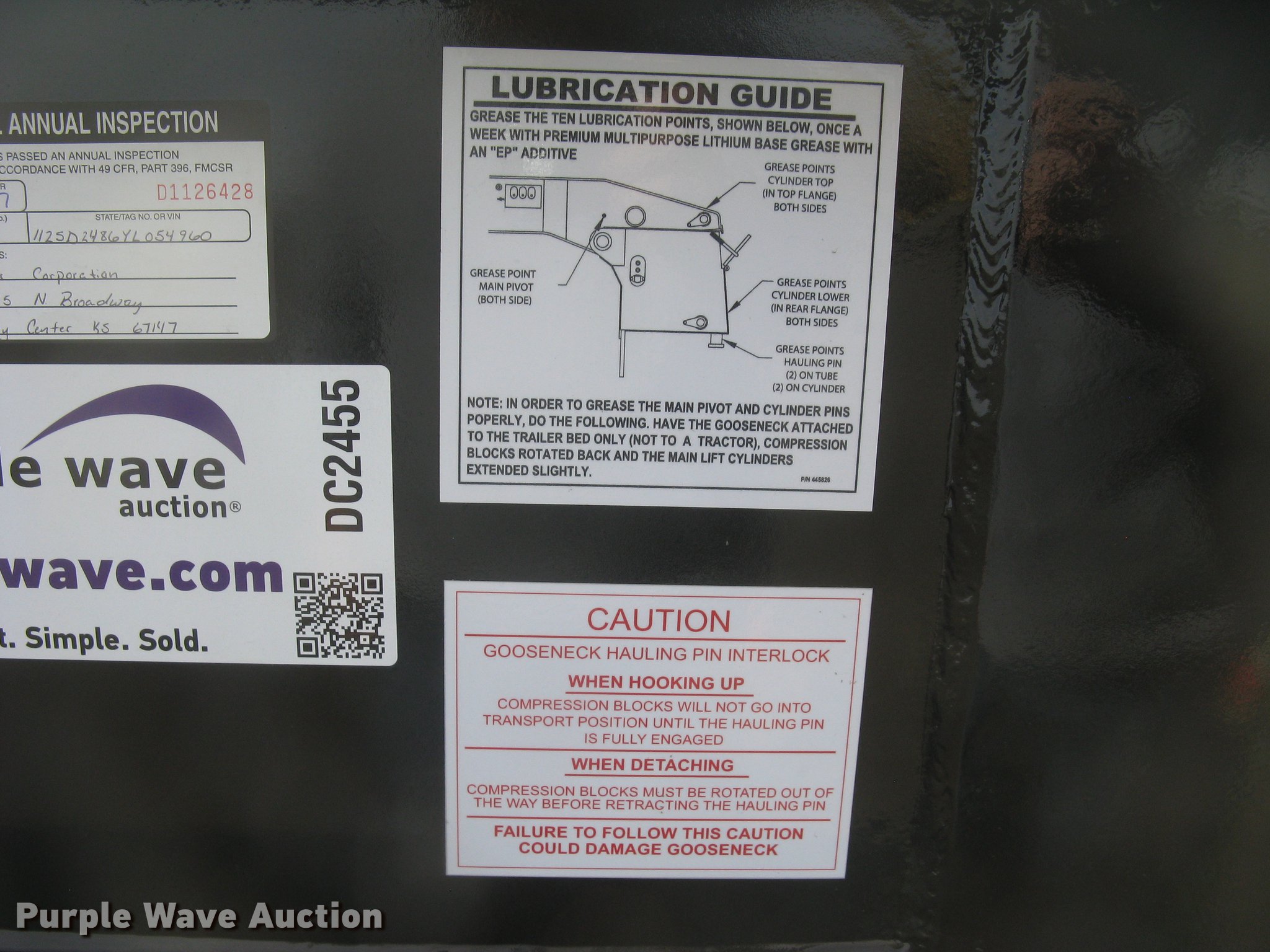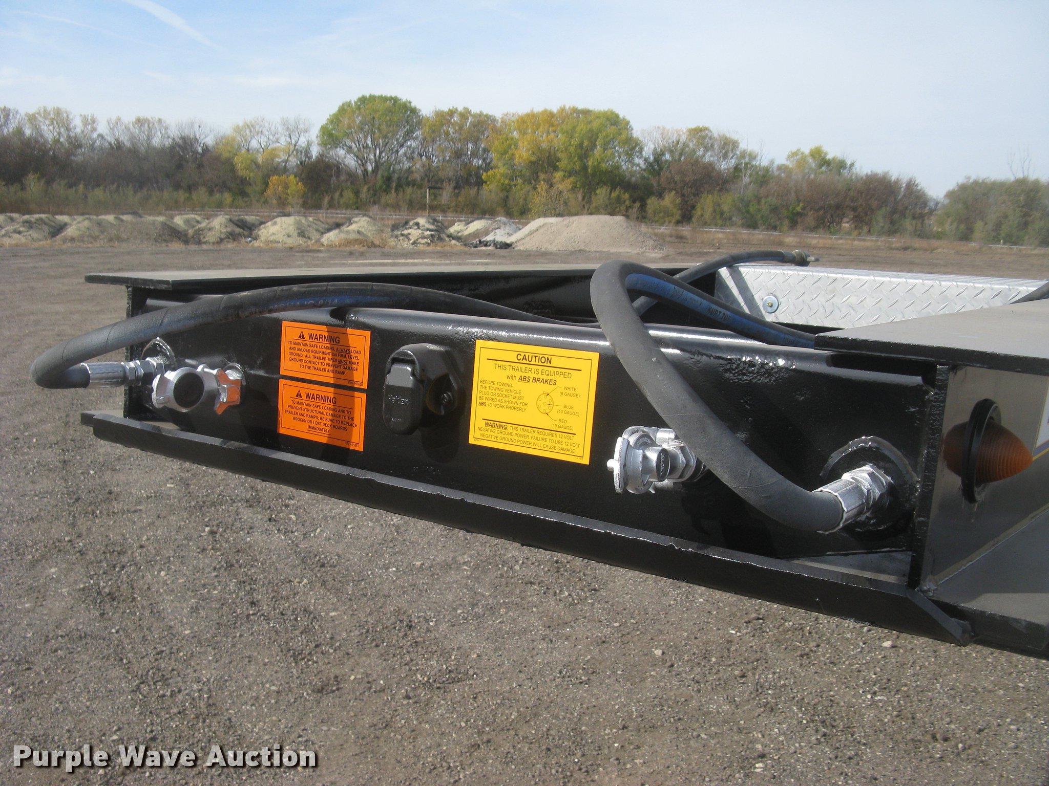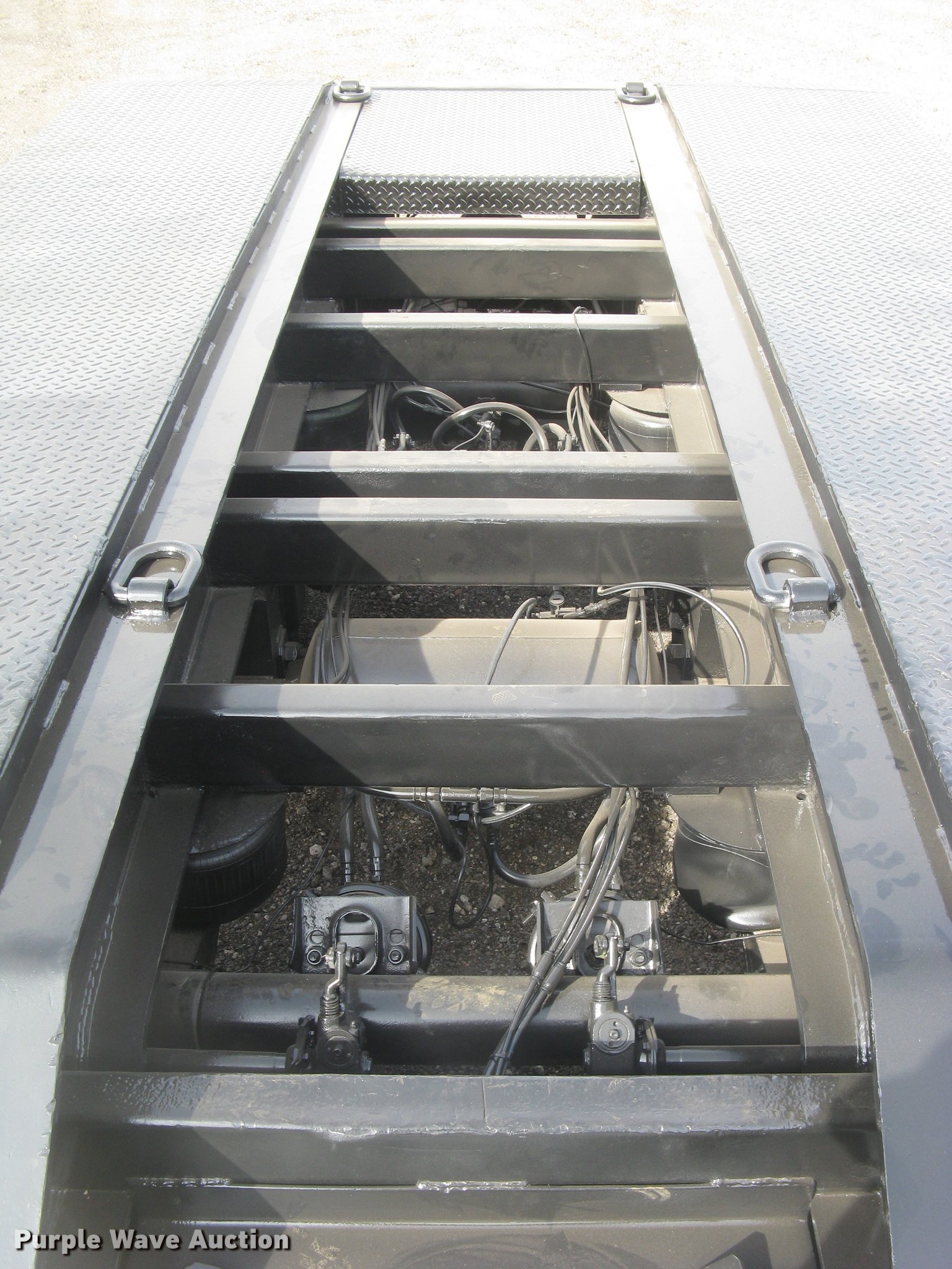 Purple Wave is selling a used Equip. Trailer in Kansas. This item is a 2000 Eager Beaver 50GSL RGN lowboy equipment trailer with the following: 53'L x 102"W overall, 12'L RGN neck, 24'L well, 12'L rear deck, (2) approx. 36"L x 19"W fold up wedge ramps, Wood deck, Fold-out deck extensions, Chain/binder box in floor, Supply or excavator stick trough in floor, D-ring tie downs, Hydraulic detach neck, Fifth wheel plate, Air suspension, Air brakes, Triple axle, 255/70R22.5 tires, Annual inspection completed 11/2017, Unit# 352