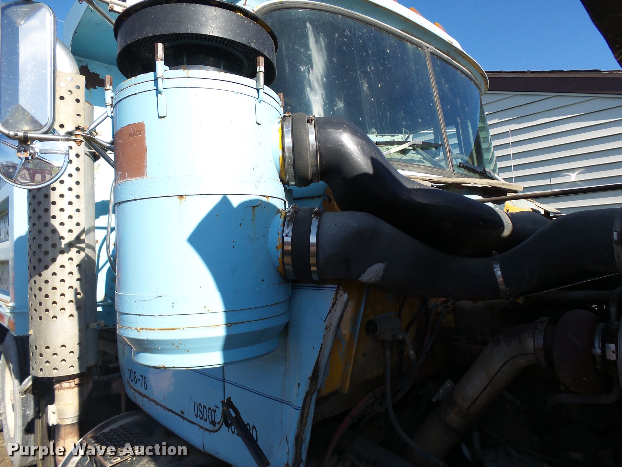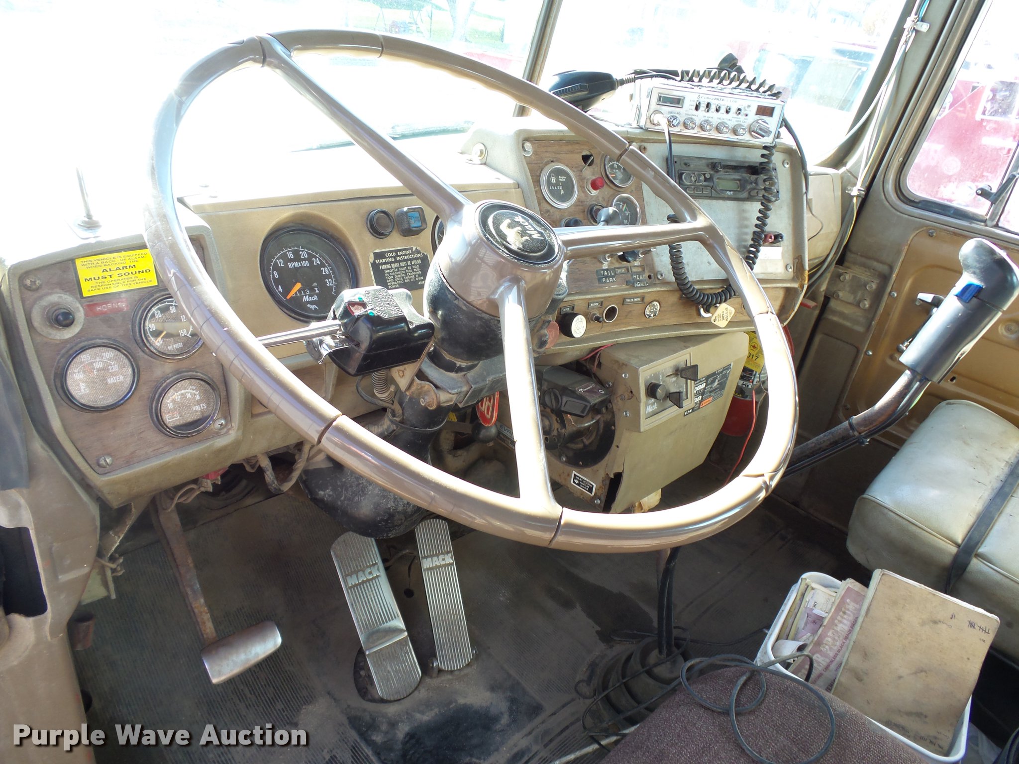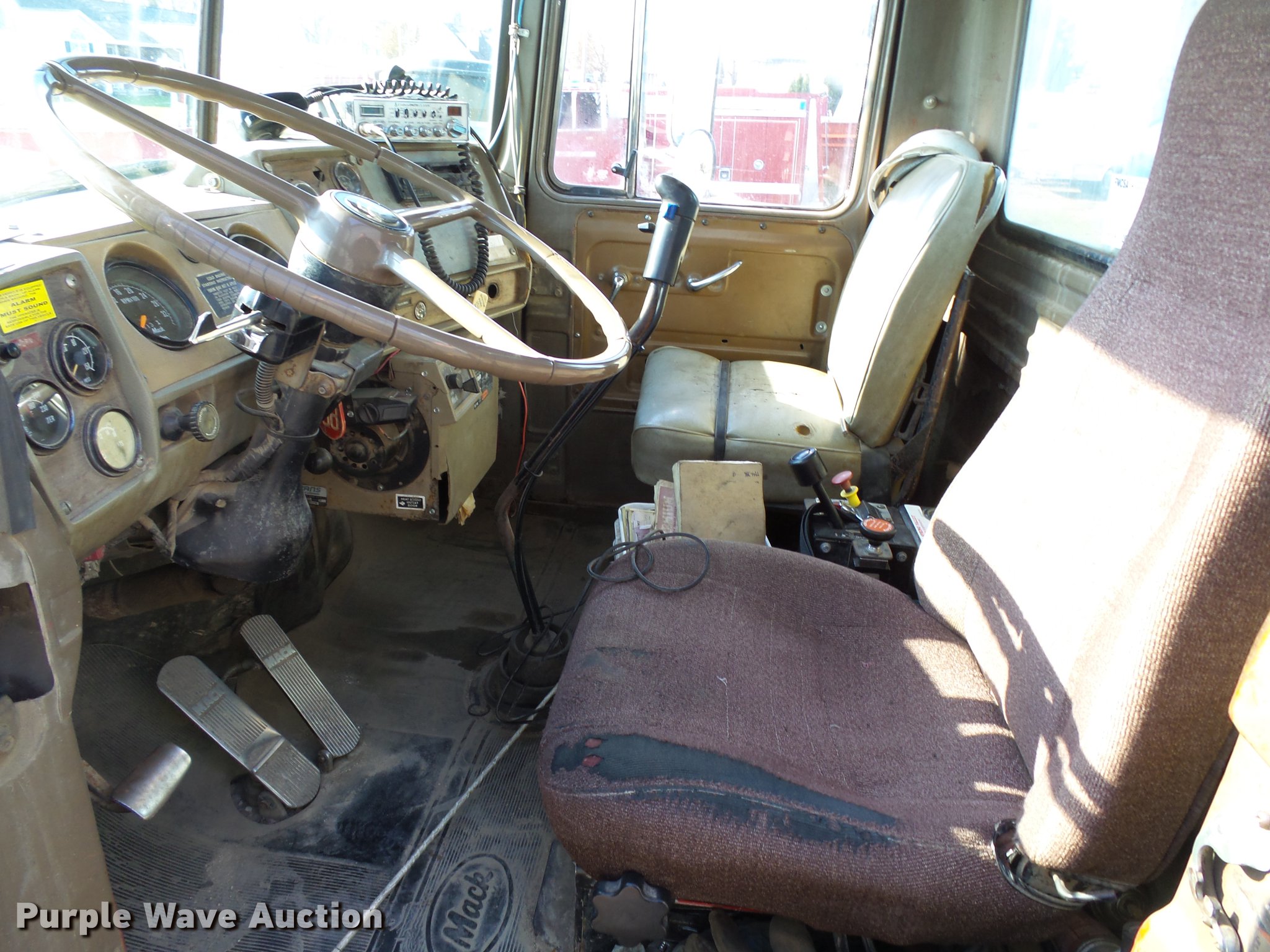 Purple Wave is selling a used Construction Dump Truck in Iowa. This item is a 1978 Mack RD686S dump truck with the following: 70,236 miles on odometer, 5,640 hours on meter, Mack ENDT676 six cylinder turbo diesel engine, 283 HP at 2,100 RPM, Eaton Fuller RTO14708LL eight speed manual transmission, Triple axle, Heat, AM/FM/CD, Air suspensions seat, Steel dump bed, Model MK116X36, 16'L x 7'W, 44" side height, Single ram hoist, Air operated end gate, Pintle hitch, Trailer wiring, 228" wheelbase, Page LM3000 pusher axle, Spring over walking beam suspension, Air brakes, 315/80R22.5 front tires, 11R22.5 rear tires, DOT inspection completed April 2017, Service records available upon request