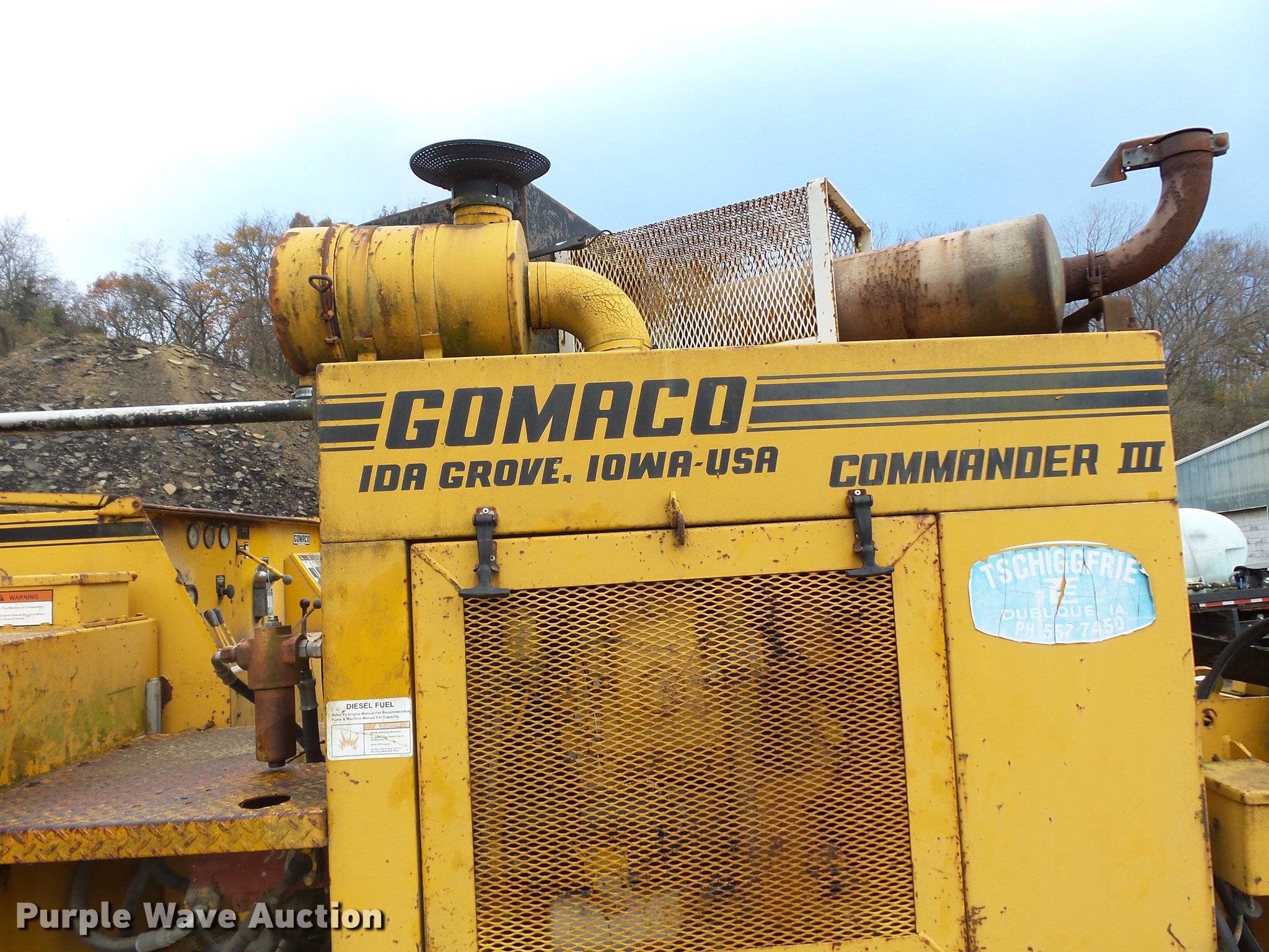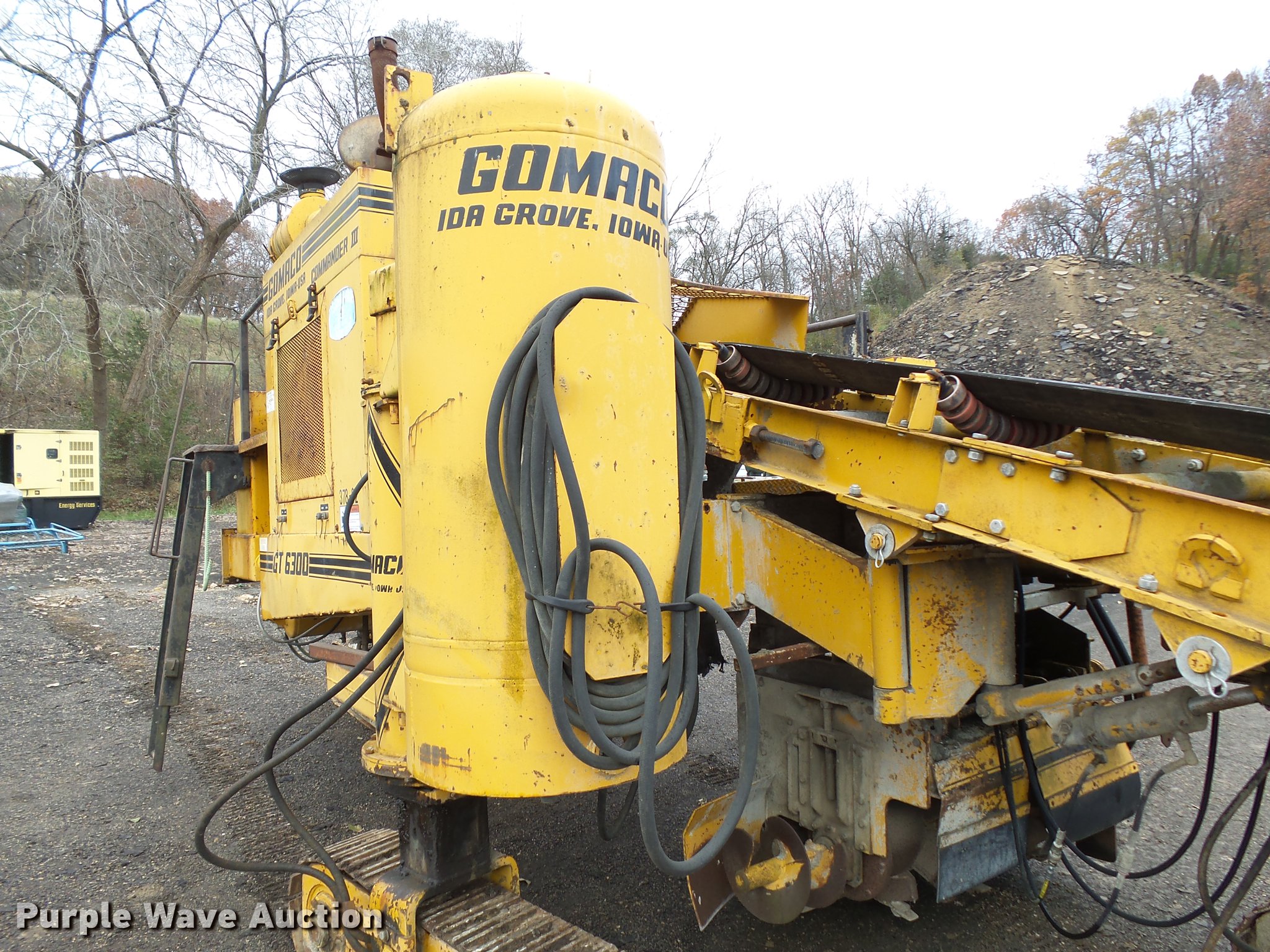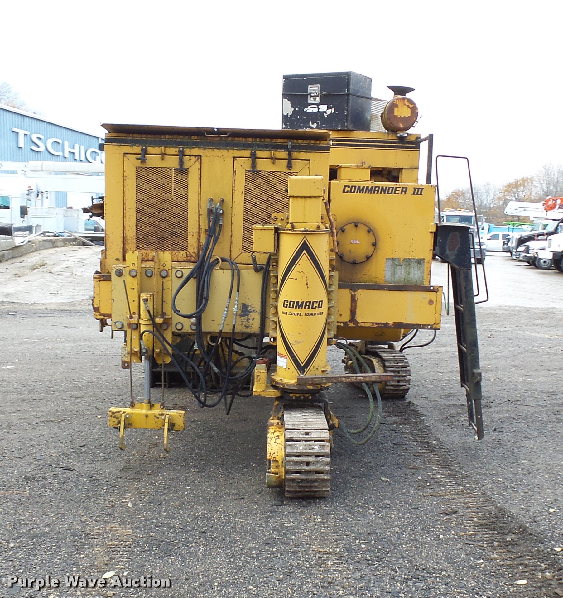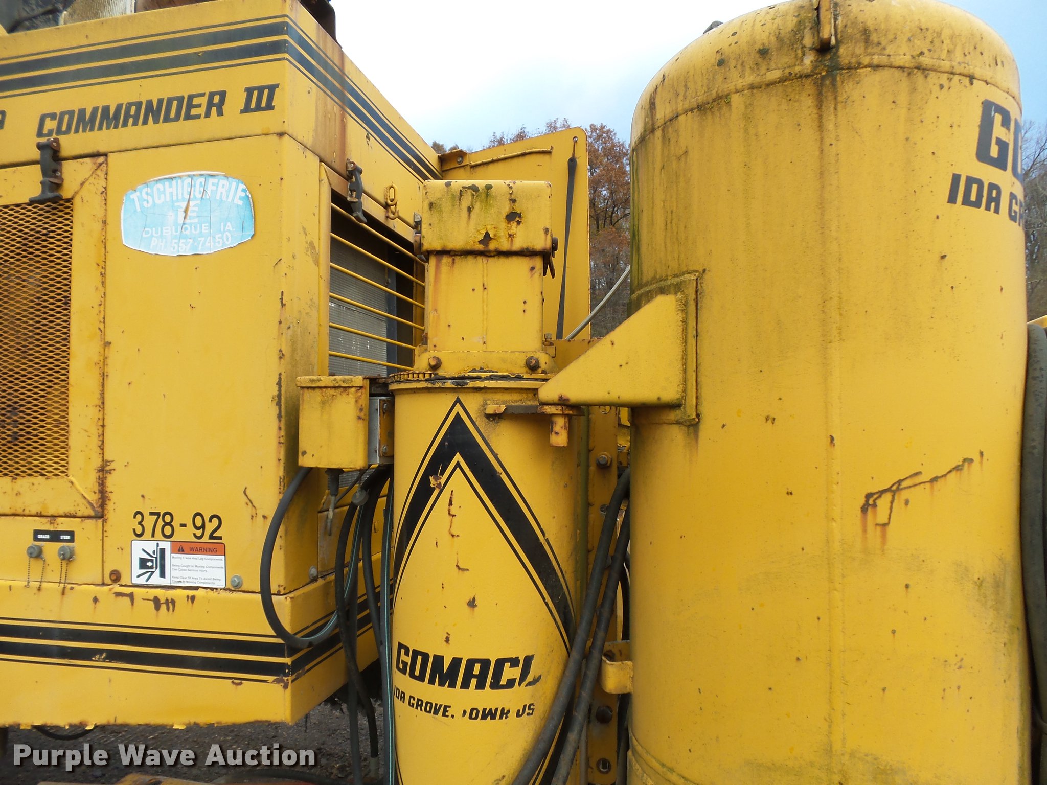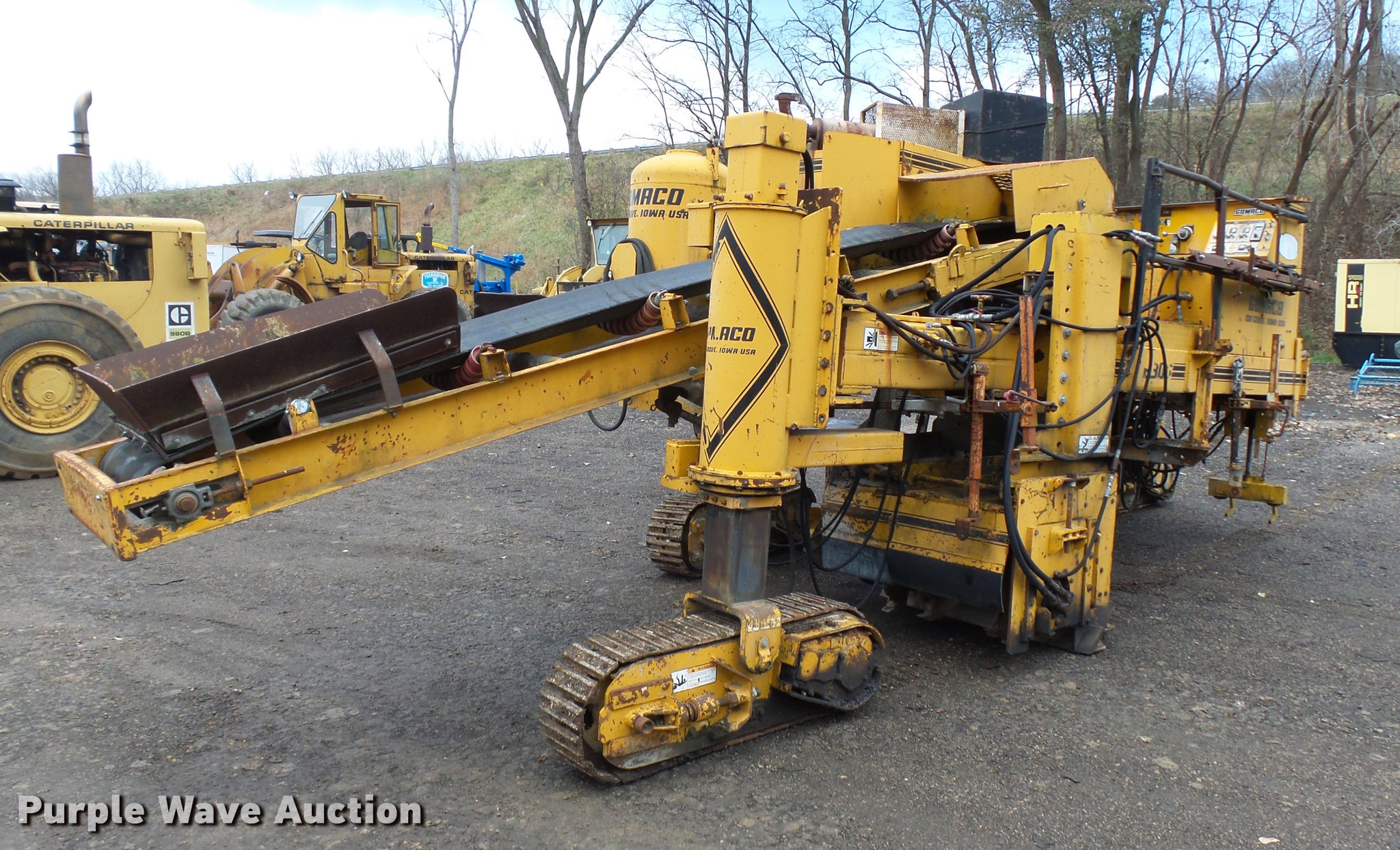 1982 Gomaco GT6300 paver. 3,187 hours on meter, Detroit Diesel 371 diesel engine, Hydrostatic transmission, 14' chute, 42" paver head, 10"W single grouser track pads, Serial MC11651-01. Tschiggfrie Excavating. 425 Julien Dubuque Dr. Dubuque, IA 52003