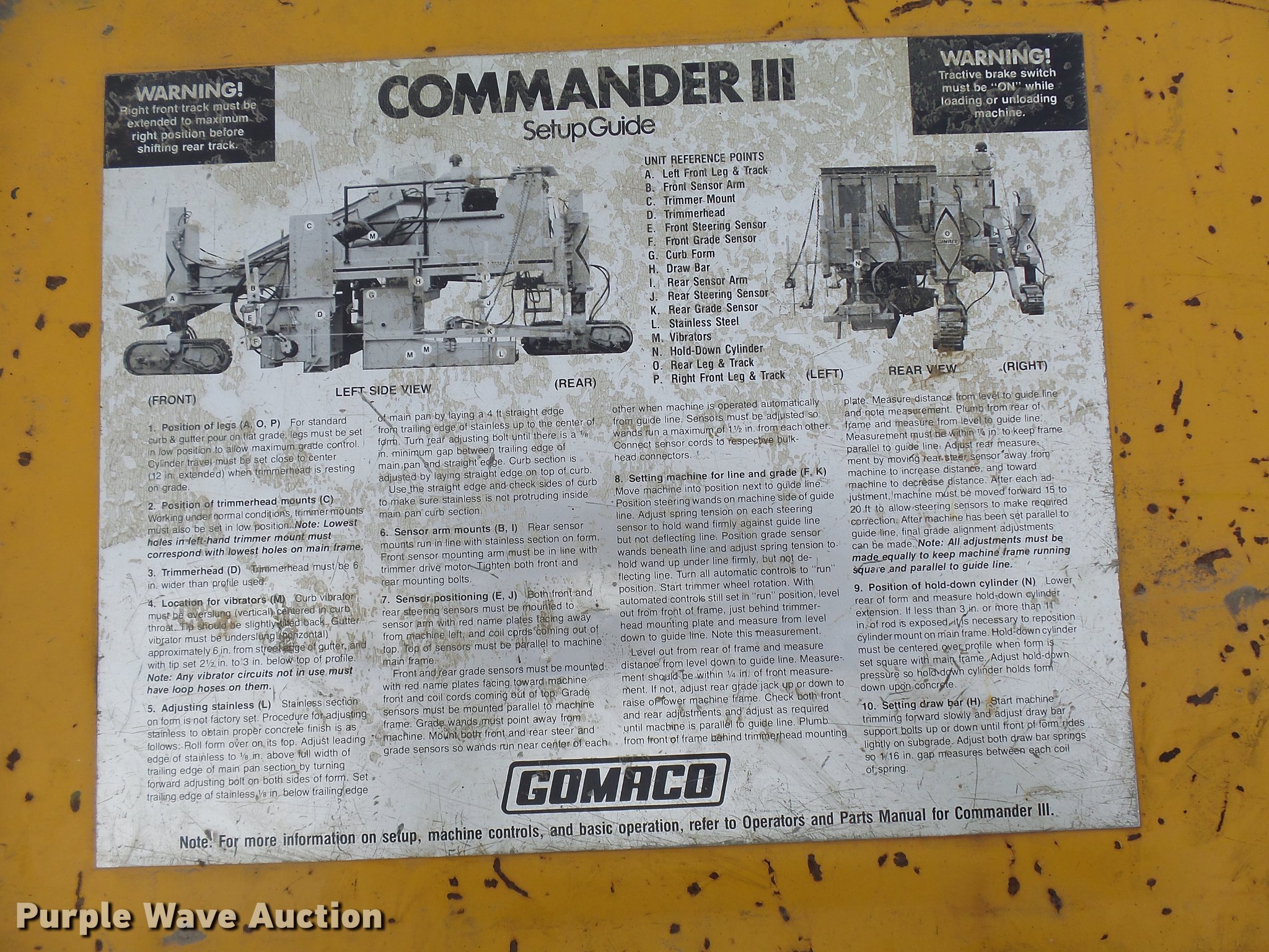 Purple Wave is selling a used Concrete Paver or Curb Machine in Iowa. This item is a 1982 Gomaco GT6300 paver with the following: 3,187 hours on meter, Detroit Diesel 371 diesel engine, Hydrostatic transmission, 14' chute, 42" paver head, 10"W single grouser track pads, Serial MC11651-01