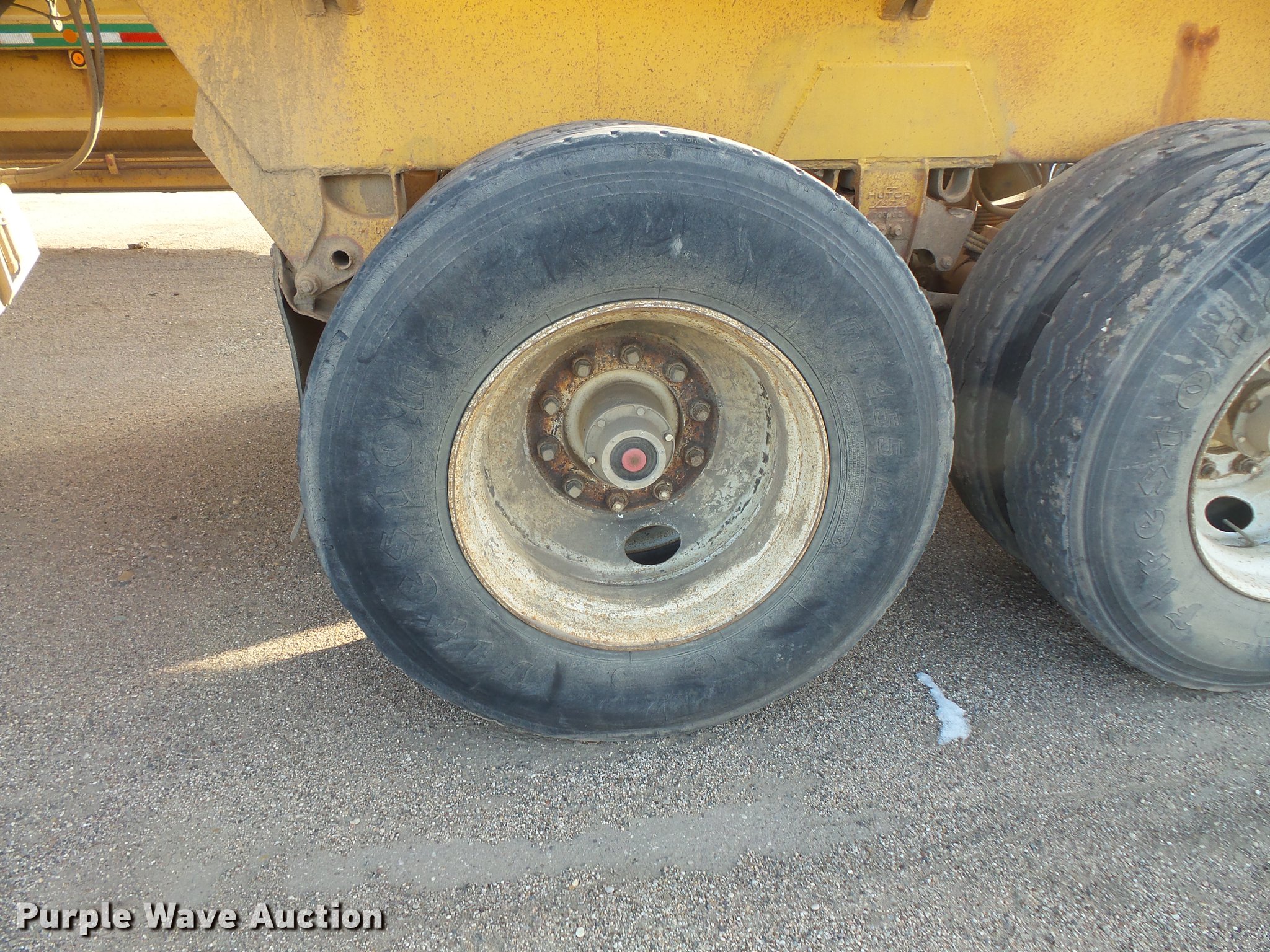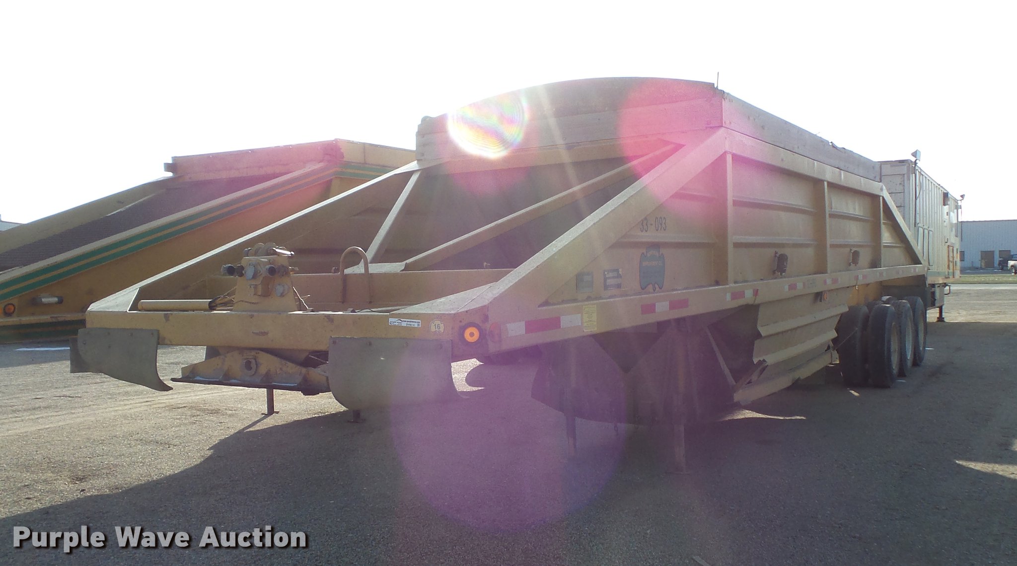 Purple Wave is selling a used Bottom Dump Trailer in North Dakota. This item is a 1984 Lode-Master CS bottom dump trailer with the following: 46'L x 96"W overall, 9" side board height, Steel construction, Air operated gate, Manual tarp, Rear push block, Dual leg landing gear, Fifth wheel plate, Triple axle, Spring suspension, Air brakes, Steel wheels, 11R22.5 tires, GVWR 60,000 lbs, Unit# 33-093
