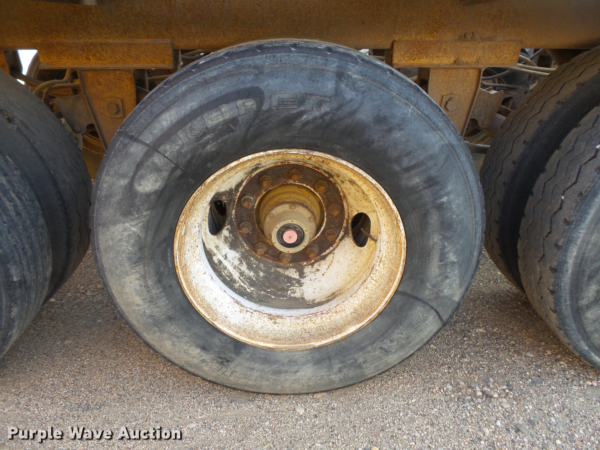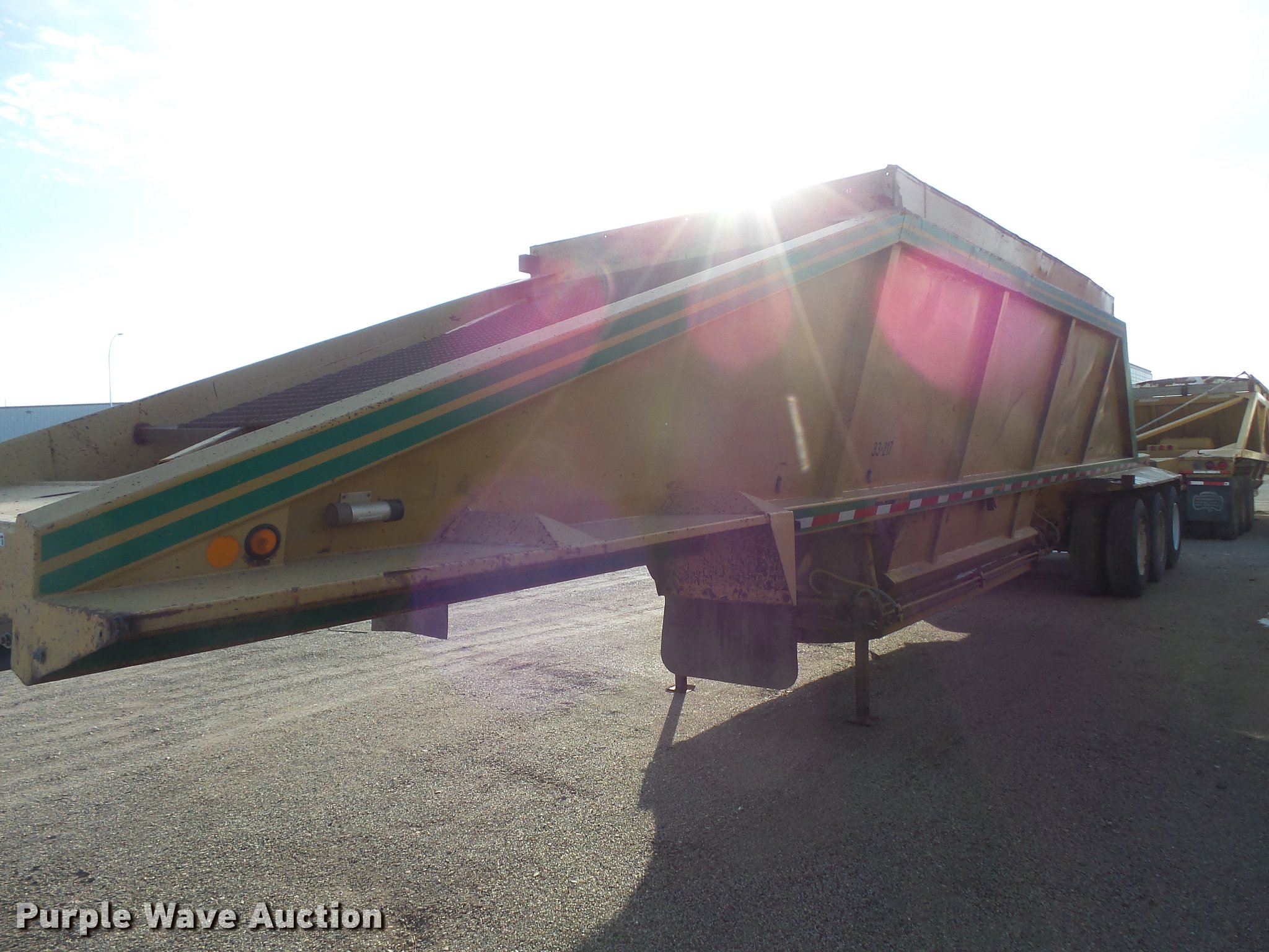 Purple Wave is selling a used Bottom Dump Trailer in North Dakota. This item is a 1991 Red River bottom dump trailer with the following: 42'L x 102"W overall, Air operated clamshell gate, Flip-up rear push block, Dual leg landing gear, Fifth wheel plate, Rear air connections, Rear trailer wiring, Triple axle, Spring suspension, Air brakes, 11R22.5 tires, Steel wheels, GVWR 73,000 lbs, Unit# 33-217