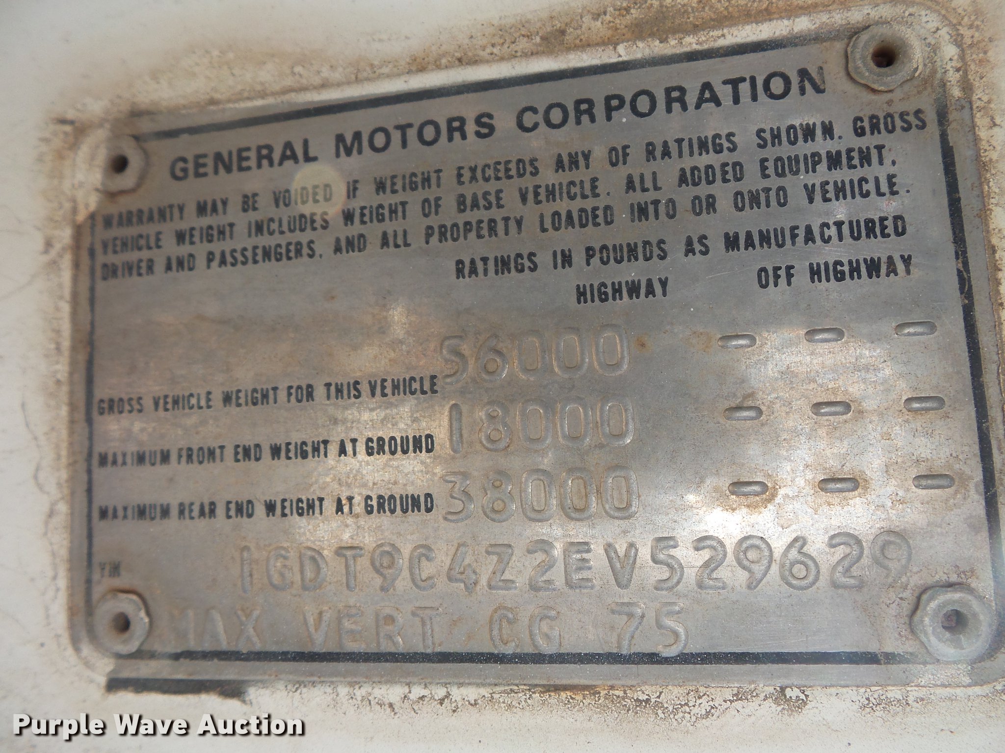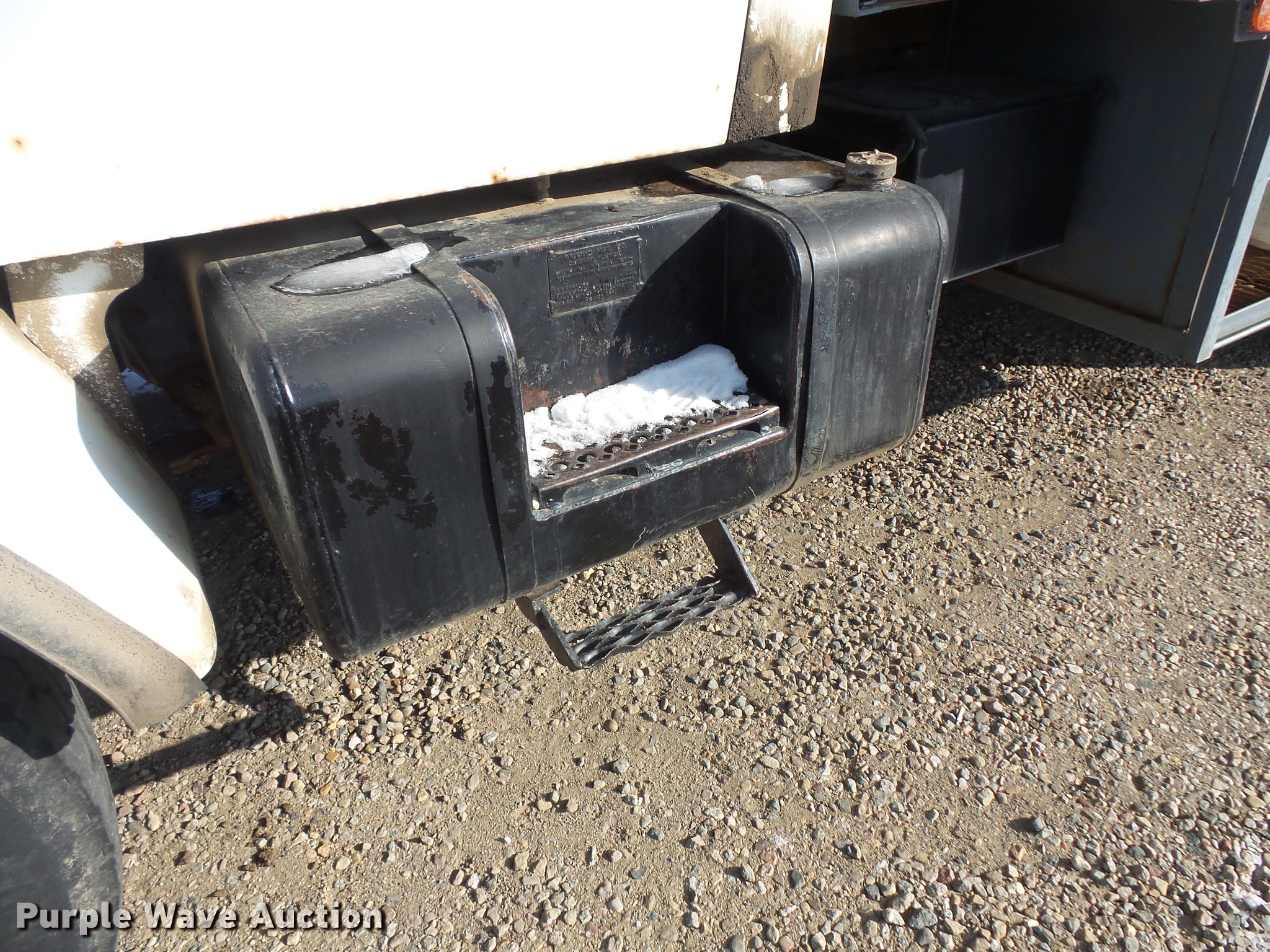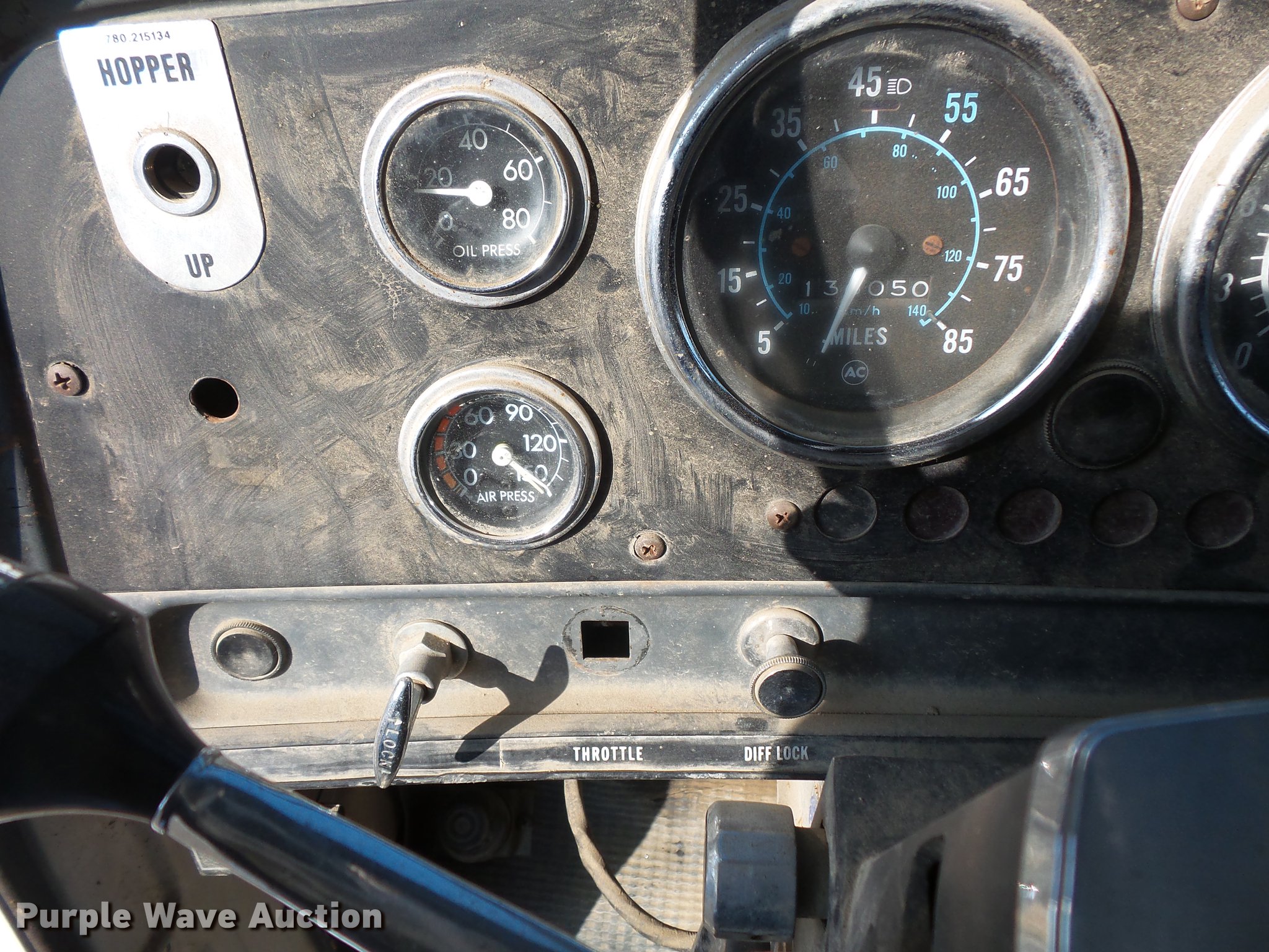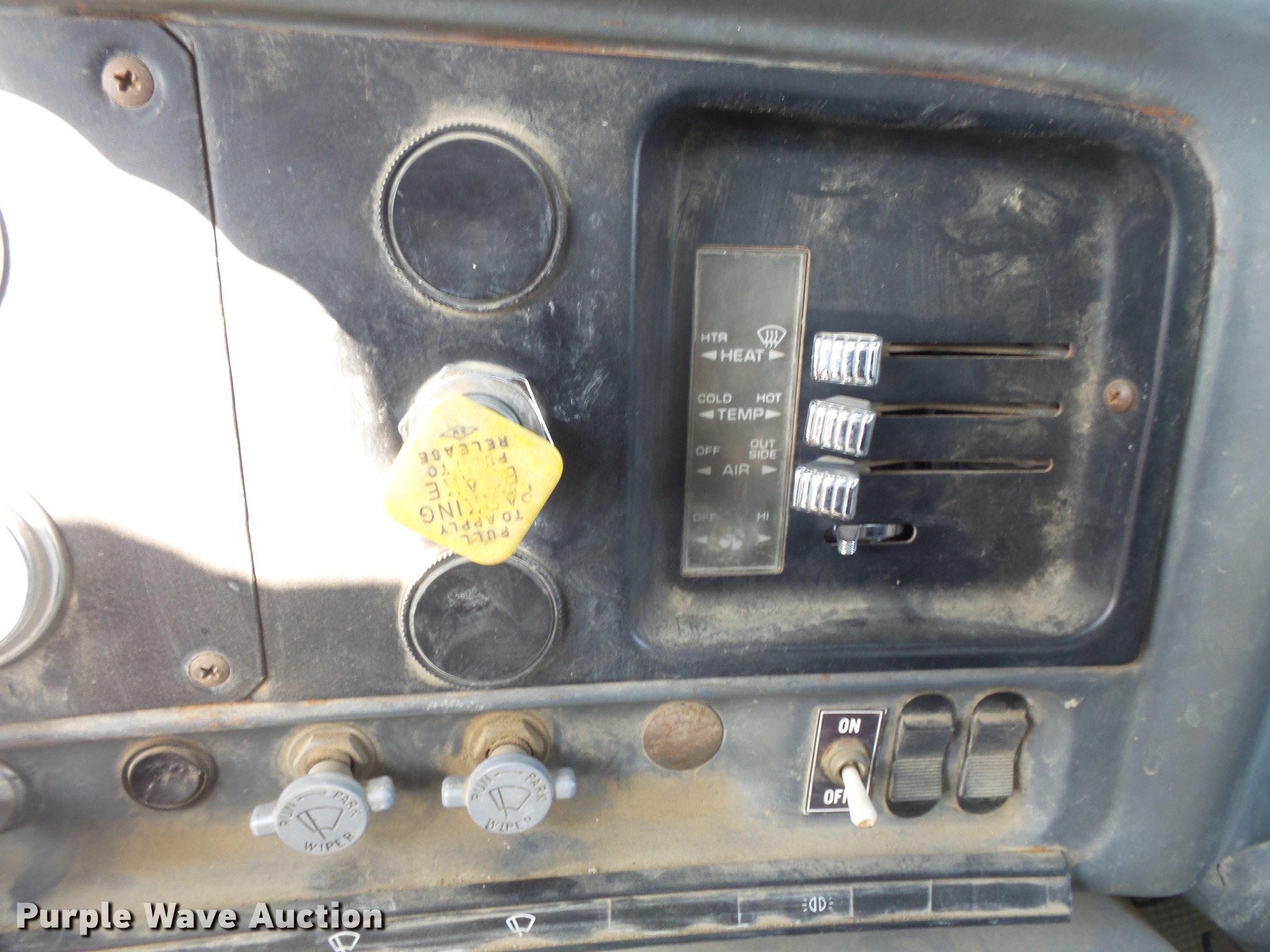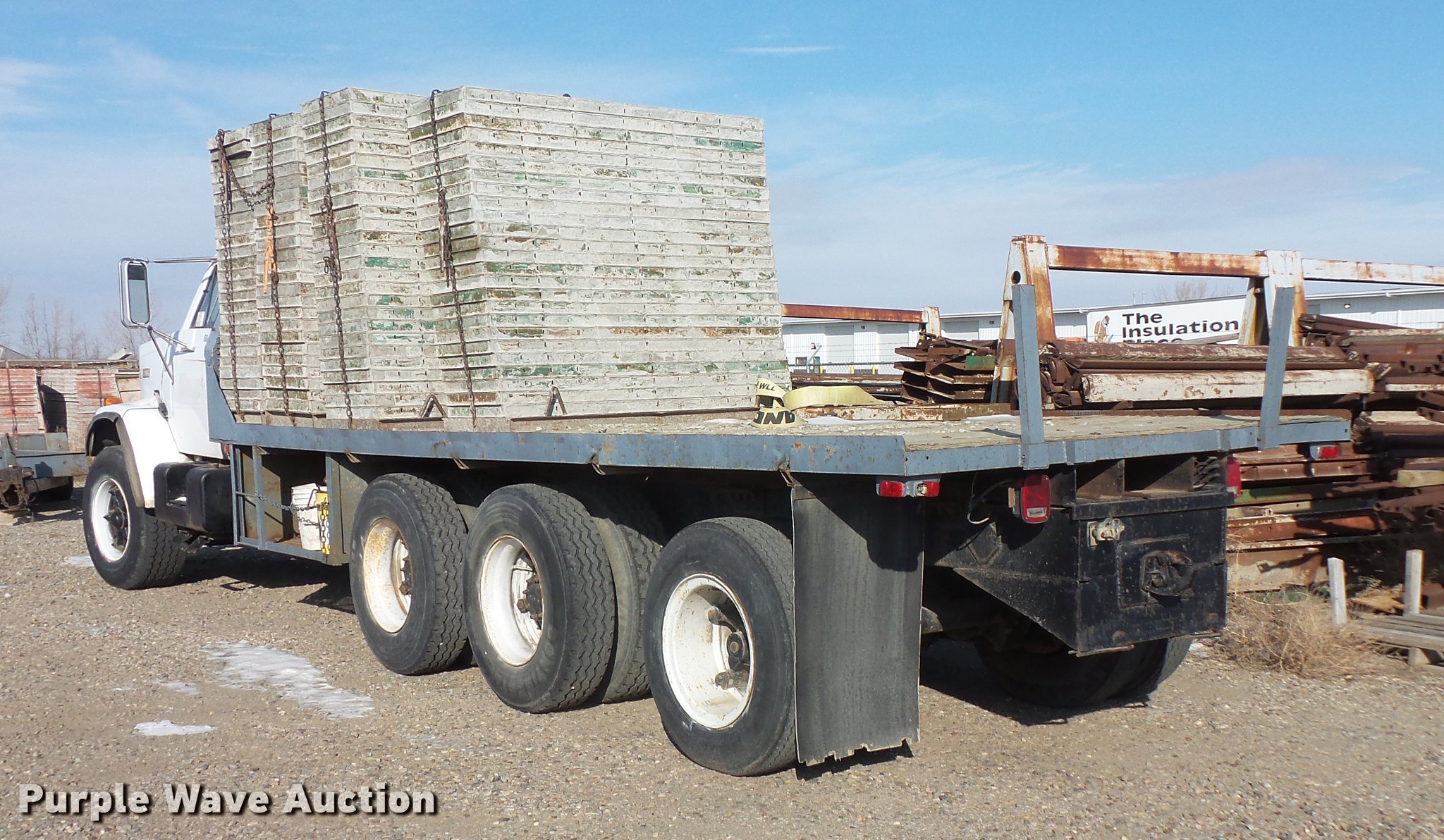 Purple Wave is selling a used Flat Bed Truck in North Dakota. This item is a 1984 GMC Brigadier flatbed truck with the following: 136,050 miles on odometer, Detroit Diesel six cylinder diesel engine, Eight speed manual transmission, Heat, 20'8"L x 94"W wood flatbed, Single fuel tank, Single exhaust stack, Pintle hitch, Trailer wiring, Air lift tag axle, Walking beam suspension, Air brakes, 385/65R22.5 front tires, 11R22.5 rear tires, 9.00R20 tag axle tires, Oil leak, Concrete forms and pin buckets are not included, Unit# 88-869