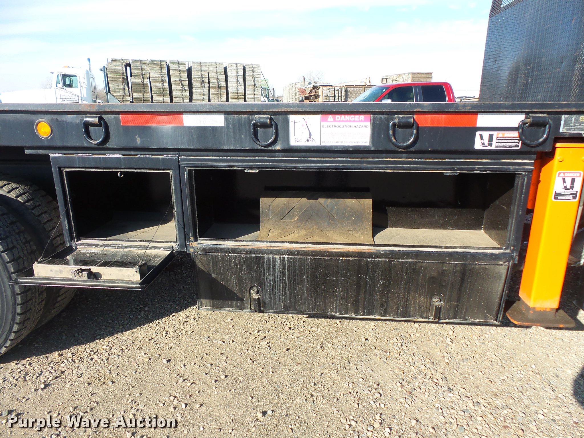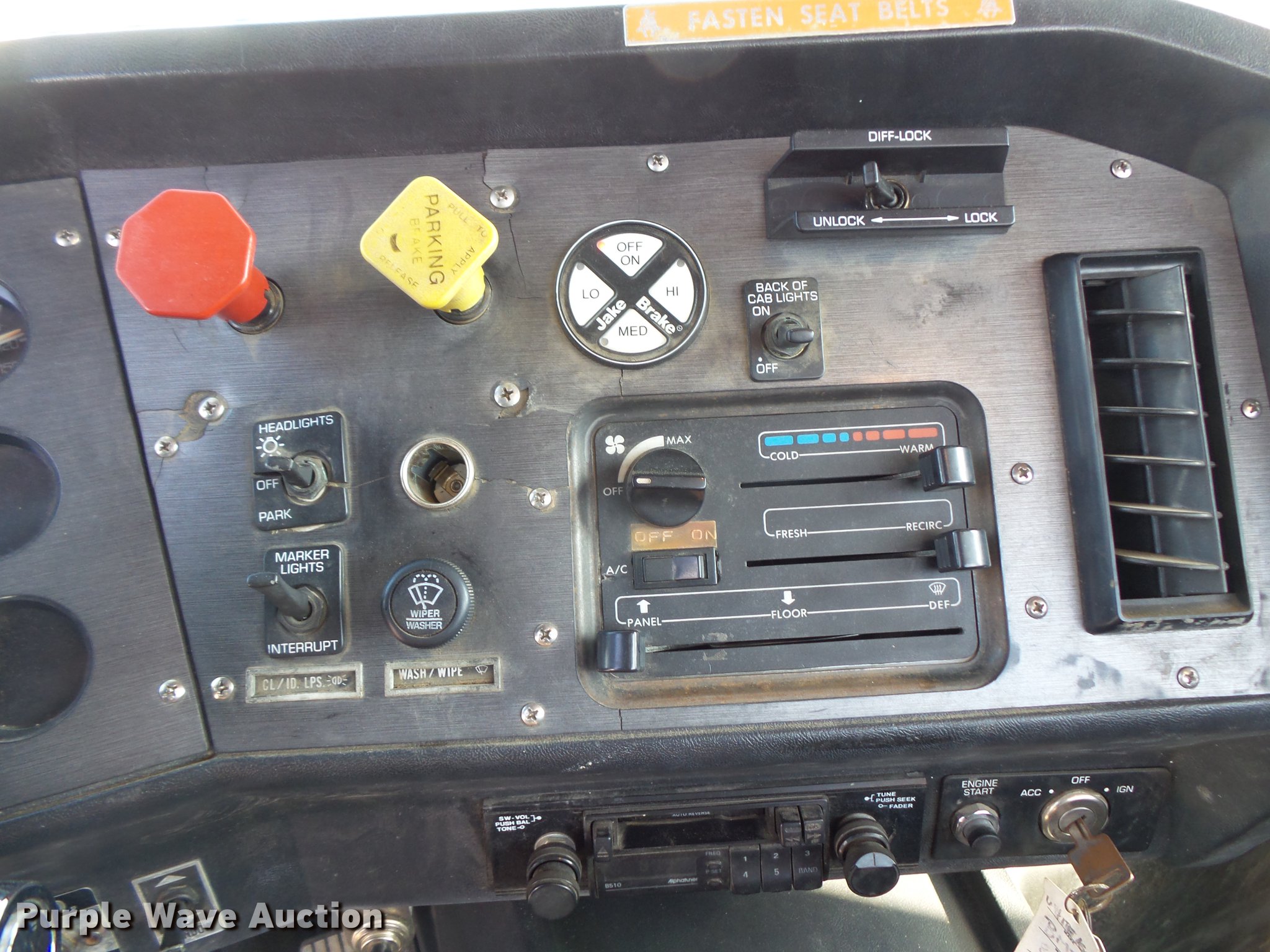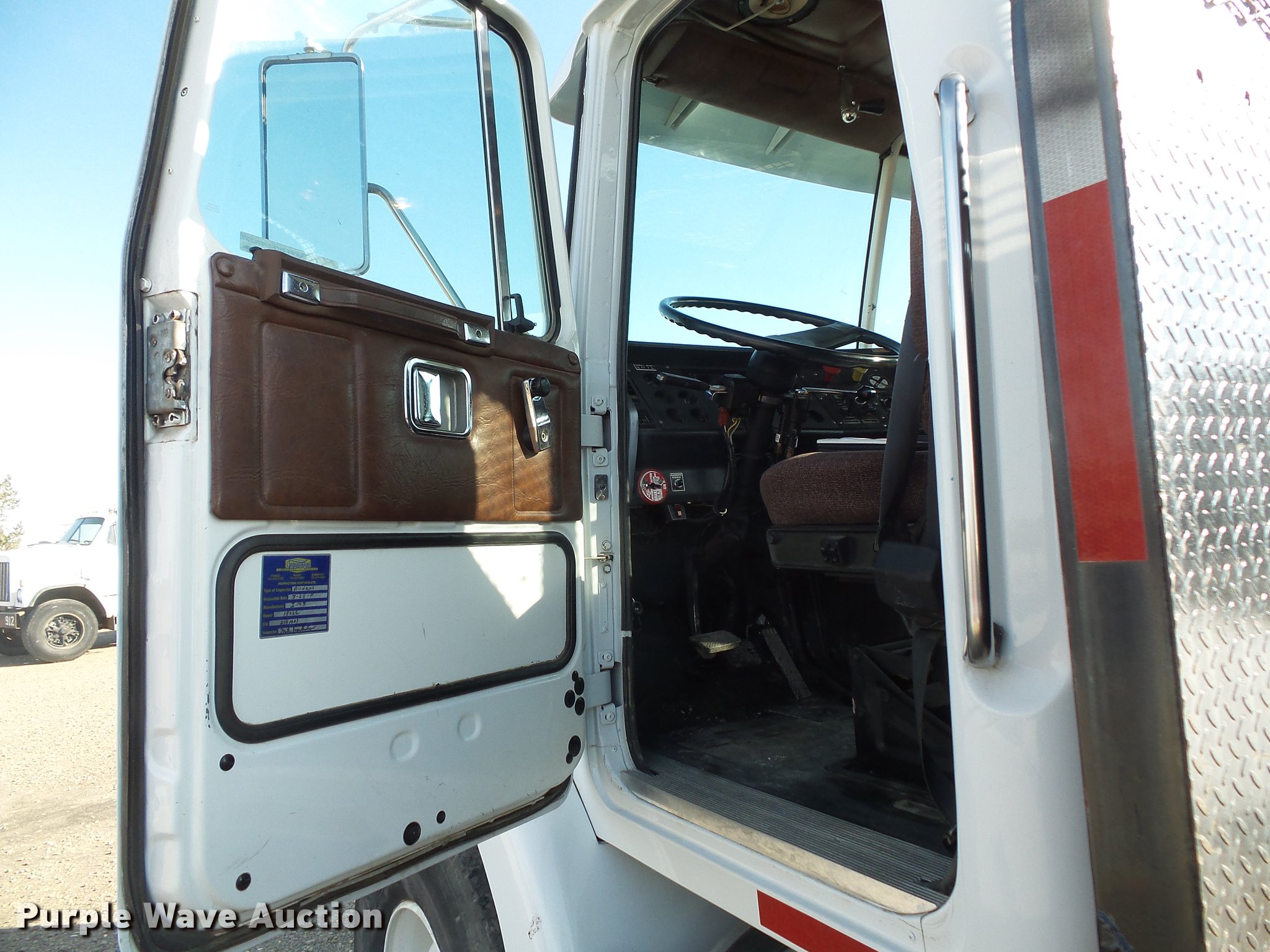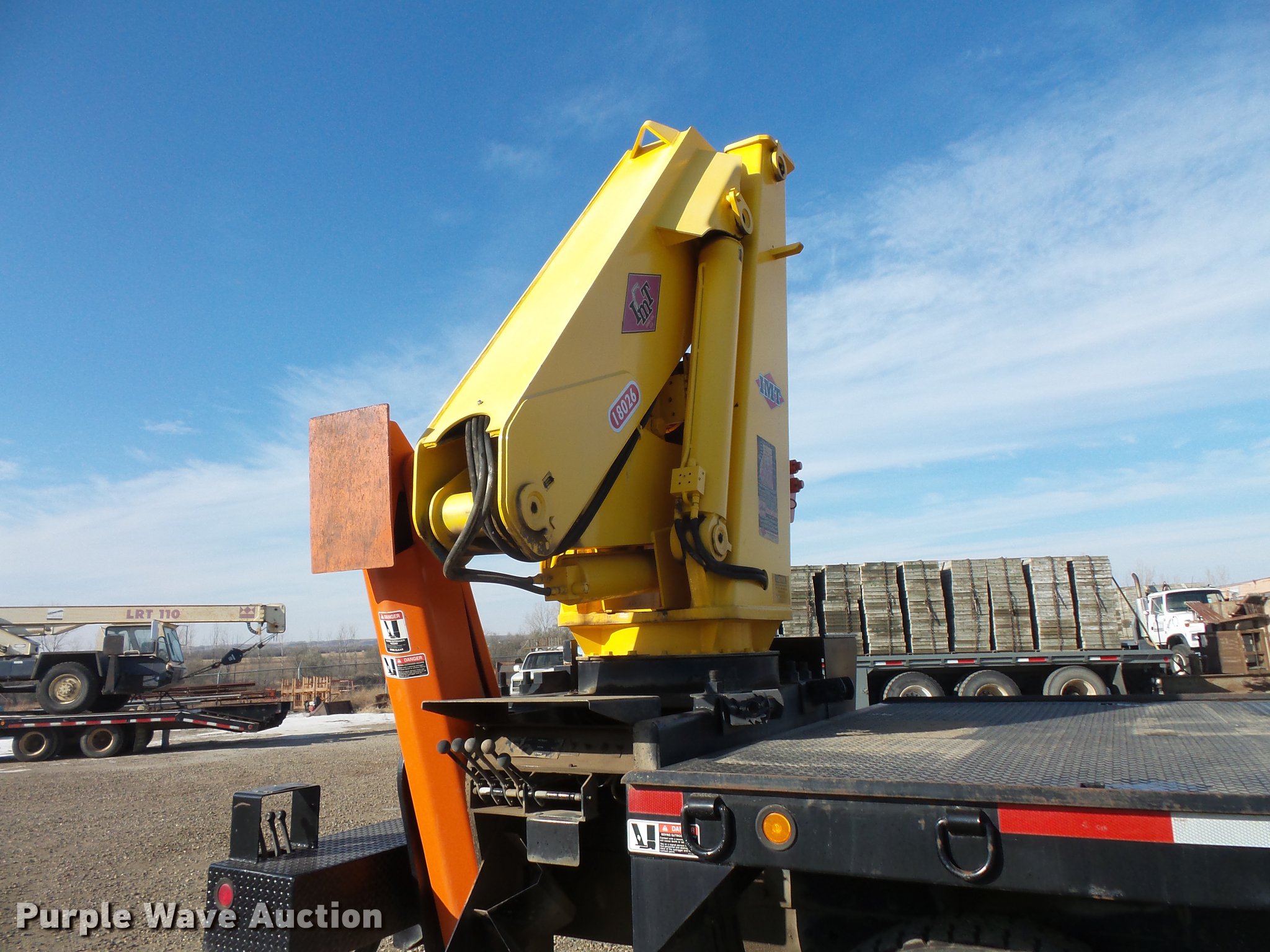 Purple Wave is selling a used Crane Truck in North Dakota. This item is a 1991 Volvo WG flatbed truck with crane with the following: Unknown miles on odometer, Caterpillar 3176 10.3L L6 turbo diesel engine, Rockwell nine speed manual transmission, Heat, AM/FM/cassette, Air suspension seat, Wet kit, Altec steel flatbed, 18'3"L x 98"W, Toolboxes, Storage boxes, Headache rack, D-ring tie downs, IMT 18026 knuckle boom crane, Crane extends 5' past bed, (8) winches, (2) stabilizers, Serial 18026F2191021, Front tow hooks, Single fuel tank, Single exhaust stack, Pintle hitch, Trailer wiring, Glad hand connections, Walking beam suspension, Air brakes, 445/65R22.5 front tires, 11R22.5 rear tires, GVWR 58,000 lbs, FAWR 18,000 lbs, RAWR 20,000 lbs, Unit# 87-382