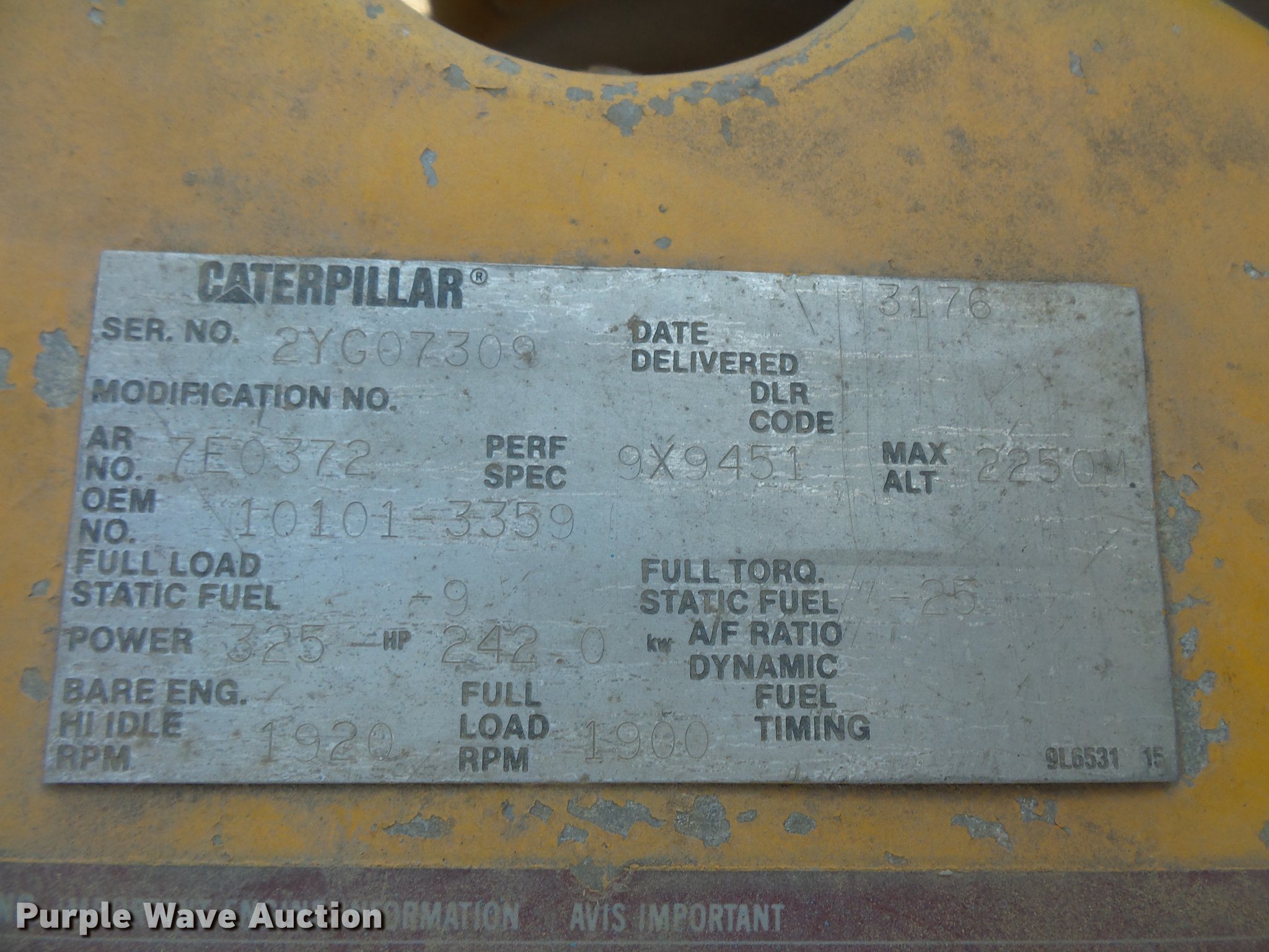 - Caterpillar 3176 10.3L L6 turbo diesel engine