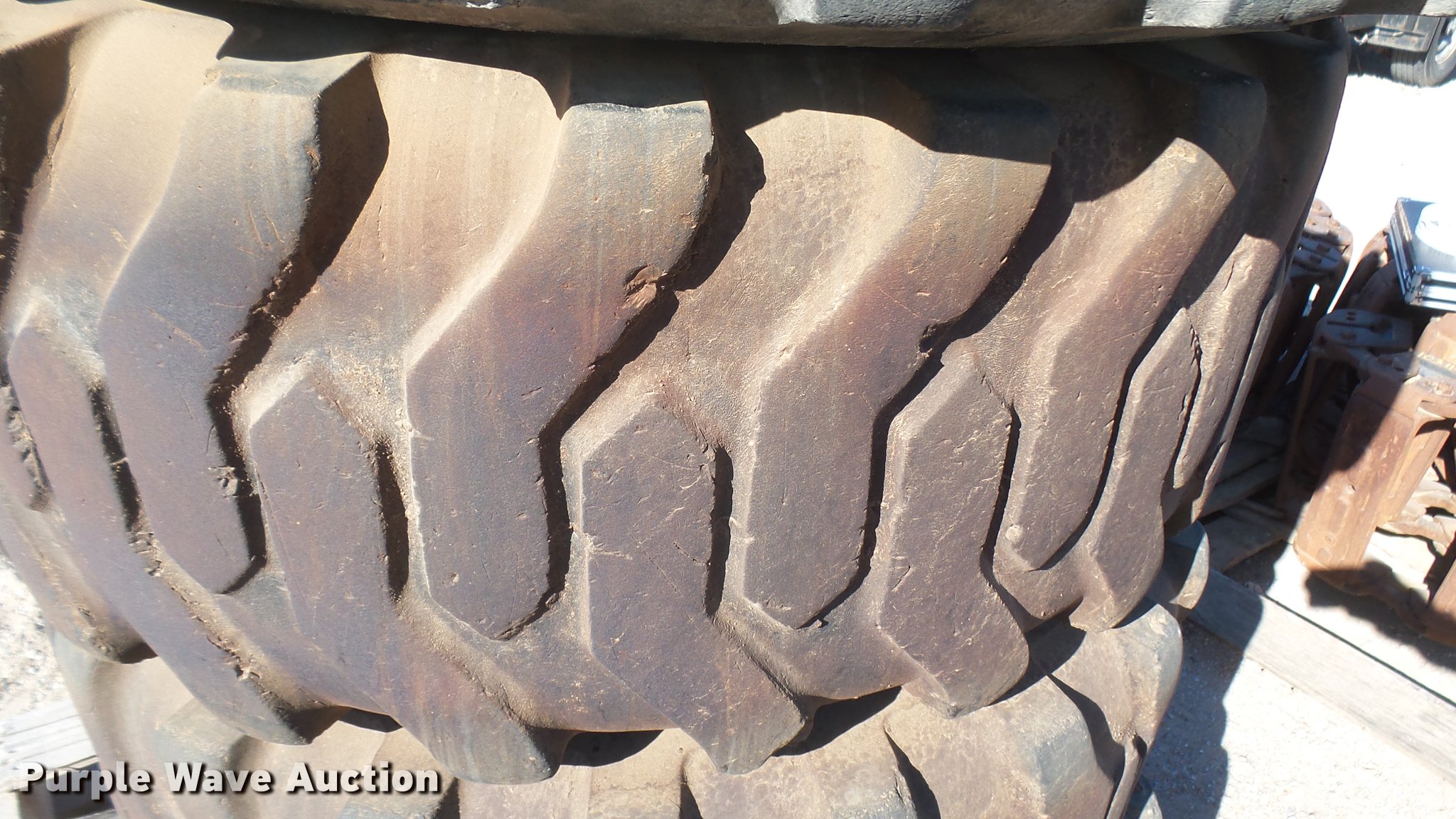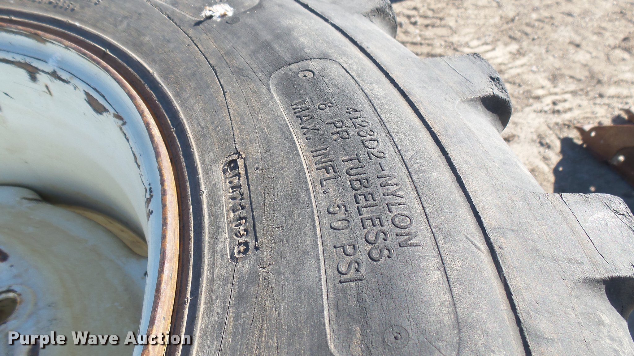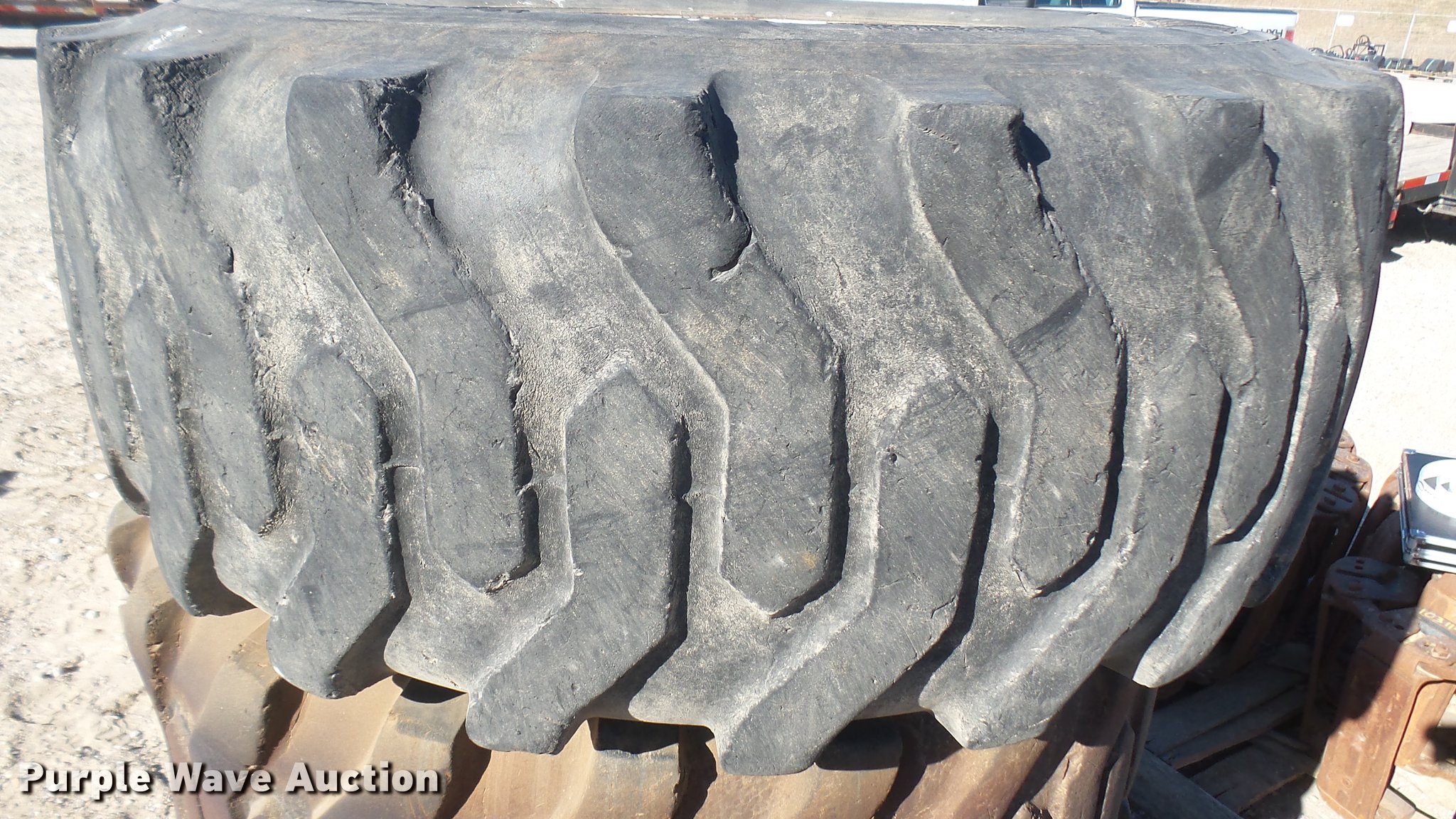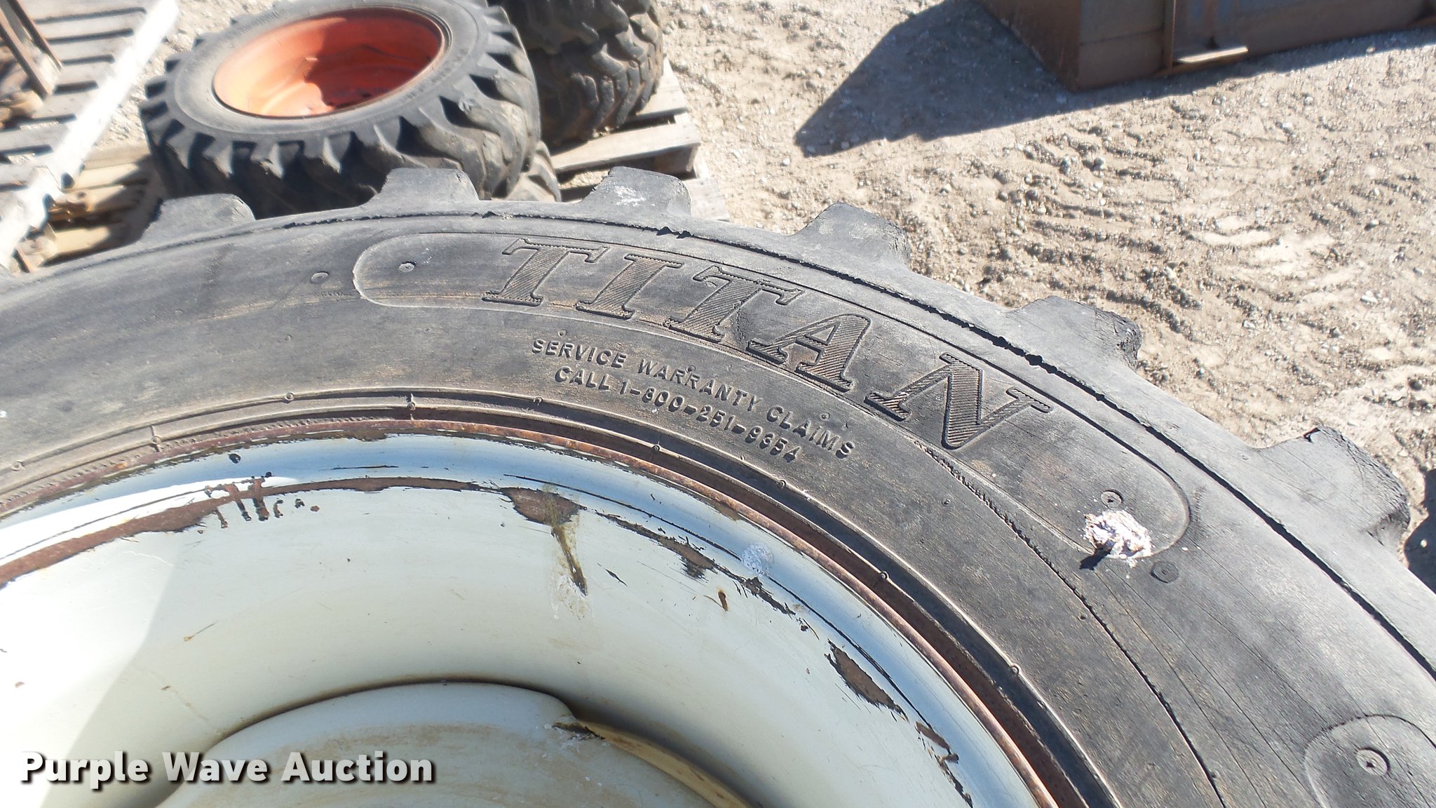Purple Wave is selling a used Industrial Tires or Tracks in Kansas. This item is a (4) Titan 12-16.5 tires with the following: Eight lug wheels