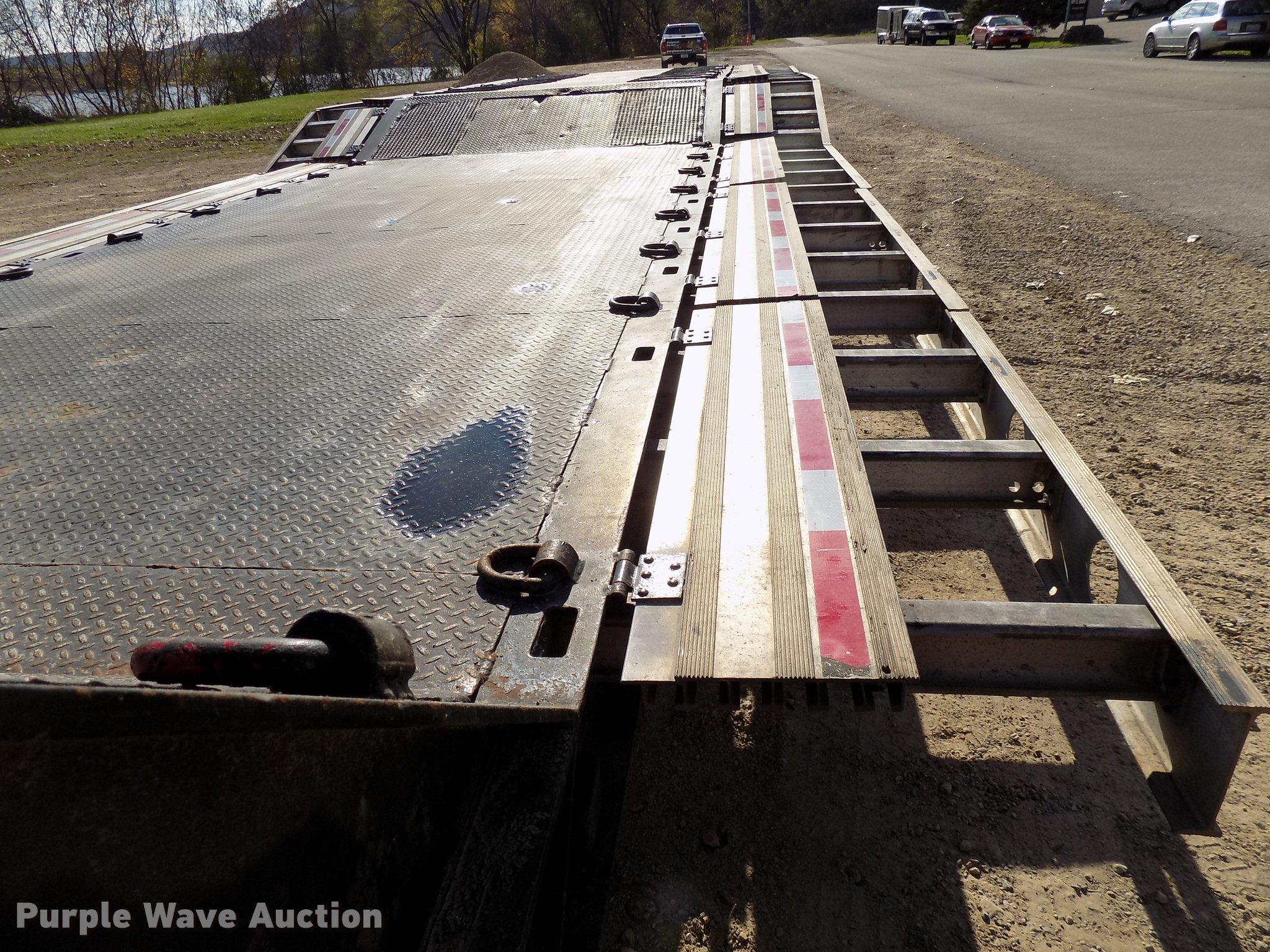 Purple Wave is selling a used Equip. Trailer in Iowa. This item is a 1992 Muv-All 4860FTD double drop deck equipment trailer with the following: 48'L x 102"W, 96"L top deck, 206"L well, 188"L rear deck, 12'L hydratail, 12'L hydraulic ramps, Steel deck, D-ring tie downs, Aluminum pull out outriggers, 29"W, Manual hydraulic controls, Fifth wheel plate, Dual leg two speed landing gear, Air brakes, Air suspension, Tandem axle, Steel wheels, 255/70R22.5 tires, GVWR 74,500 lbs, GAWR 18,160 lbs