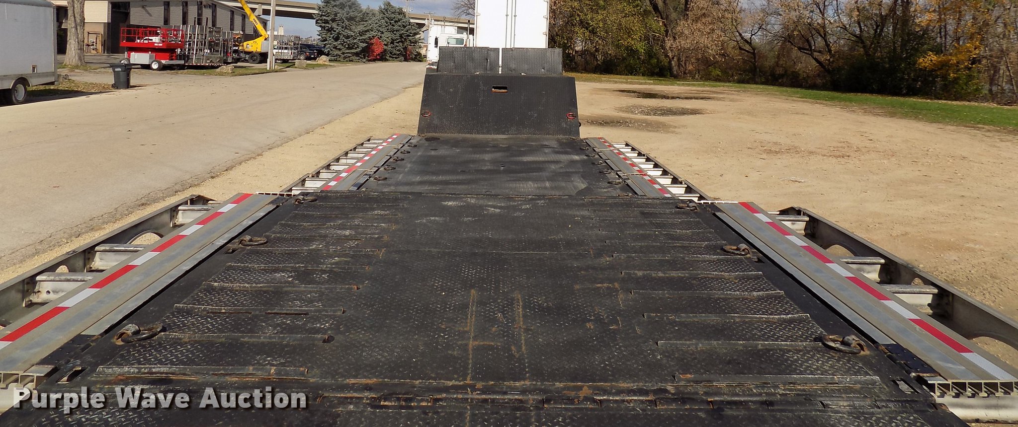 1992 Muv-All 4860FTD double drop deck equipment trailer. 48'L x 102"W, 96"L top deck, 206"L well, 188"L rear deck, 12'L hydratail, 12'L hydraulic ramps, Steel deck, D-ring tie downs, Aluminum pull out outriggers 29"W, Manual hydraulic controls, Fifth wheel plate, Dual leg two speed landing gear, Air brakes, Air suspension , Tandem axle, Steel wheels, 255/70R22.5 tires, GVWR 74,500 lbs, GAWR 18,160 lbs. Iowa title. 1W1BCL6B7NK215922. Zephyr Aluminum Products Inc.. 555 Huff St. Dubuque, IA 52003