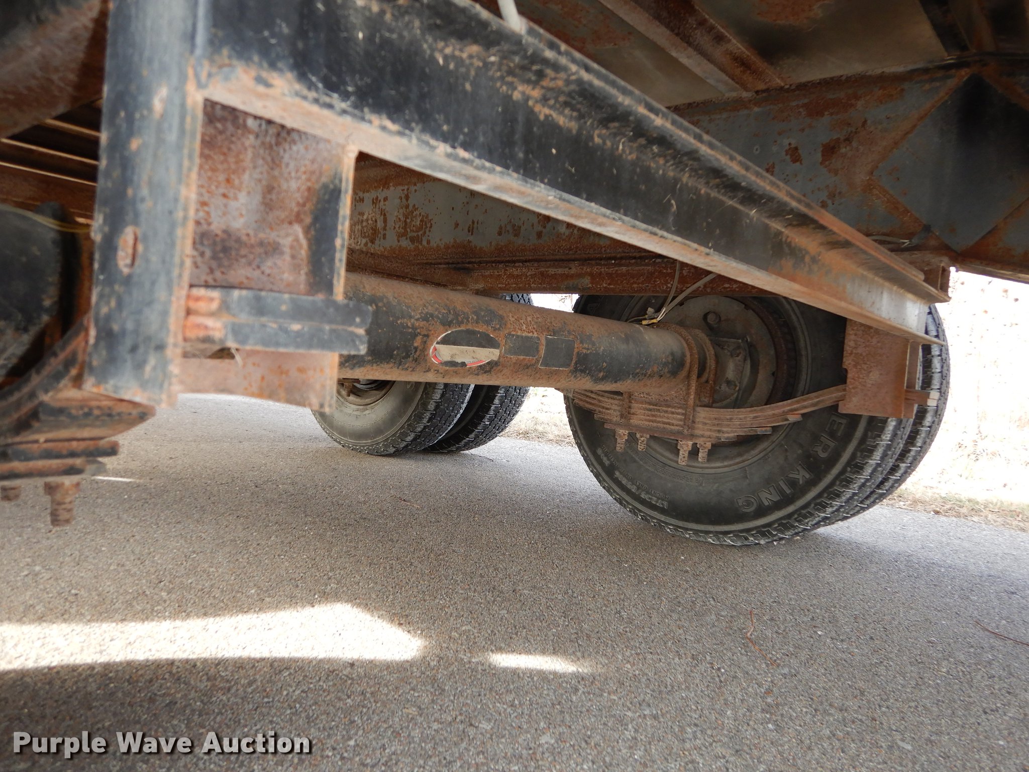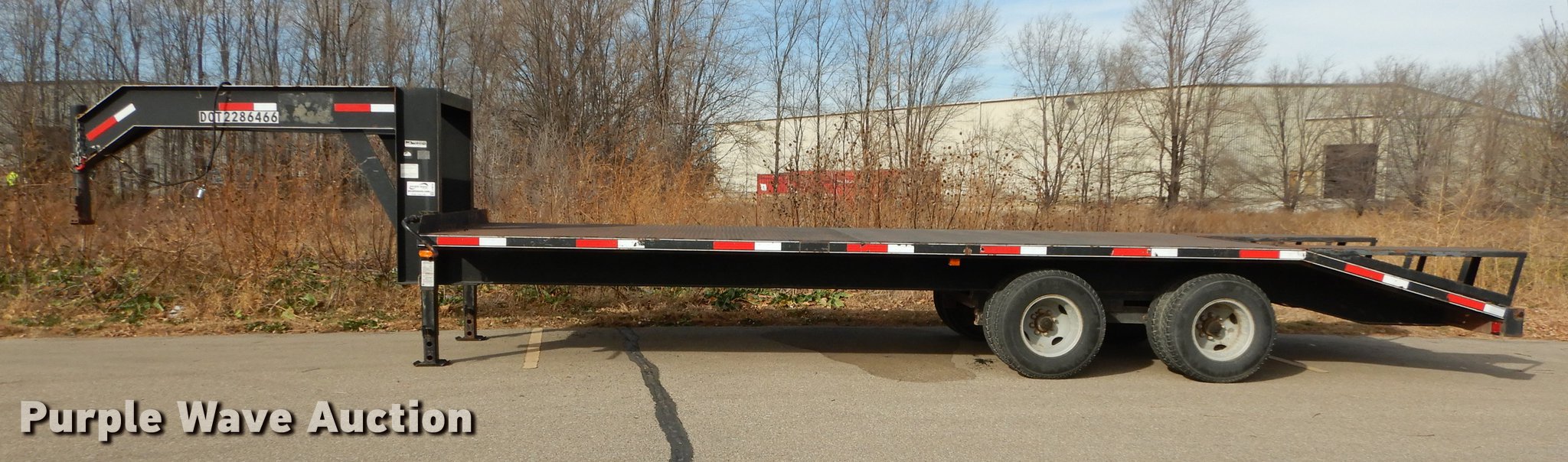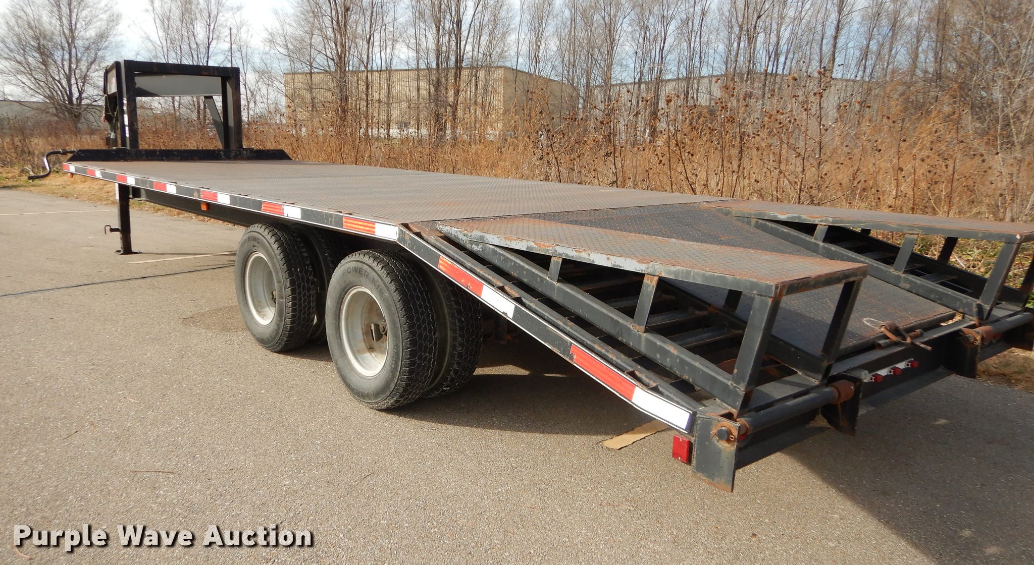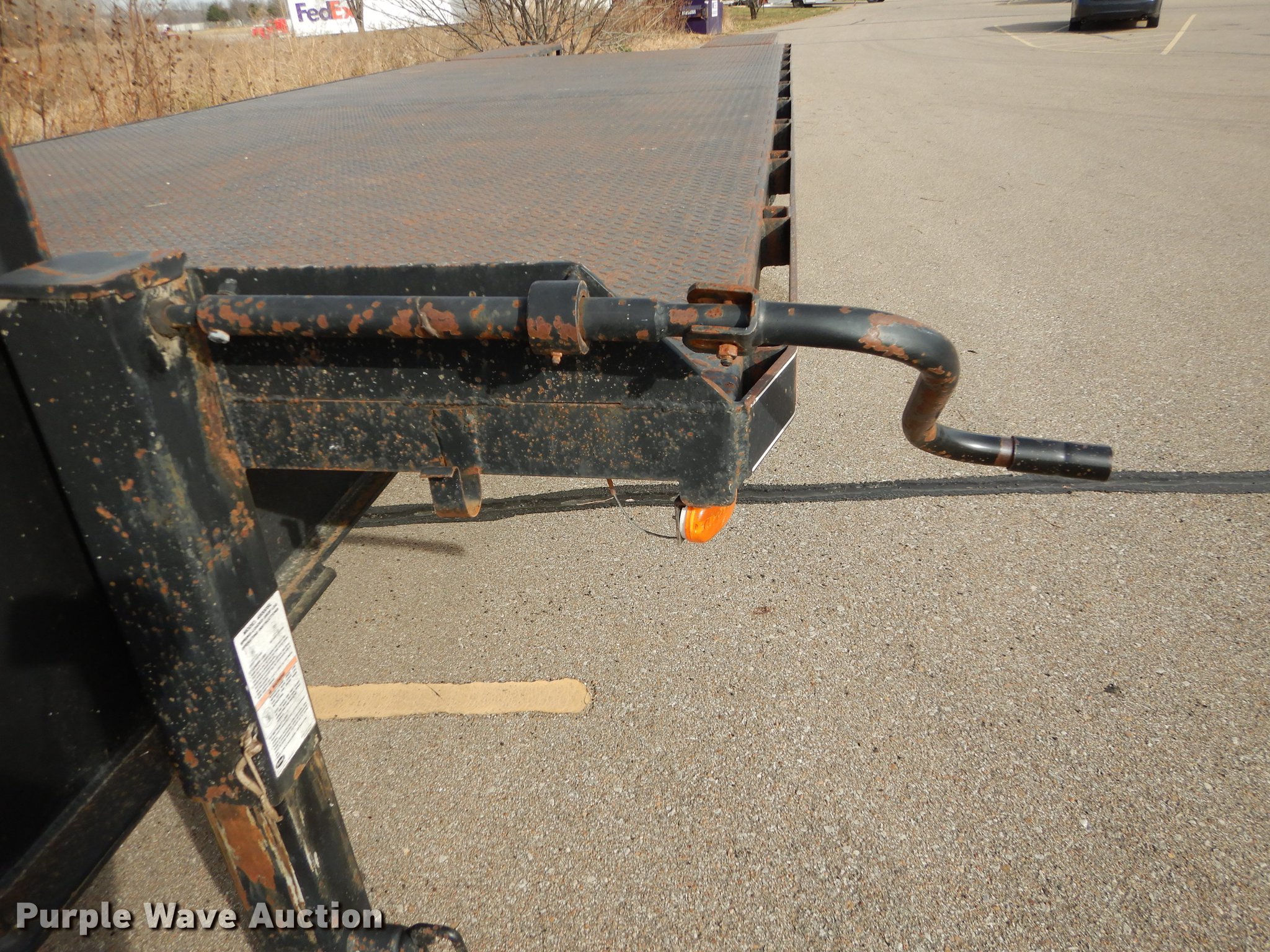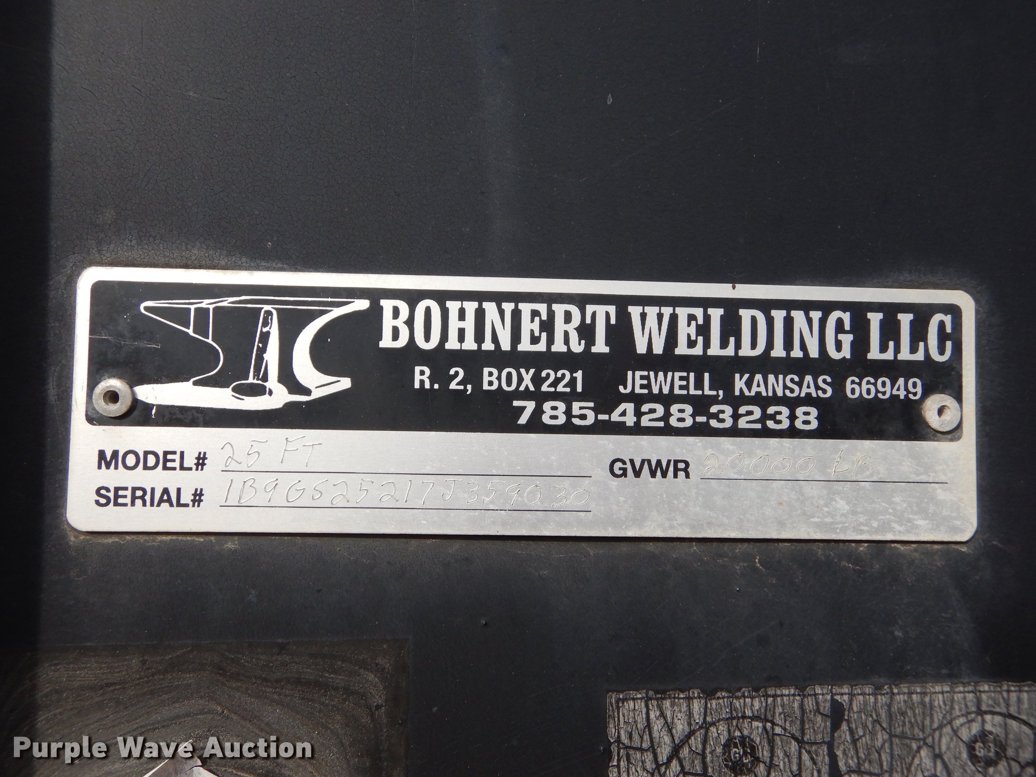 Purple Wave is selling a used Equip. Trailer in Kansas. This item is a 2007 Bohnert equipment trailer with the following: 34.5' overall length, 20'L x 102"W deck, 5'L dovetail, 62"L x 20"W ramps, 9.5' tongue length, Steel construction, Stake side pockets, Dual leg landing gear, Safety chains, Break-away cable, Tandem axle, 235/85R16 tires, GVWR 20,000 lbs