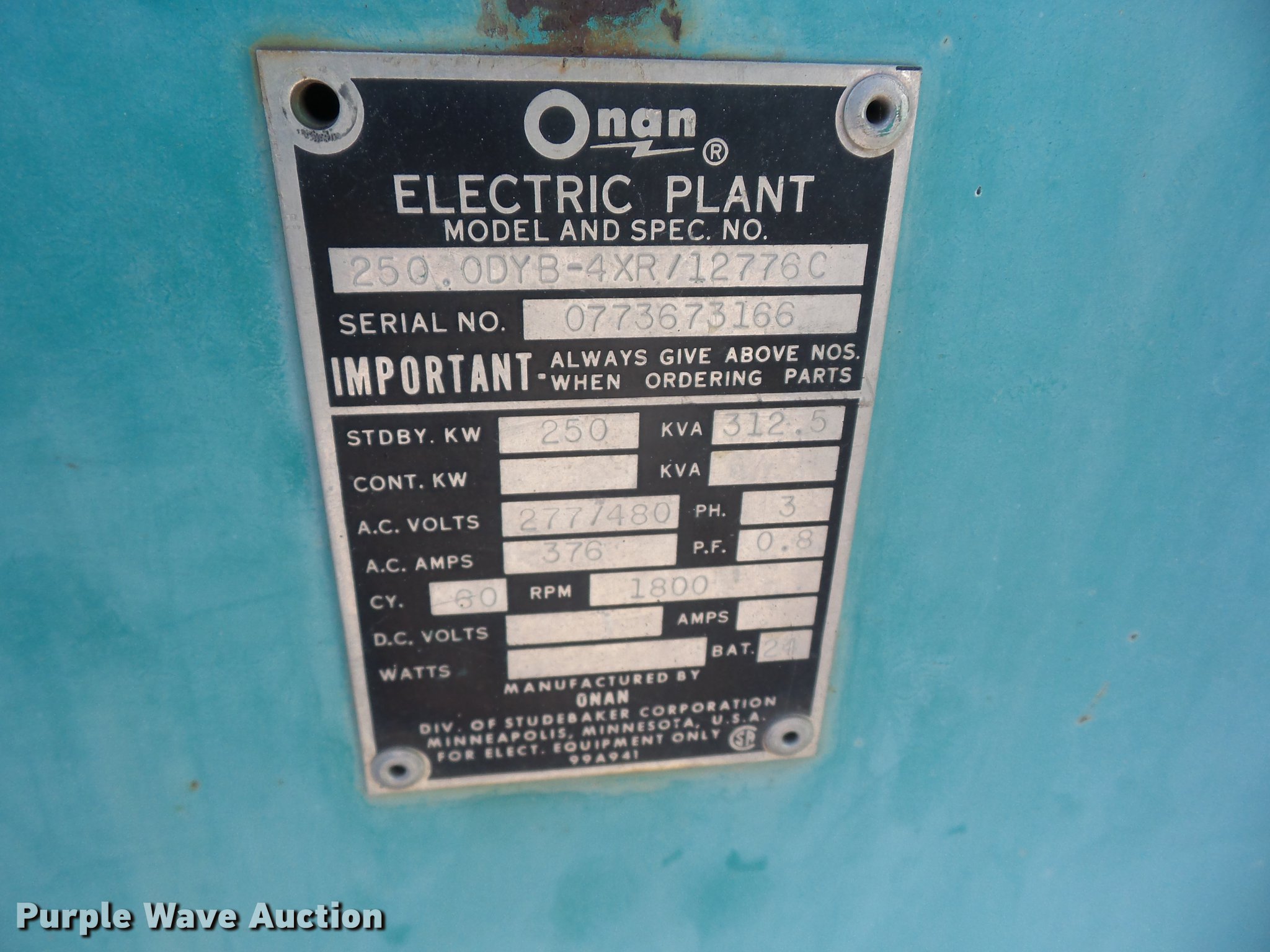 This Onan 250.0DYB-4XT/12776C generator will sell to the highest bidder regardless of price.
