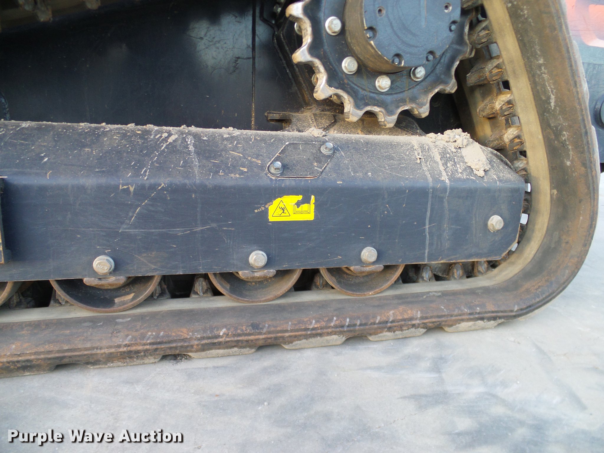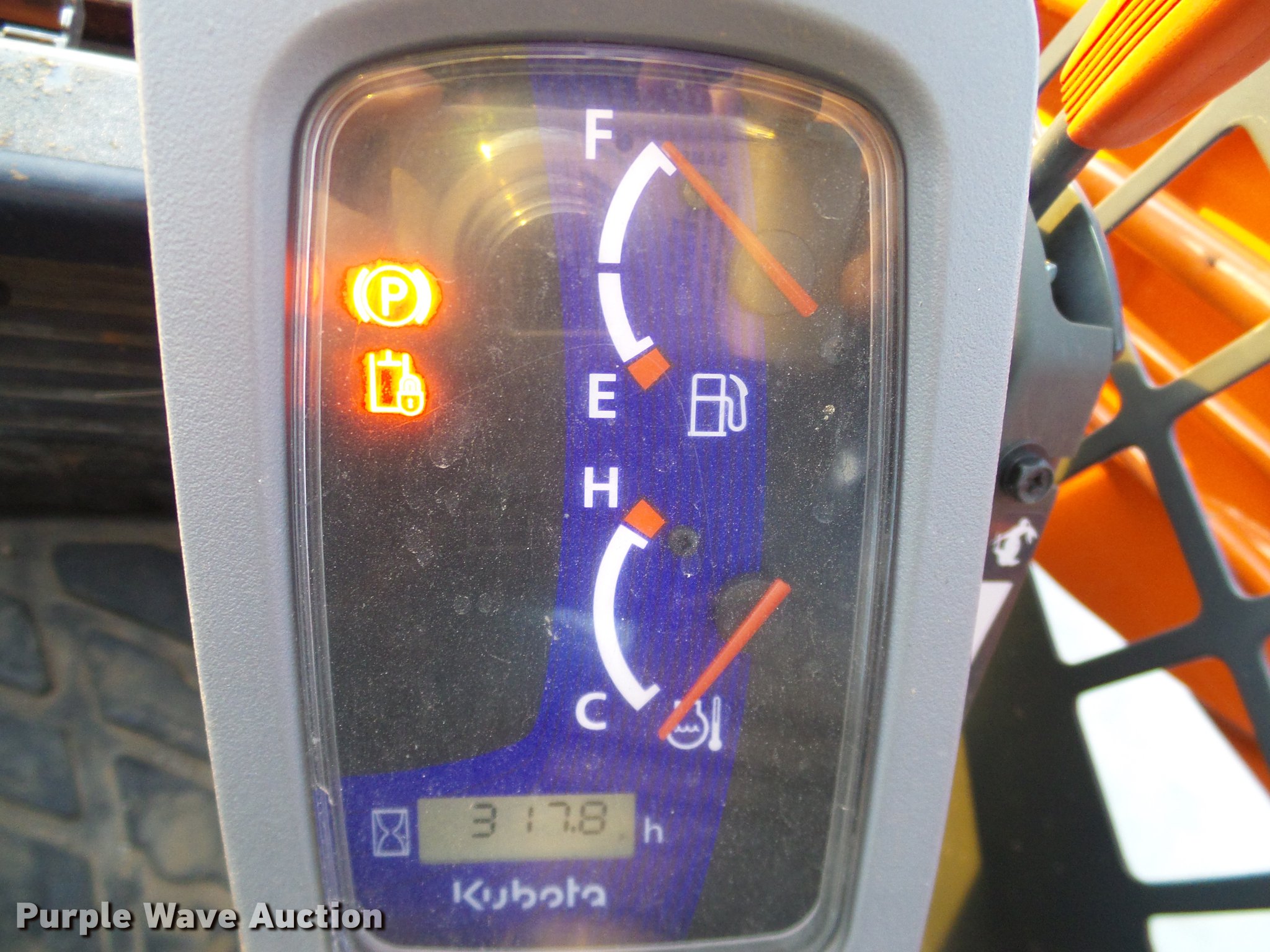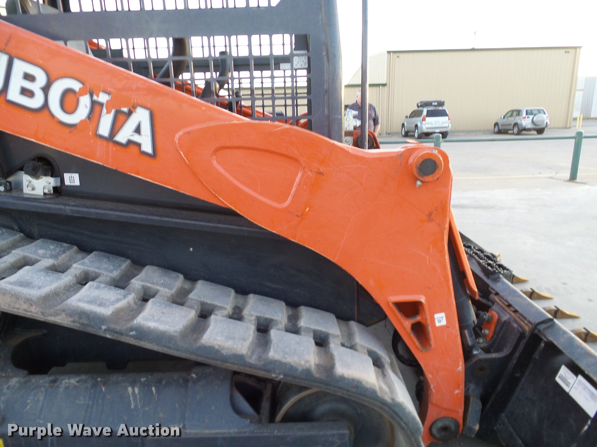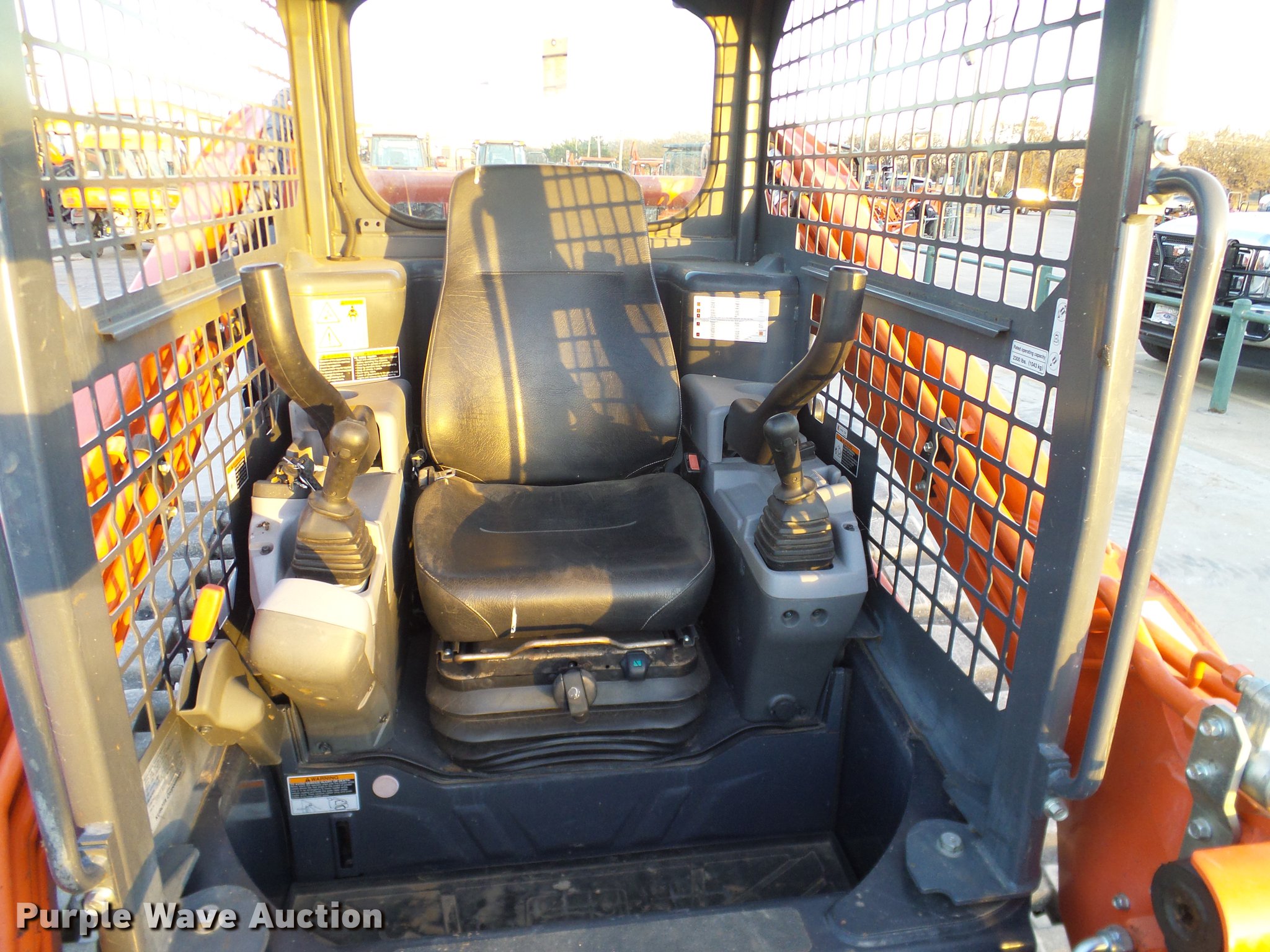 Purple Wave is selling a used Tracked Skid Steer Loader in Oklahoma. This item is a 2015 Kubota SVL75-2 skid steer with the following: 317 hours on meter, Kubota four cylinder turbo diesel engine, Two speed hydrostatic transmission, OROPS, Joystick controls, EMS panel, Air suspension seat, Front and rear work lights, Backup alarm, Auxiliary hydraulics, Hydraulic quick coupler, Kubota 74"W bucket, Bolt-on teeth, 15"W tracks, Serial 20906