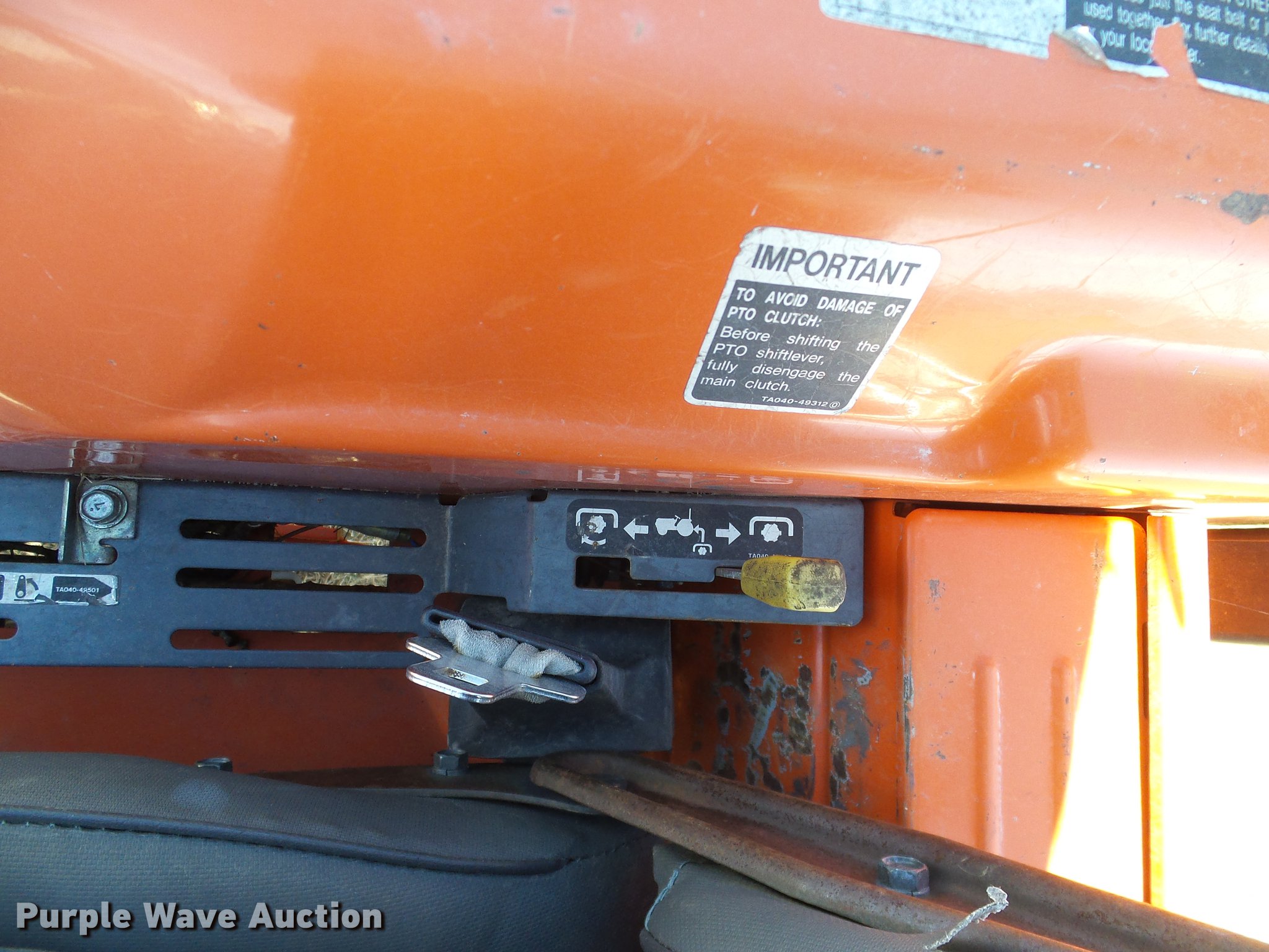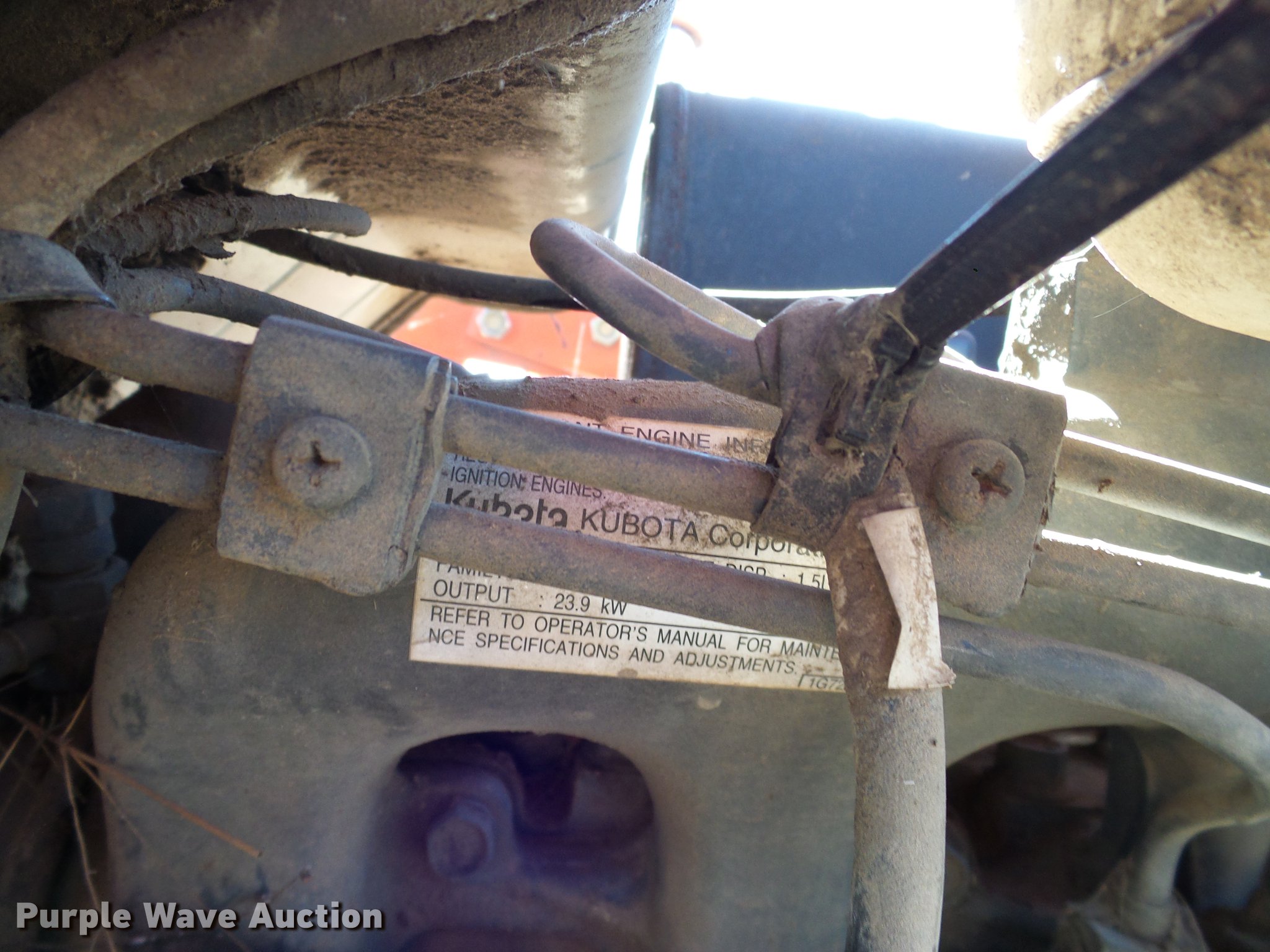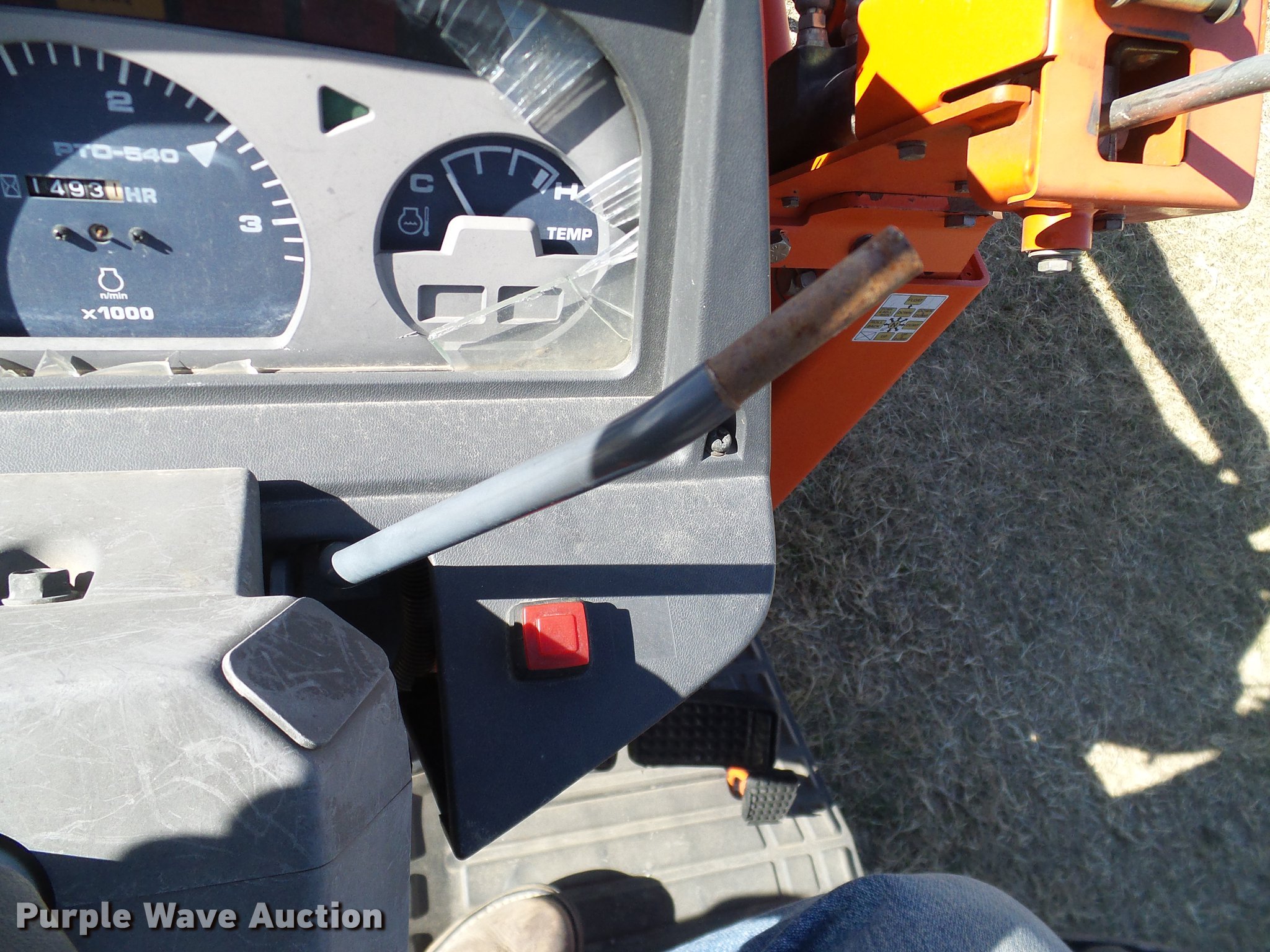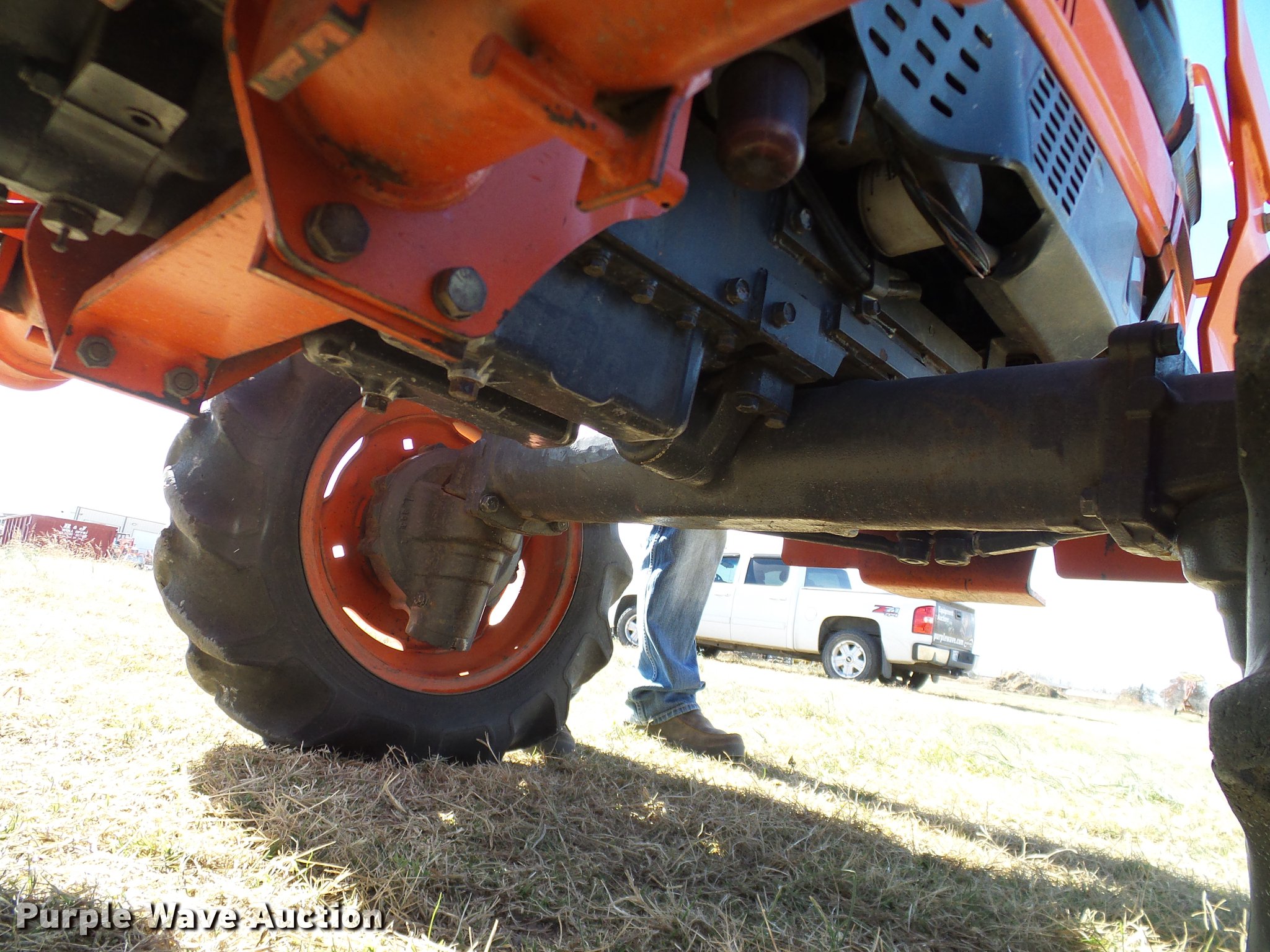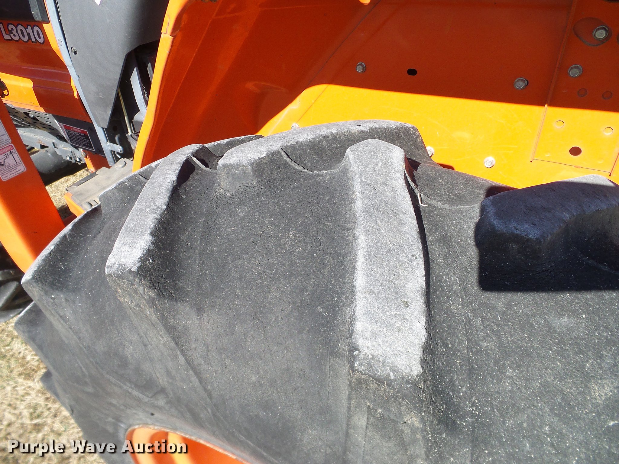 Purple Wave is selling a used Tractor in Oklahoma. This item is a Kubota L3010GST MFWD tractor with the following: 1,493 hours on meter, Kubota 1.5L three cylinder diesel engine, 32 HP, Glide transmission, 8F-8R gears, ROPS, Left-Hand reverser, Differential lock, Spring suspension seat, Tilt steering wheel, Kubota LA481 loader, 60"W bucket, Joystick loader control, Three point, 540 PTO, 92-16 front tires, 12.4-24 rear tires, Serial 0302
