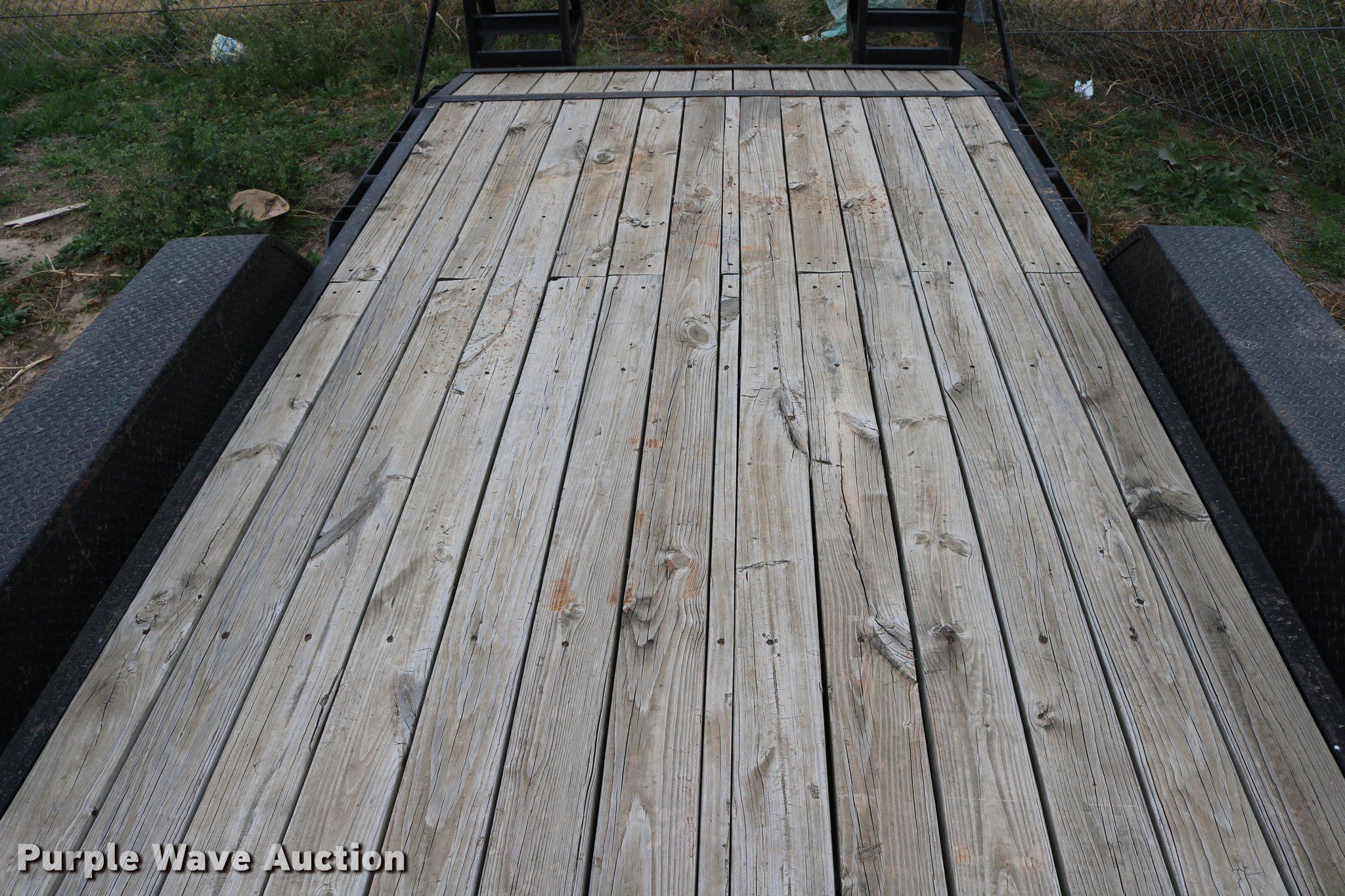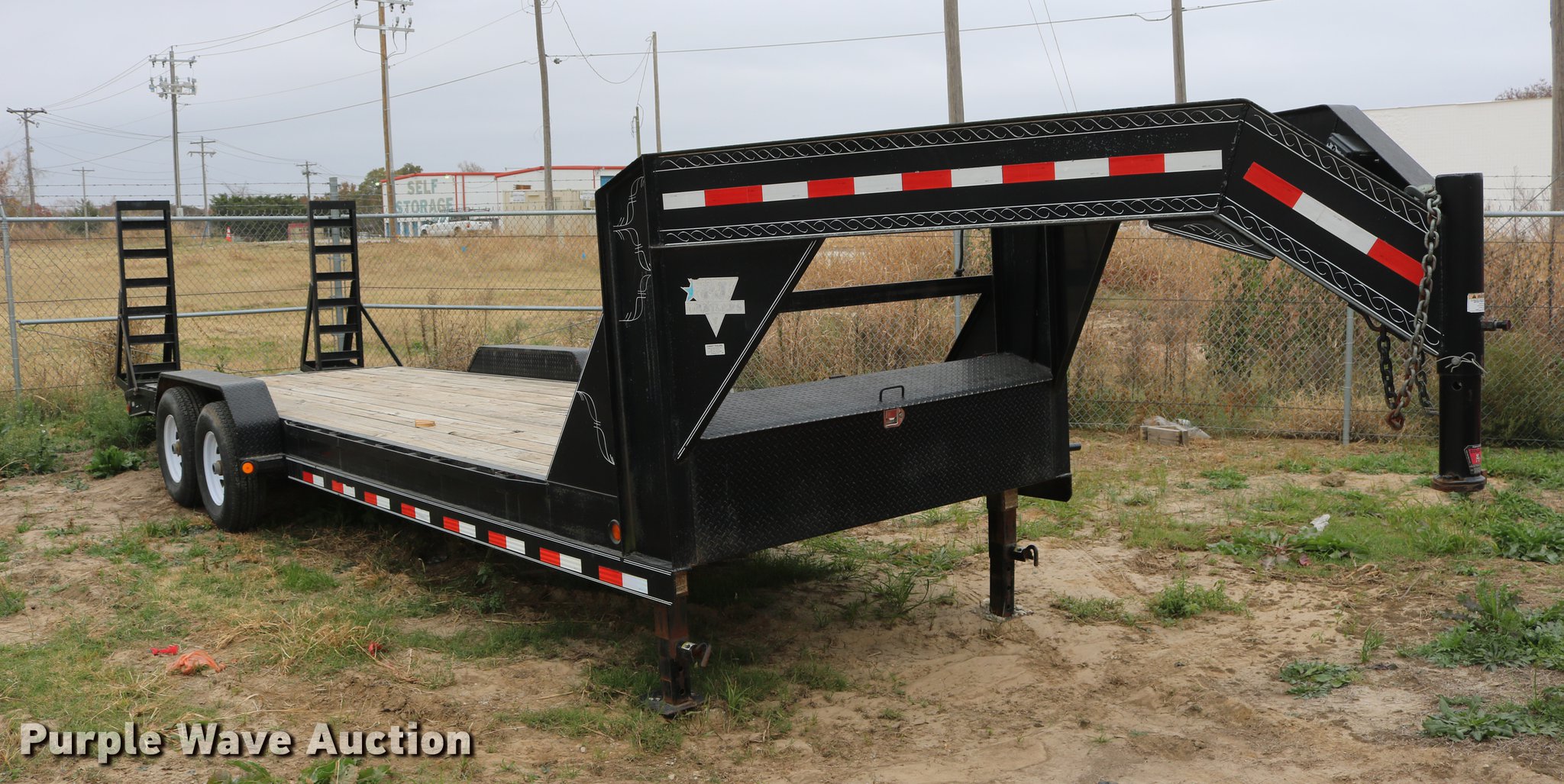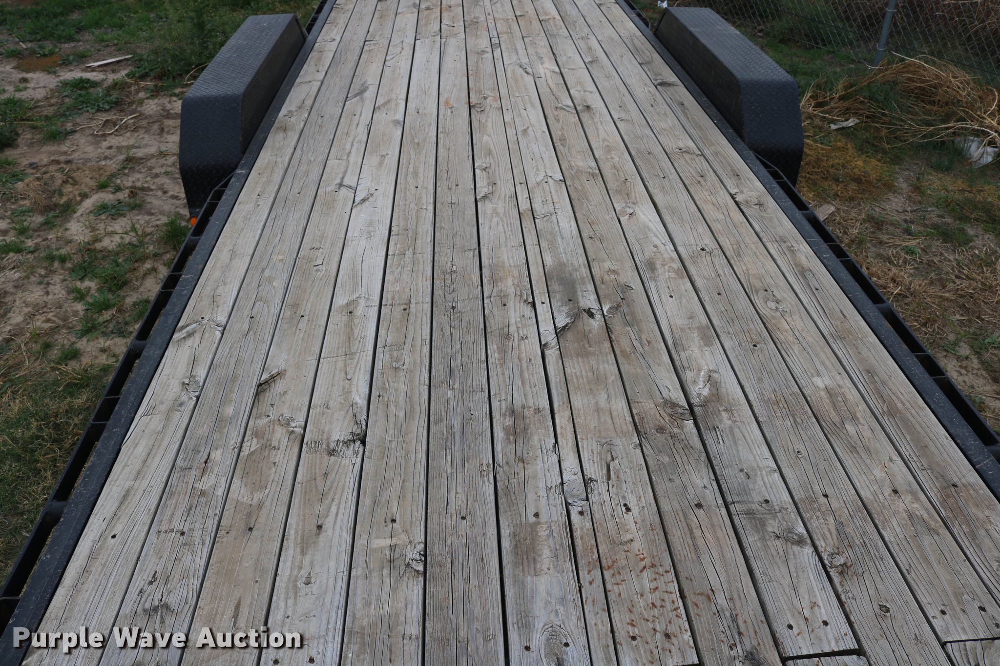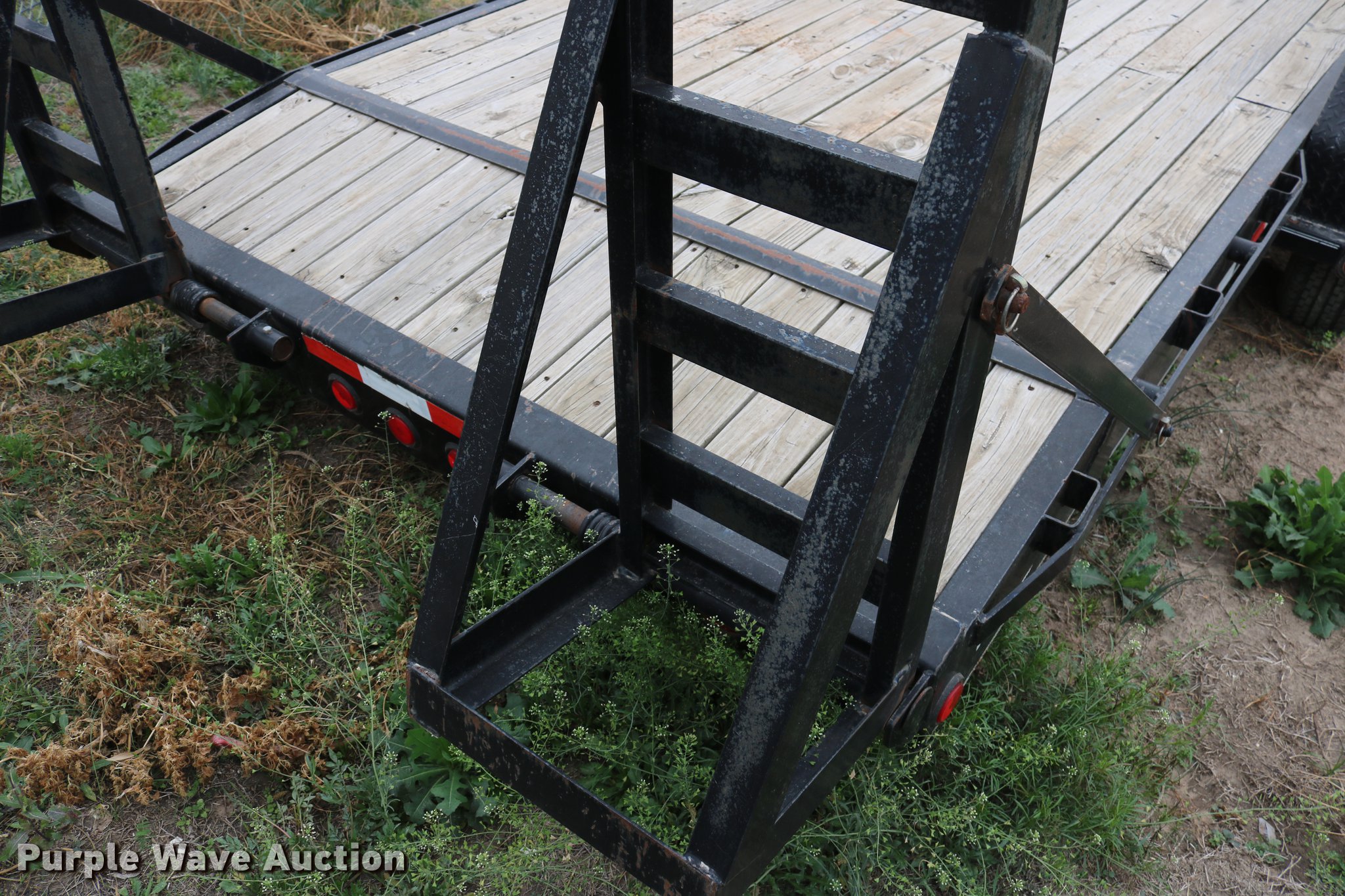 Purple Wave is selling a used Equip. Trailer in Oklahoma. This item is a 2007 PJ C8242 equipment trailer with the following: 32'L x 84"W overall, 22'L deck, 2'L dovetail, 5'L ramps, 32" floor height, Toolbox, Wood deck, Stake pockets, Gooseneck hitch, Dual leg landing gear, Spring suspension, Electric brakes, Tandem axle, Steel wheels, 235/80R16 tires, GVWR 15,680 lbs, GAWR 7,800 lbs