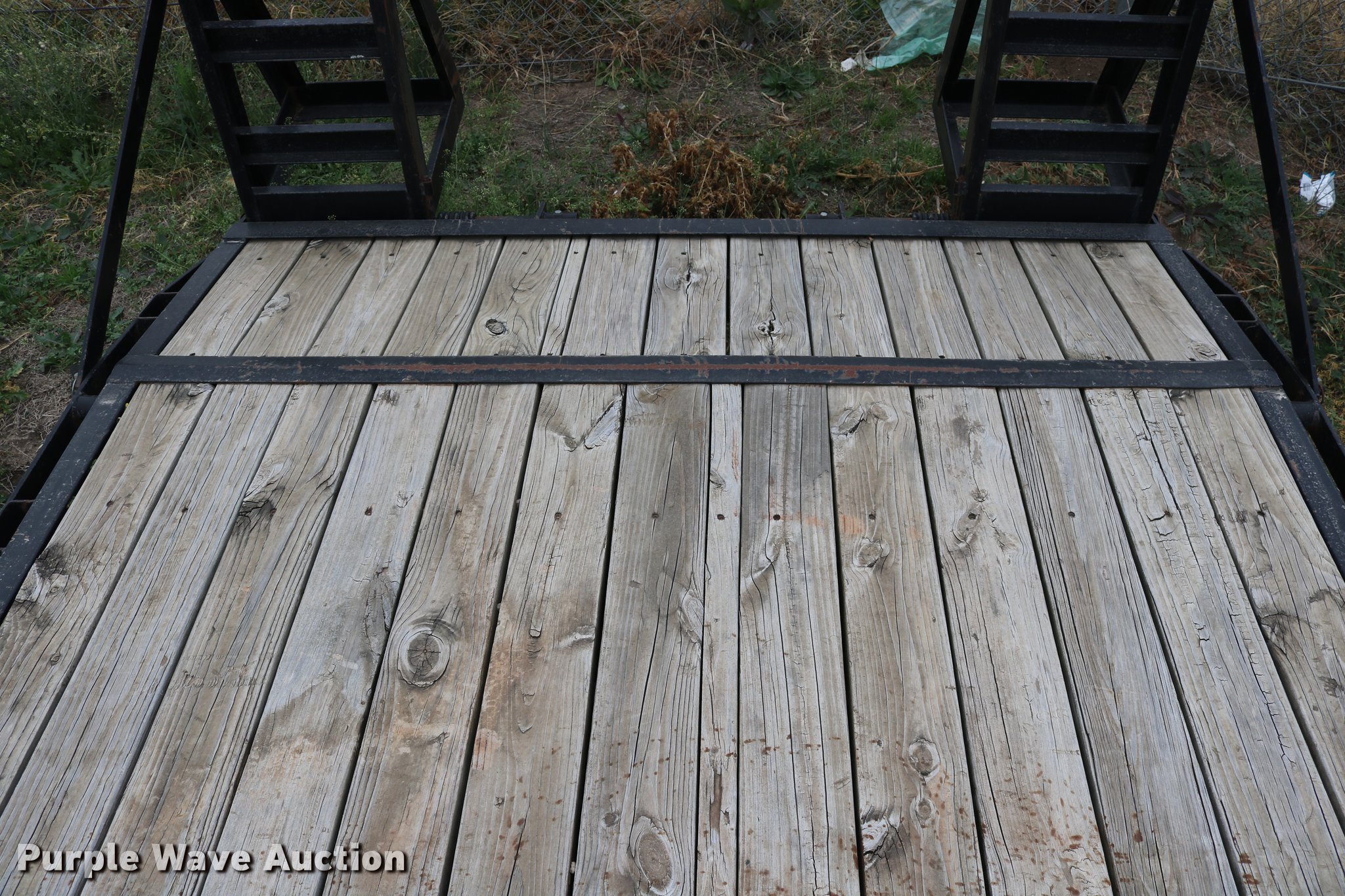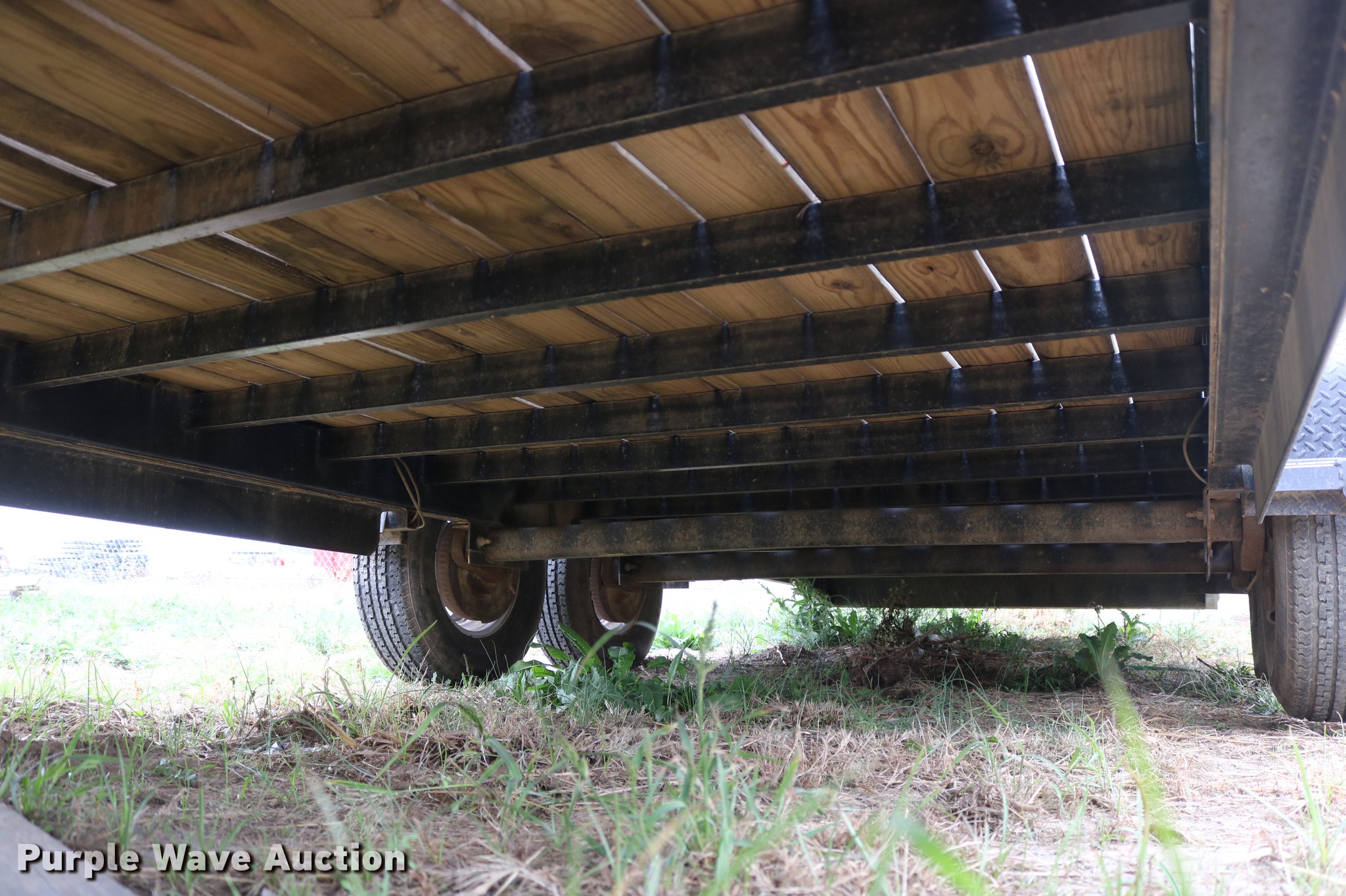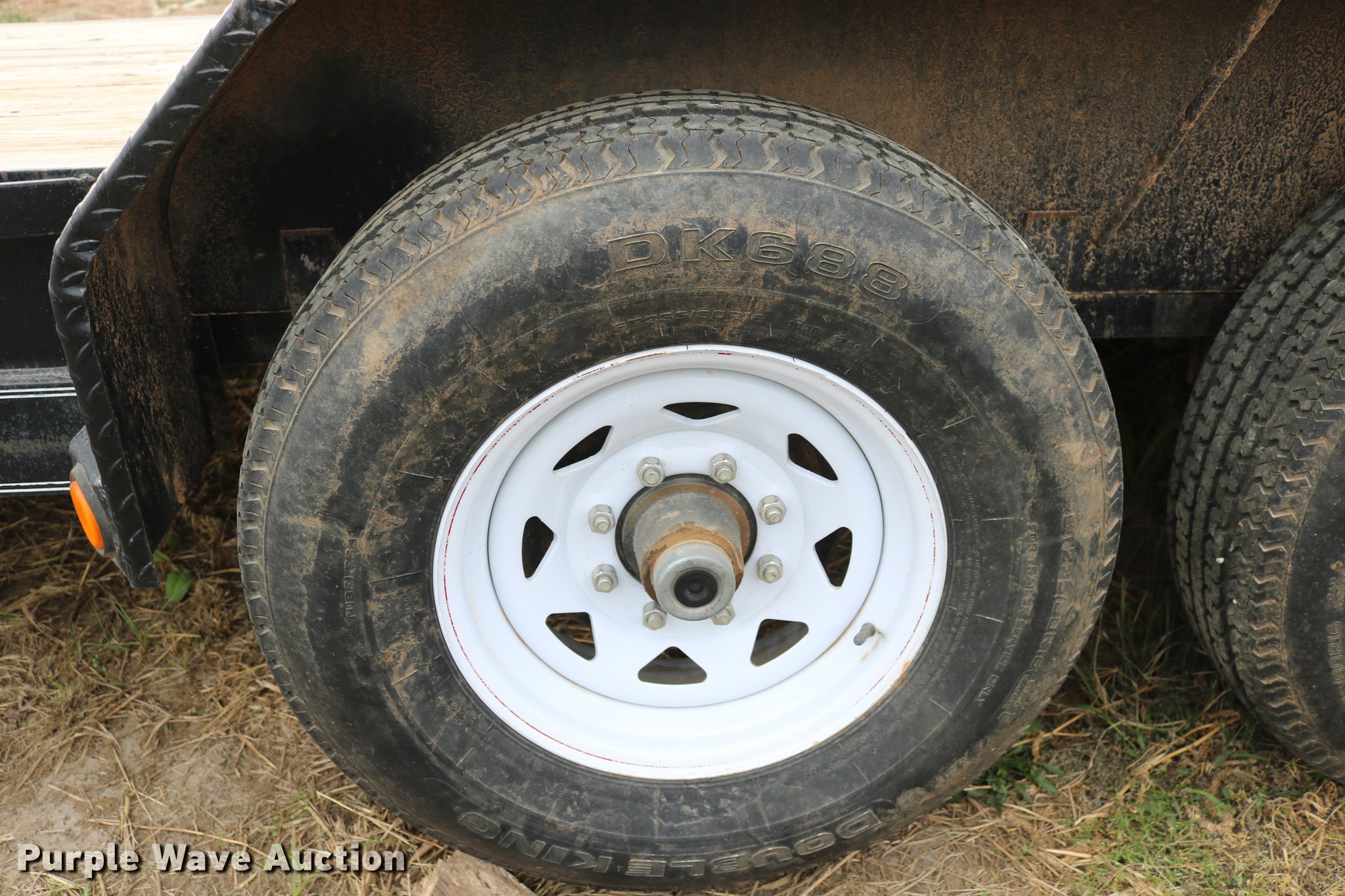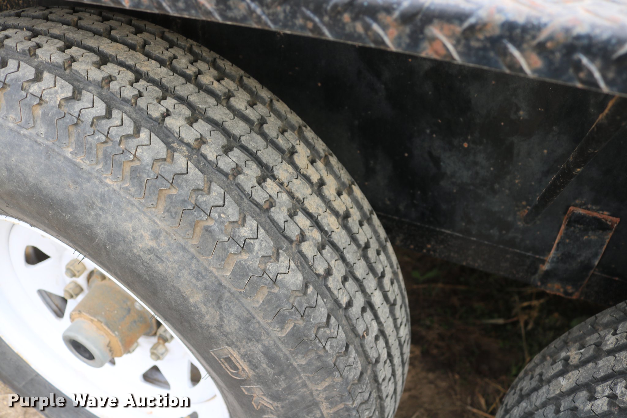 Purple Wave is selling a used Equip. Trailer in Oklahoma. This item is a 2007 PJ C8242 equipment trailer with the following: 32'L x 84"W overall, 22'L deck, 2'L dovetail, 5'L ramps, 32" floor height, Toolbox, Wood deck, Stake pockets, Gooseneck hitch, Dual leg landing gear, Spring suspension, Electric brakes, Tandem axle, Steel wheels, 235/80R16 tires, GVWR 15,680 lbs, GAWR 7,800 lbs