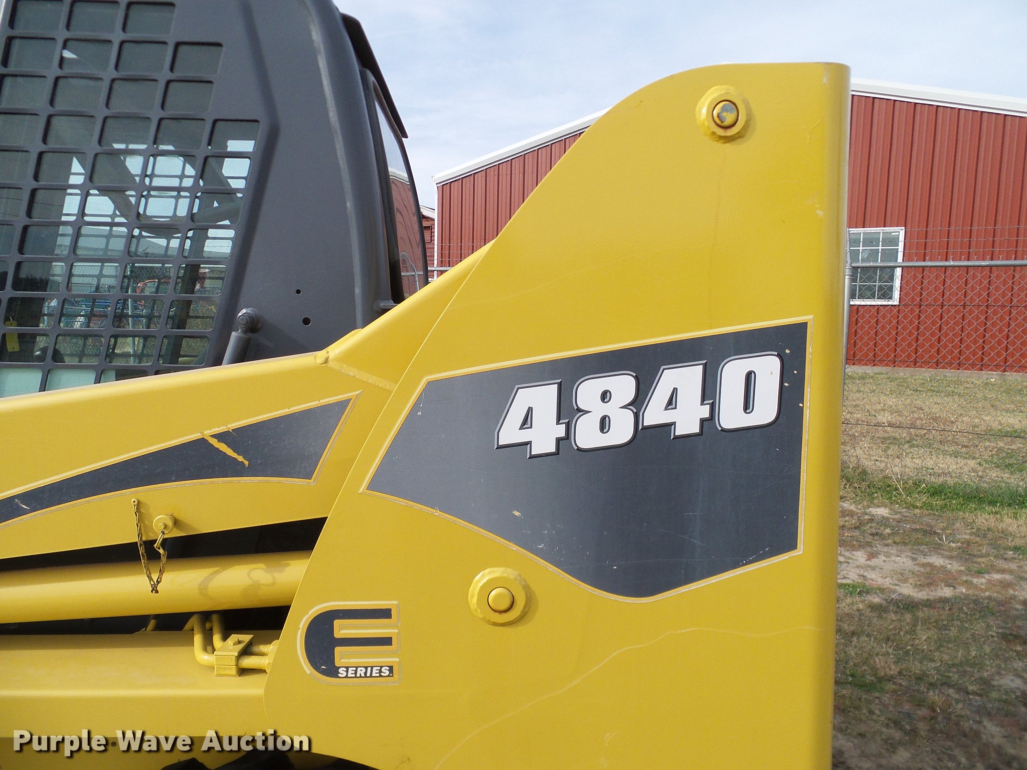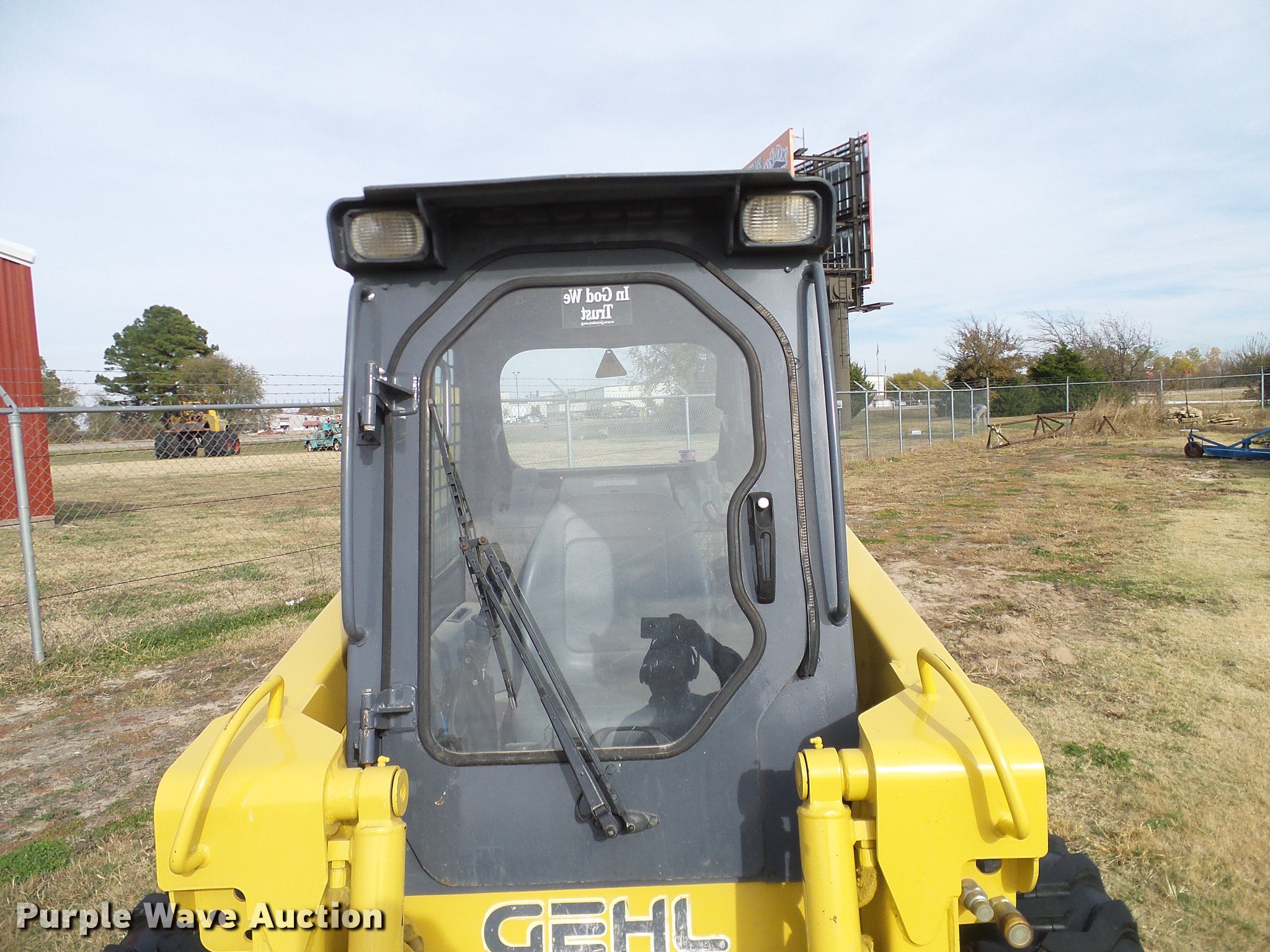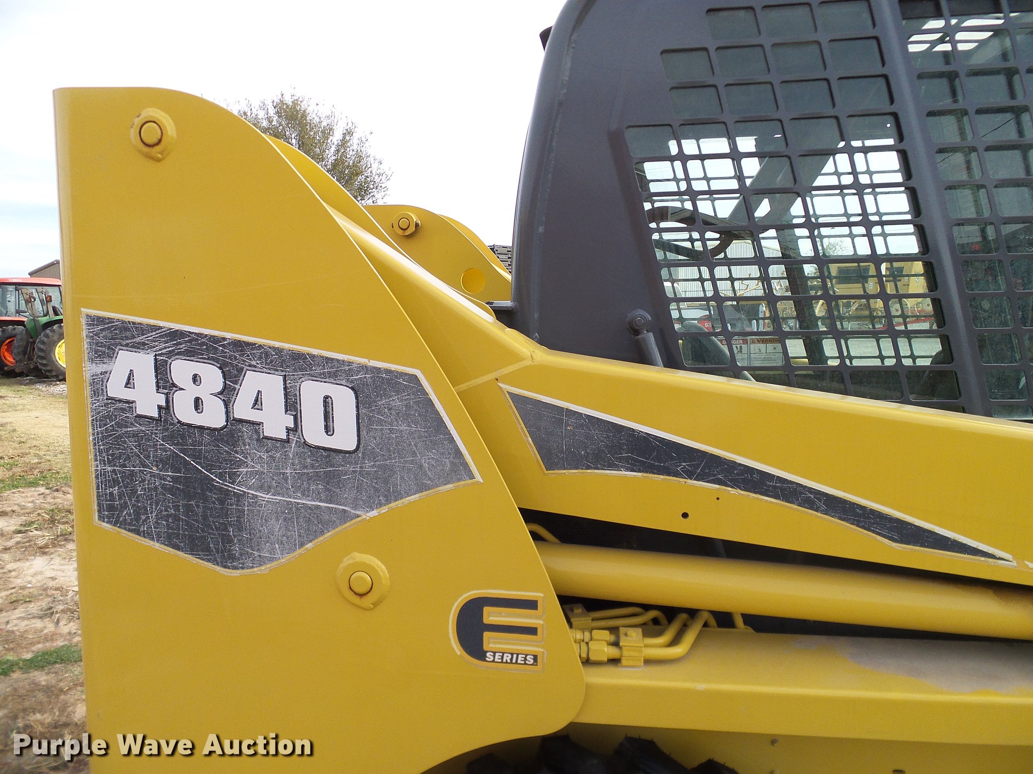 Purple Wave is selling a used Skid Steer Loader in Oklahoma. This item is a 2005 Gehl 4840E skid steer with the following: 1,027 hours on meter, Deutz F4M2011 four cylinder diesel engine, 60 HP, Serial 10054317, Hydrostatic transmission, Enclosed cab, AC and heat, AM/FM, Hand and foot controls, Front and rear work lights, Wipers, Auxiliary hydraulics, Manual quick coupler, 73"W bucket, Carlisle 12-16.5 tires, Serial GHL04840H00408789