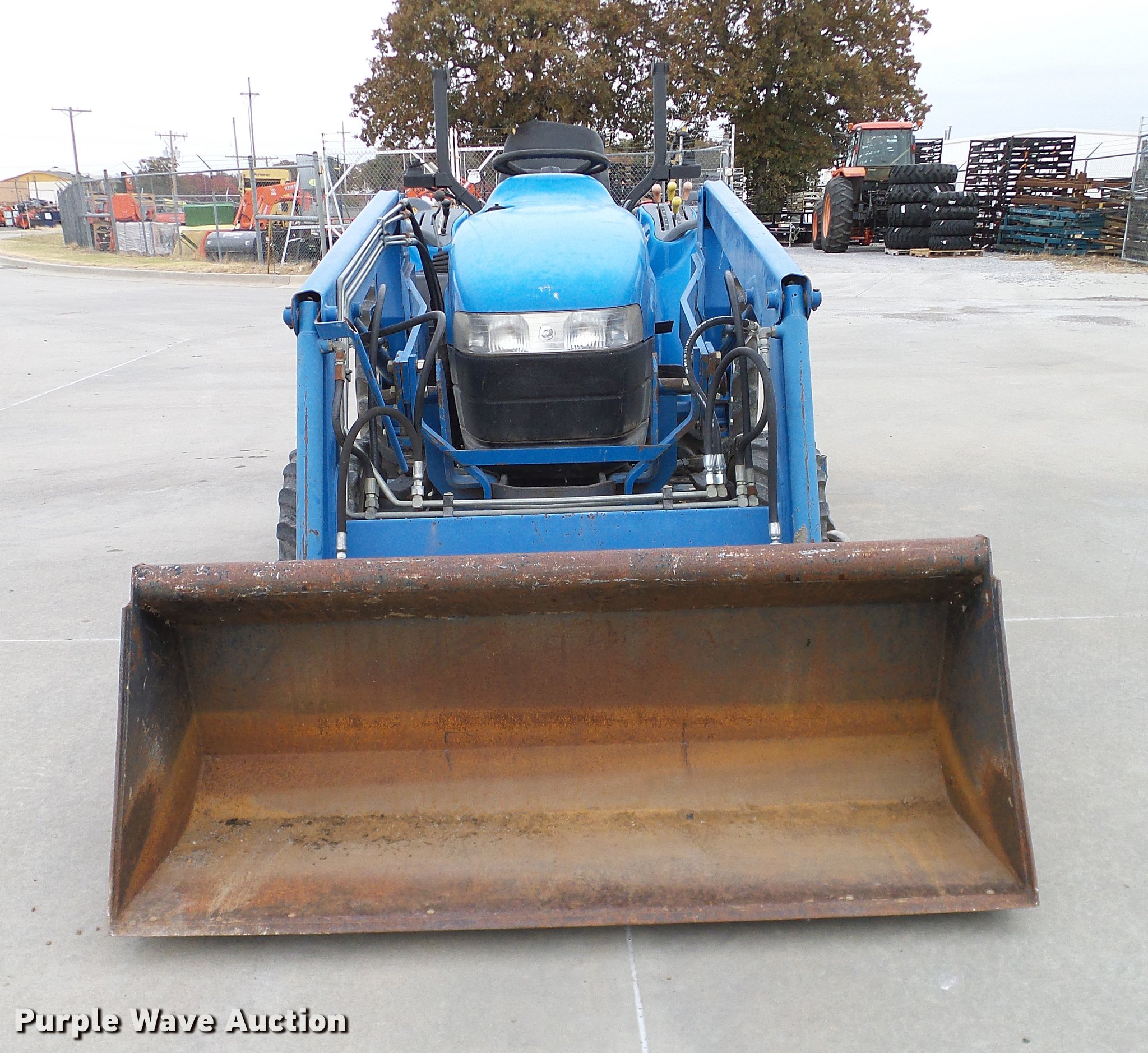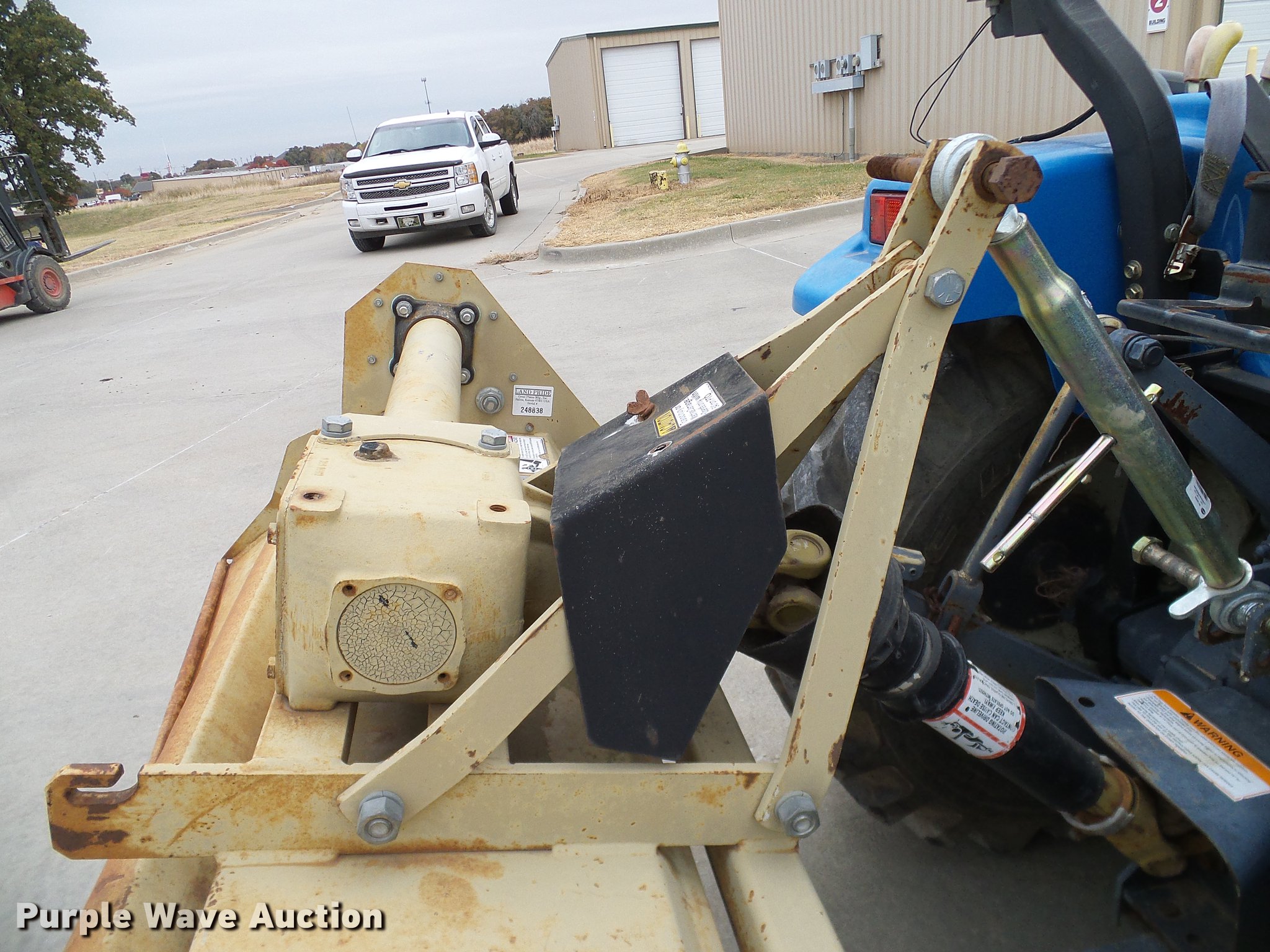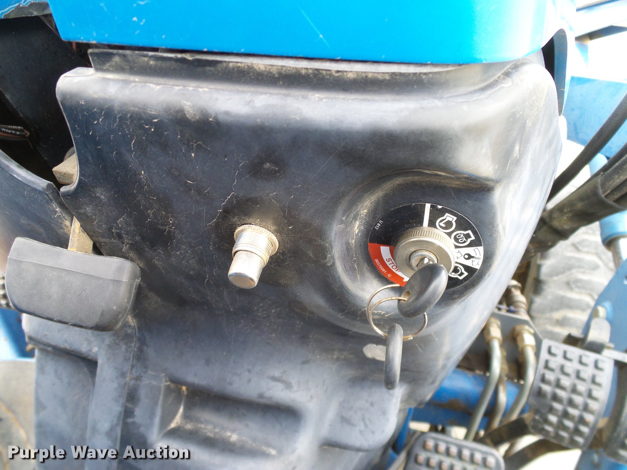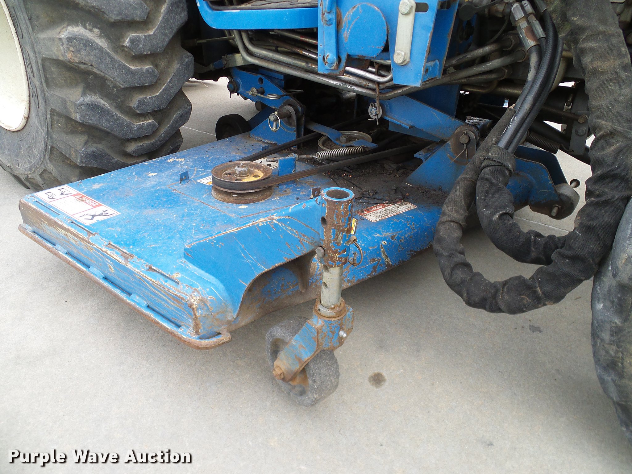 Purple Wave is selling a used Tractor in Oklahoma. This item is a 1999 New Holland TC29D Deluxe MFWD tractor with the following: 1,711 hours on meter, Shibura 1.3L three cylinder diesel engine, 29 HP, Serial 61379, Hydrostatic transmission, 3F-3R gears, Differential lock, Tilt steering wheel, Suspension seat, New Holland 7308 loader, 61"W bucket, Joystick controls, Three point, Top link, 540 PTO, Work lights, Land Pride RTA1058 rototiller, 58"W, 540 PTO, Three point, 72"W mid-mounted mower deck, 25x8.50-14 front tires, 15x195 rear tires, Top section of ROPS missing, Serial G014007