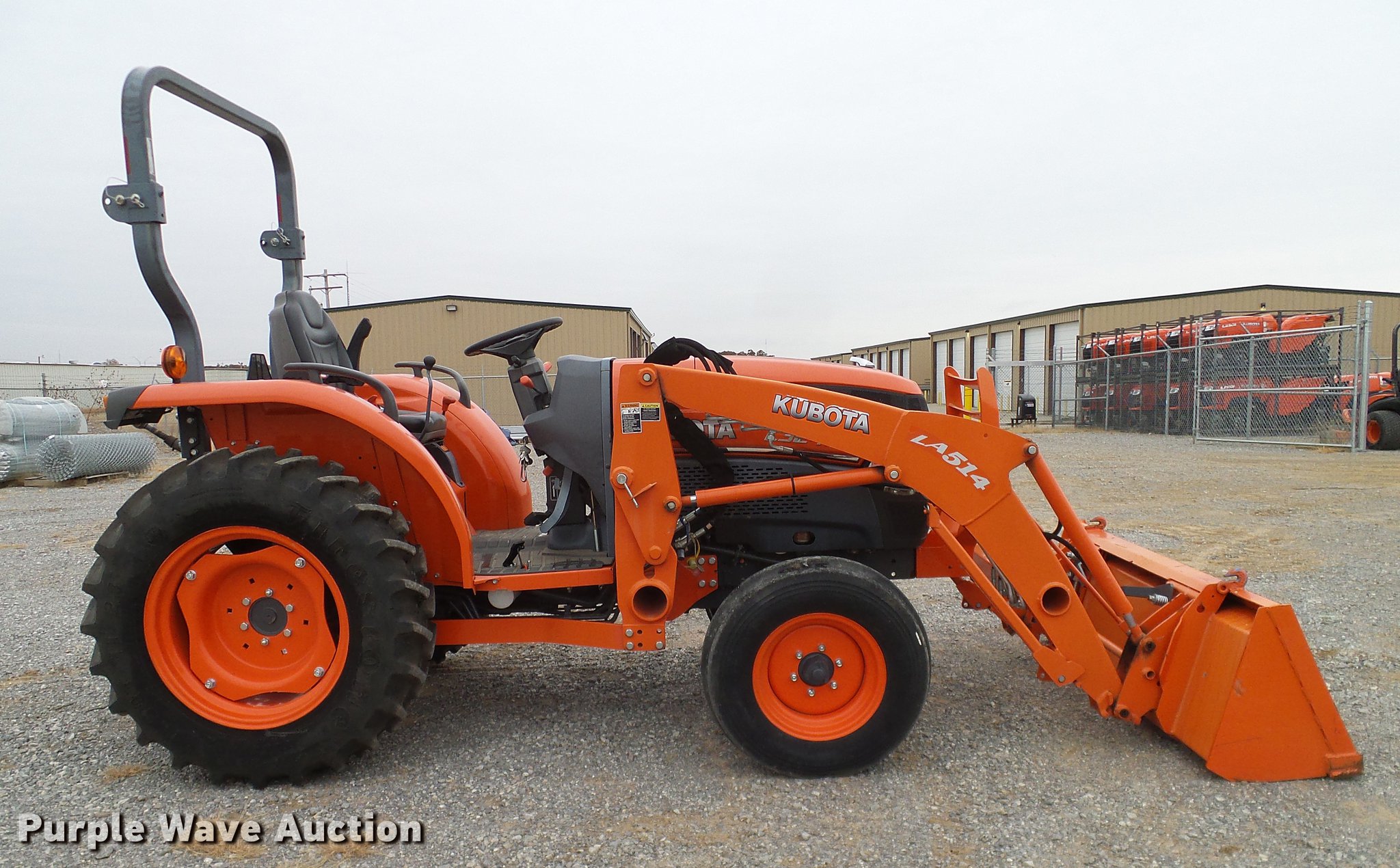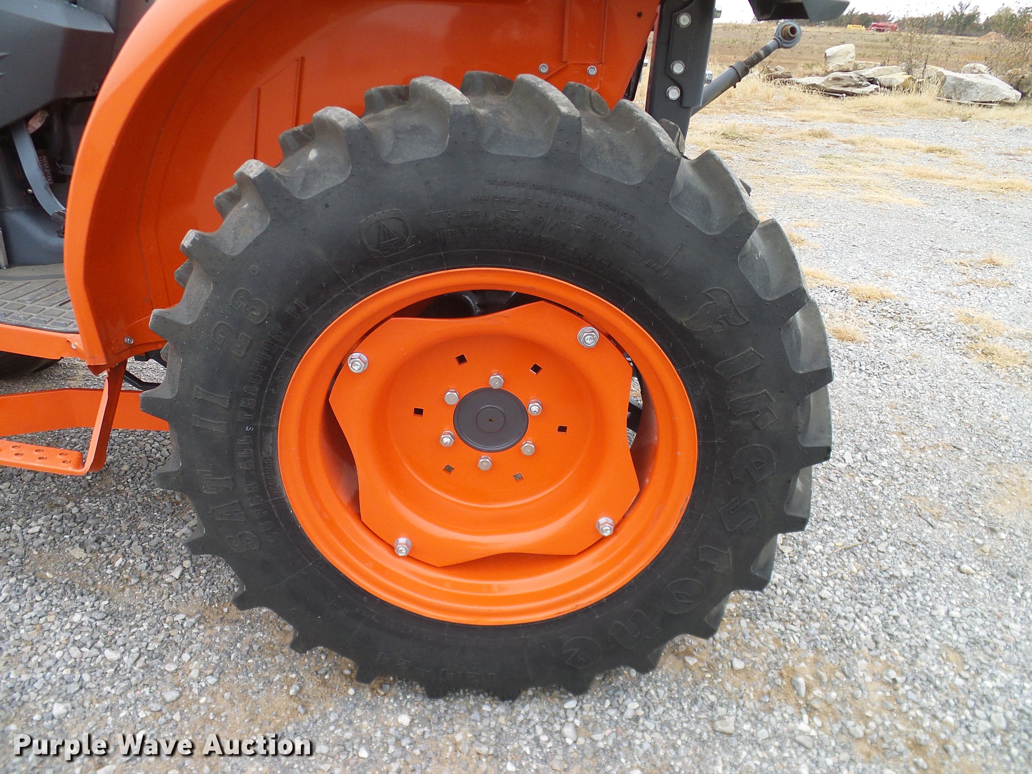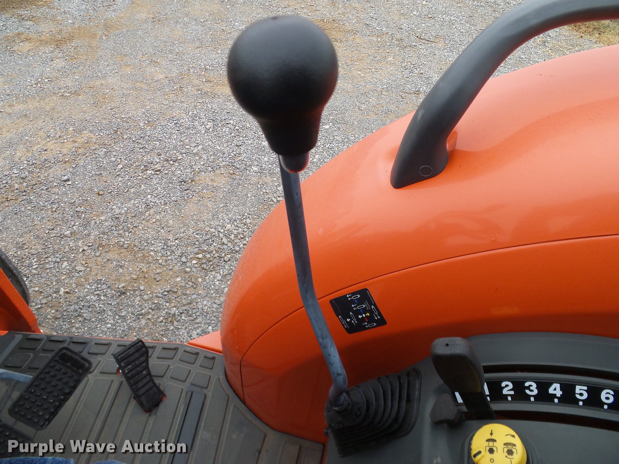 Purple Wave is selling a used Tractor in Oklahoma. This item is a 2016 Kubota L3240E tractor with the following: 59 hours on meter, Kubota 1.6L three cylinder diesel engine, 34 HP, FST Sync shuttle shift transmission, 8F-8R gears, Left-hand reverser, Differential lock, Folding ROPS, Tilt steering wheel, Suspension seat, Kubota LA514 loader, Bucket, Quick attach, Joystick controls, Three point, Top link, 540 PTO, Draw bar, Work lights, 7.5L-15 front tires, 12.4-24 rear tires, 71" wheelbase, Serial 40027
