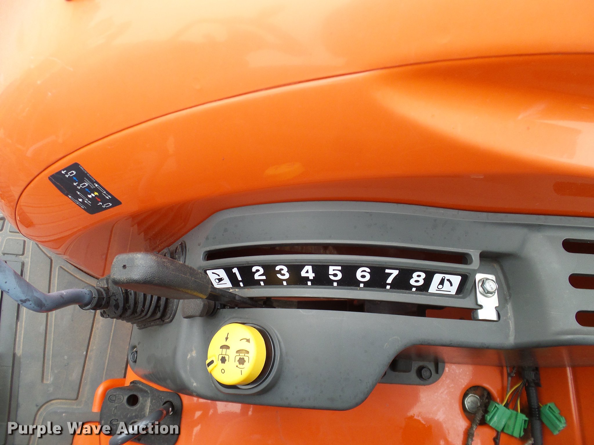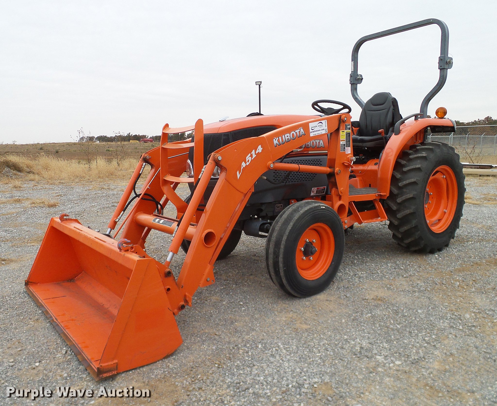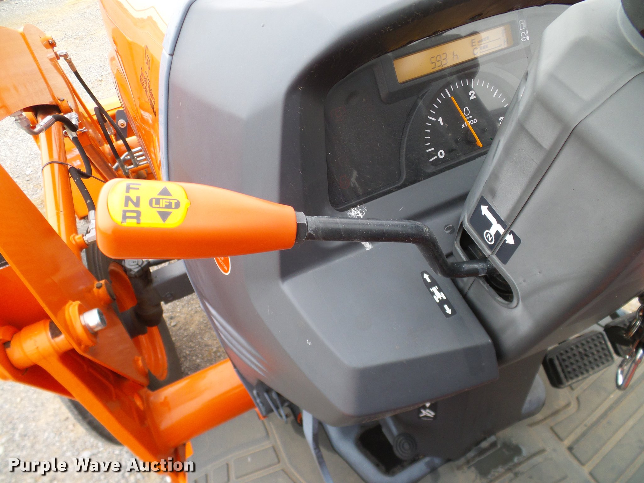 Purple Wave is selling a used Tractor in Oklahoma. This item is a 2016 Kubota L3240E tractor with the following: 59 hours on meter, Kubota 1.6L three cylinder diesel engine, 34 HP, FST Sync shuttle shift transmission, 8F-8R gears, Left-hand reverser, Differential lock, Folding ROPS, Tilt steering wheel, Suspension seat, Kubota LA514 loader, Bucket, Quick attach, Joystick controls, Three point, Top link, 540 PTO, Draw bar, Work lights, 7.5L-15 front tires, 12.4-24 rear tires, 71" wheelbase, Serial 40027