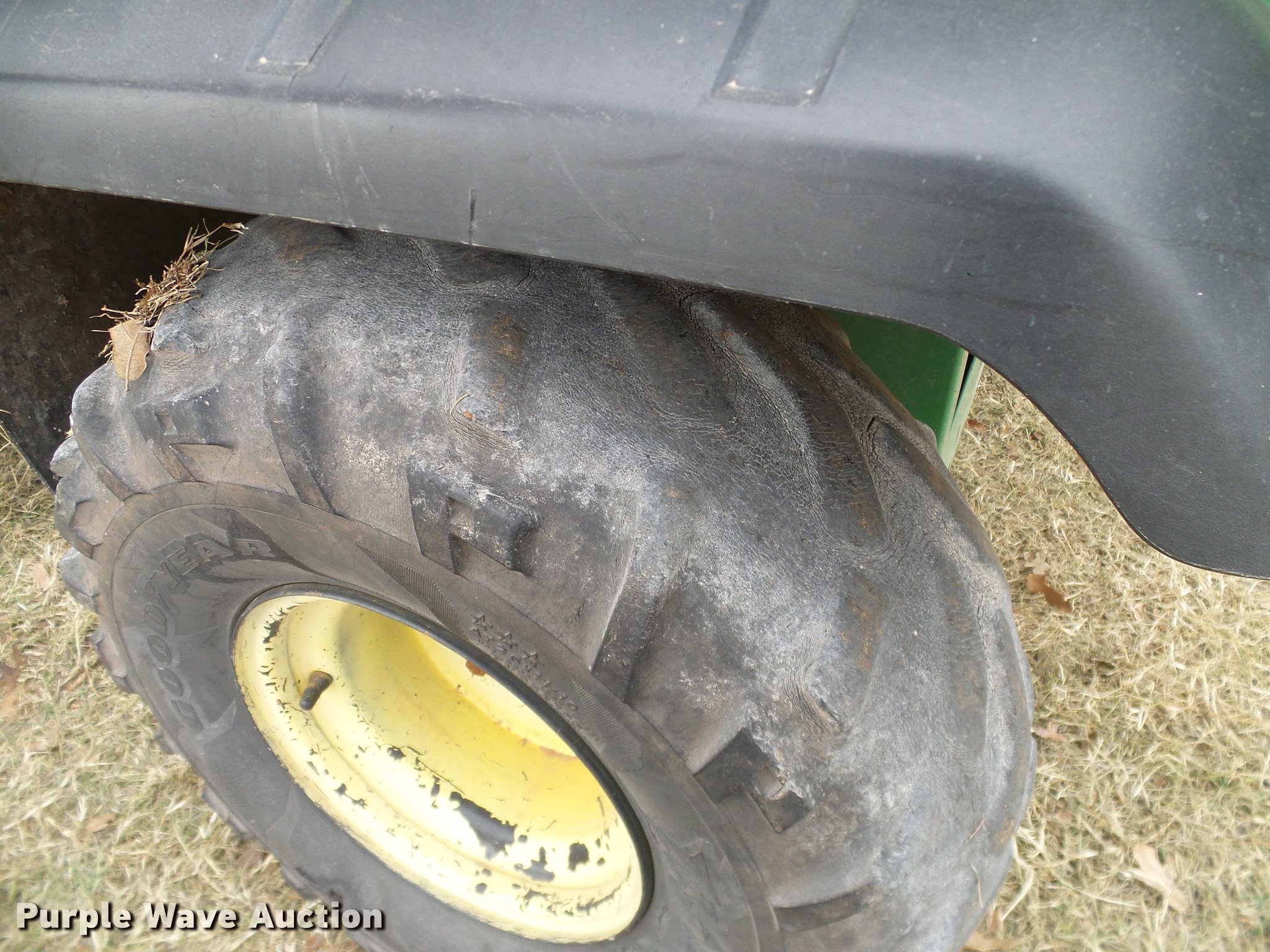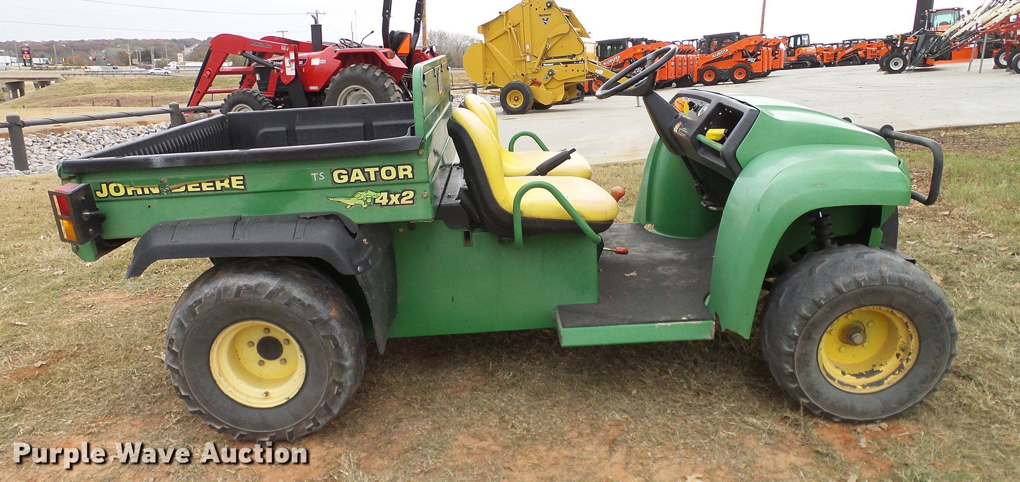 Purple Wave is selling a used Utility Vehicle in Oklahoma. This item is a 2001 John Deere 4X2 Gator utility vehicle with the following: 3,210 hours on meter, Single cylinder gas engine, 1F-1R gears, Grill guard, 42"L x 52"W dump bed, Manual dump, Plastic bed liner, Rear pin hitch, 22x11-10 front tires, 25x11-10 rear tires