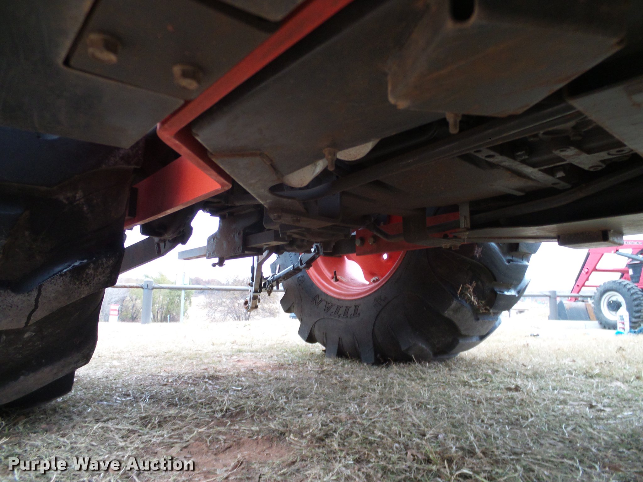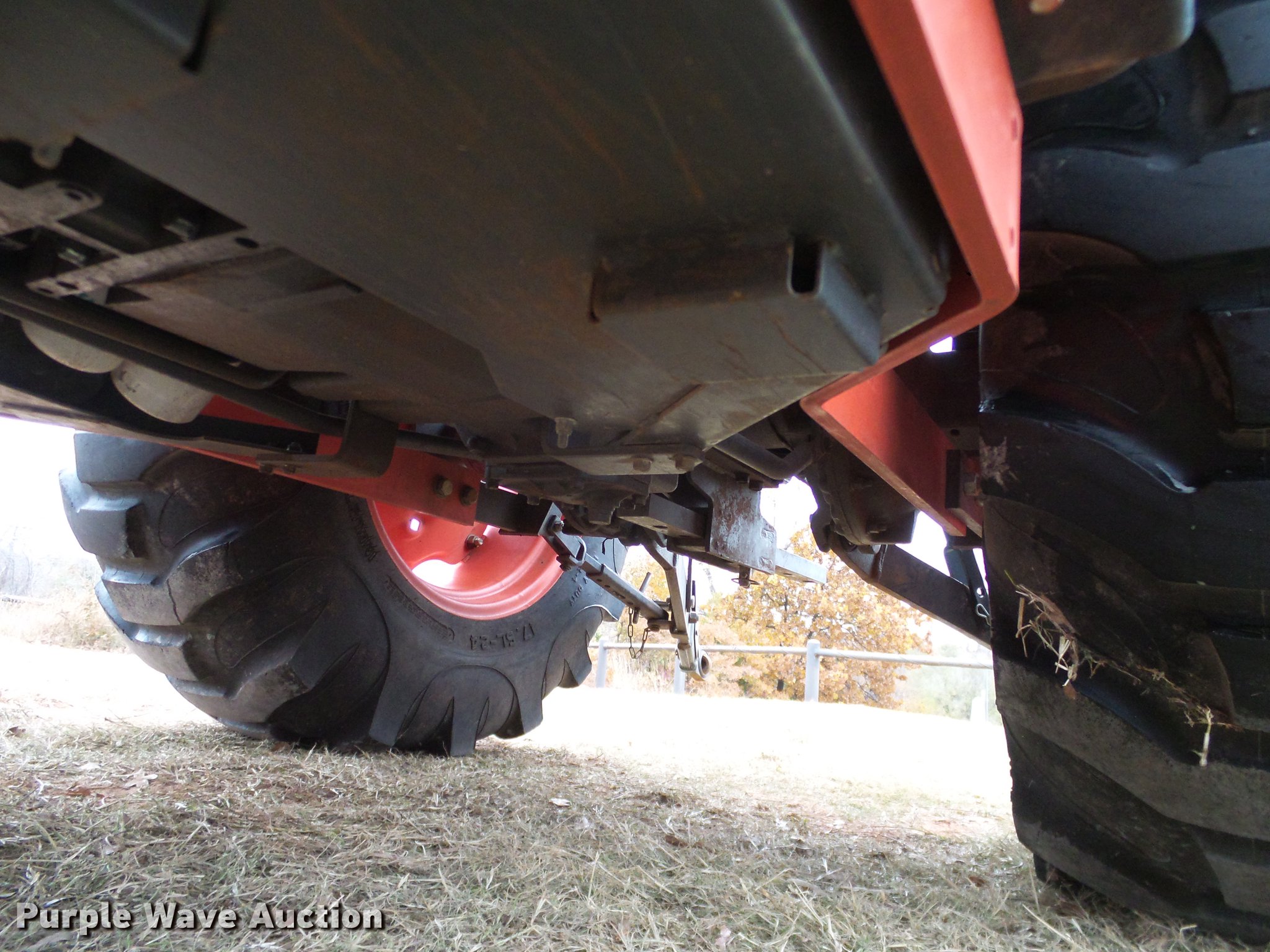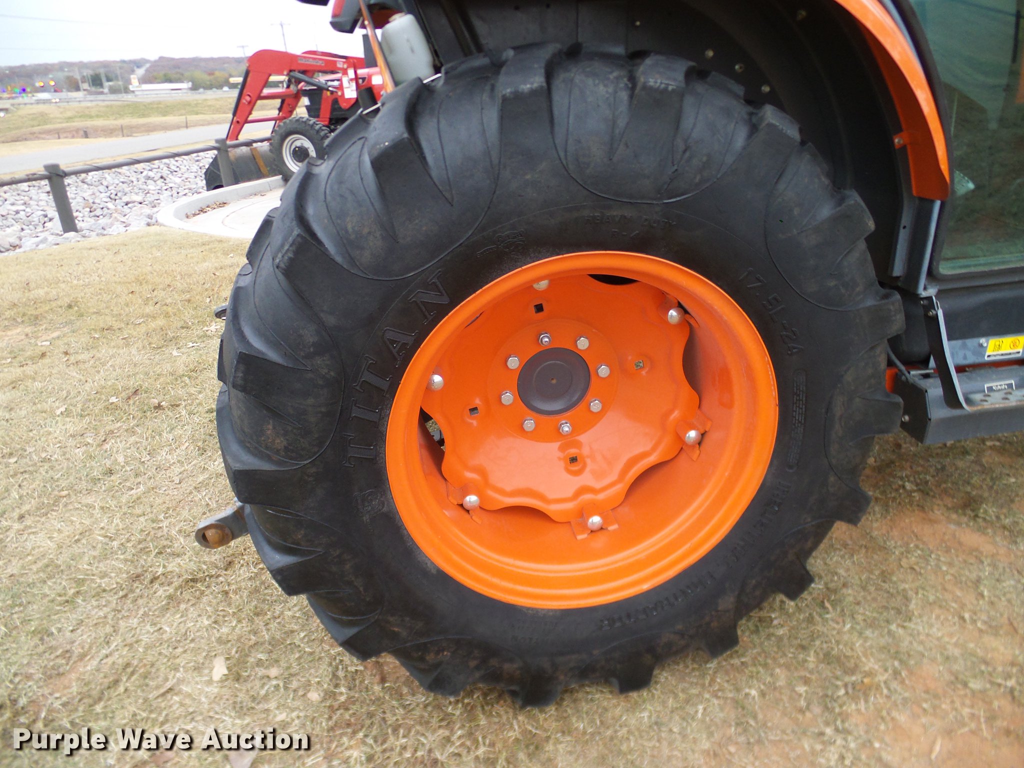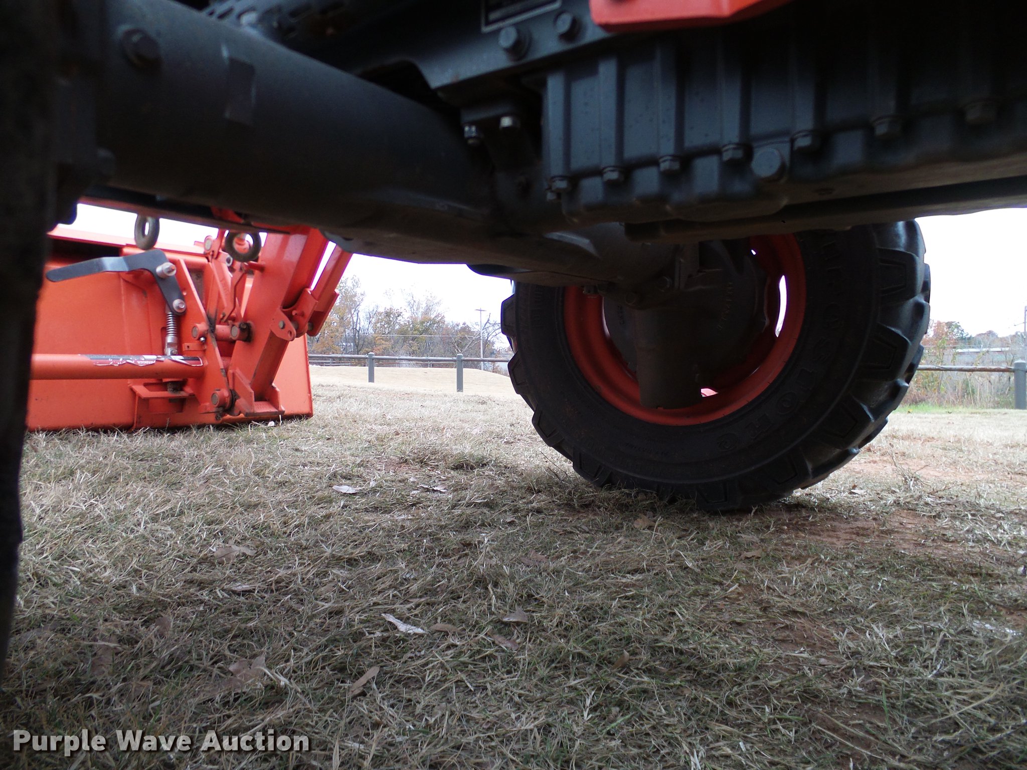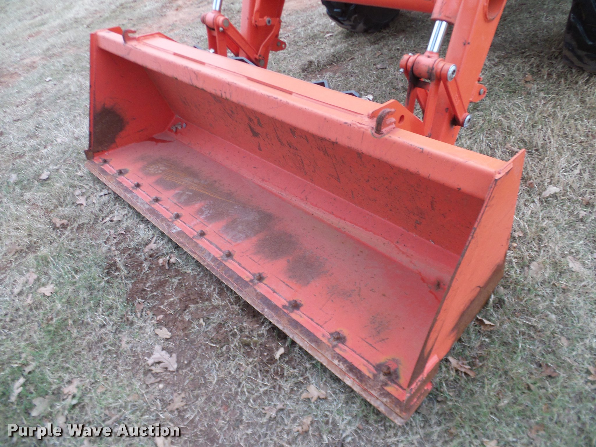 Purple Wave is selling a used Tractor in Oklahoma. This item is a 2014 Kubota L5460HSTC MFWD tractor with the following: 1,867 hours on meter, Kubota 2.4L four cylinder turbo diesel engine, 54 HP, HST Plus hydrostatic transmission, 3F-3R gears, Differential lock, AC and heat, Tilt steering wheel, AM/FM/CD, Air suspension seat, Kubota LA1055 loader, 72"W bucket, Quick attach, Joystick controls, Auxiliary loader hydraulics, Three point, Top link, Draw bar, 540 PTO, (3) rear hydraulic remotes, 265/70R16.5 front tires, 17.5-24 rear tires, 74" wheel base, Serial 400132
