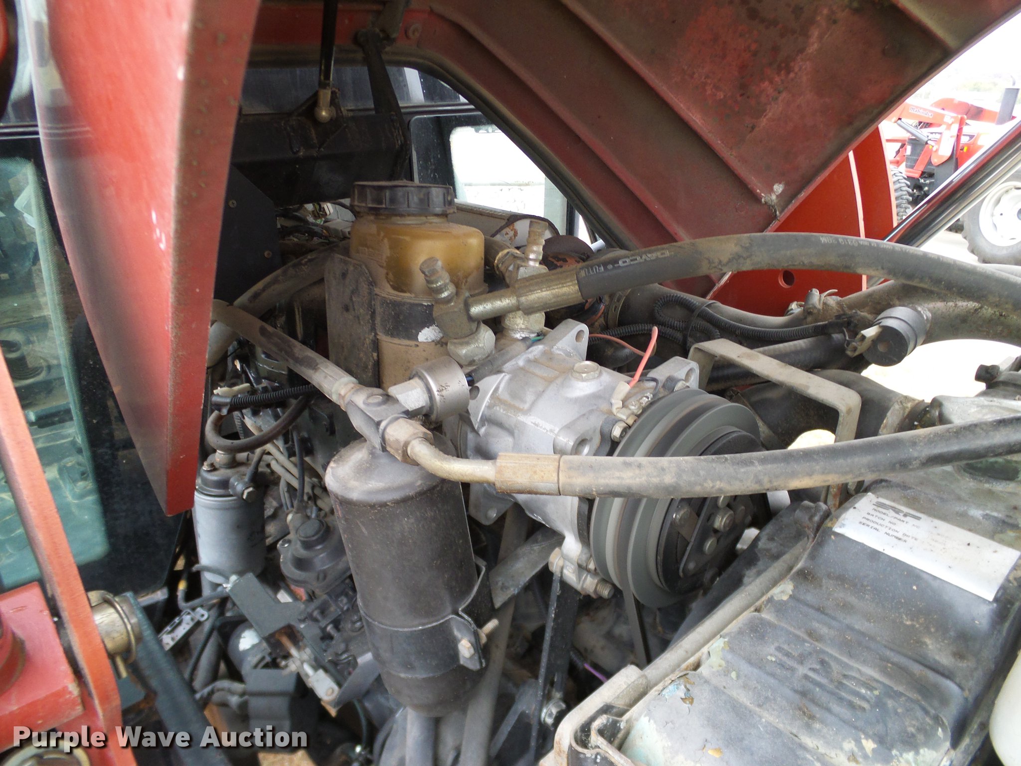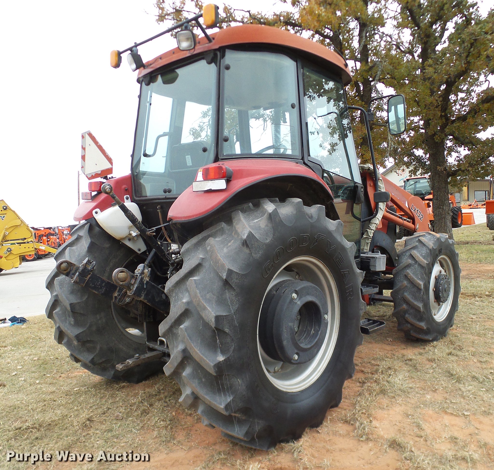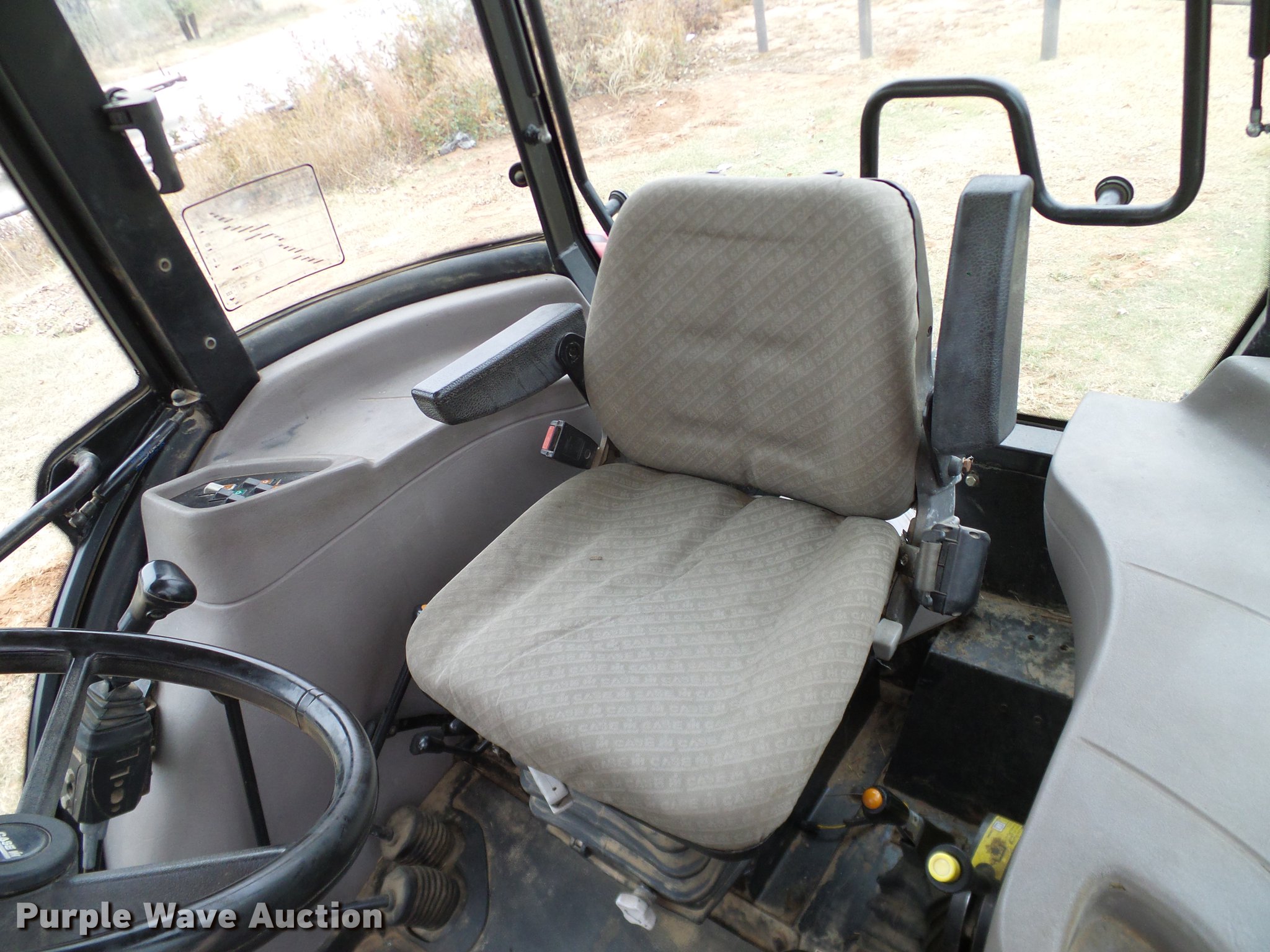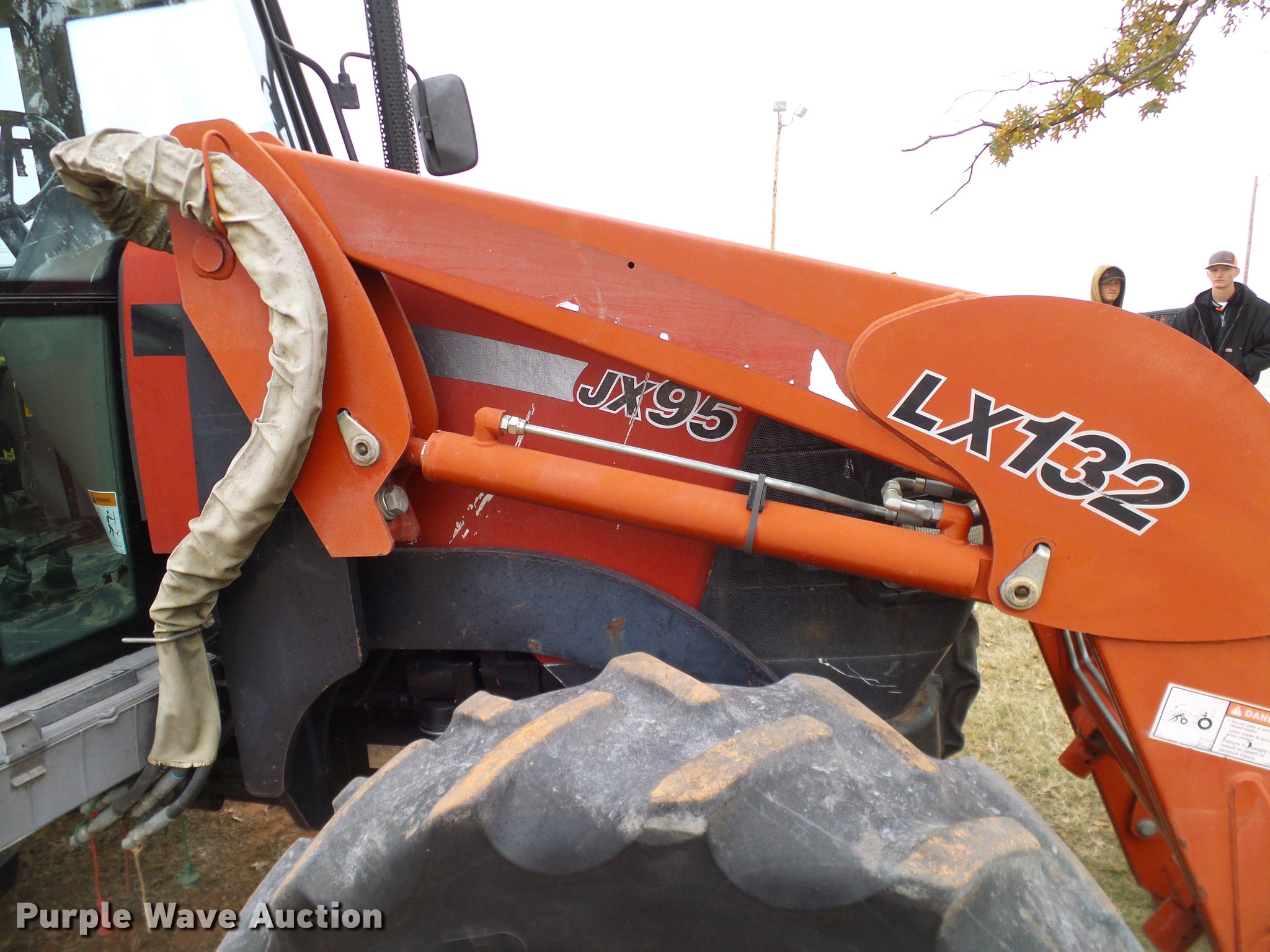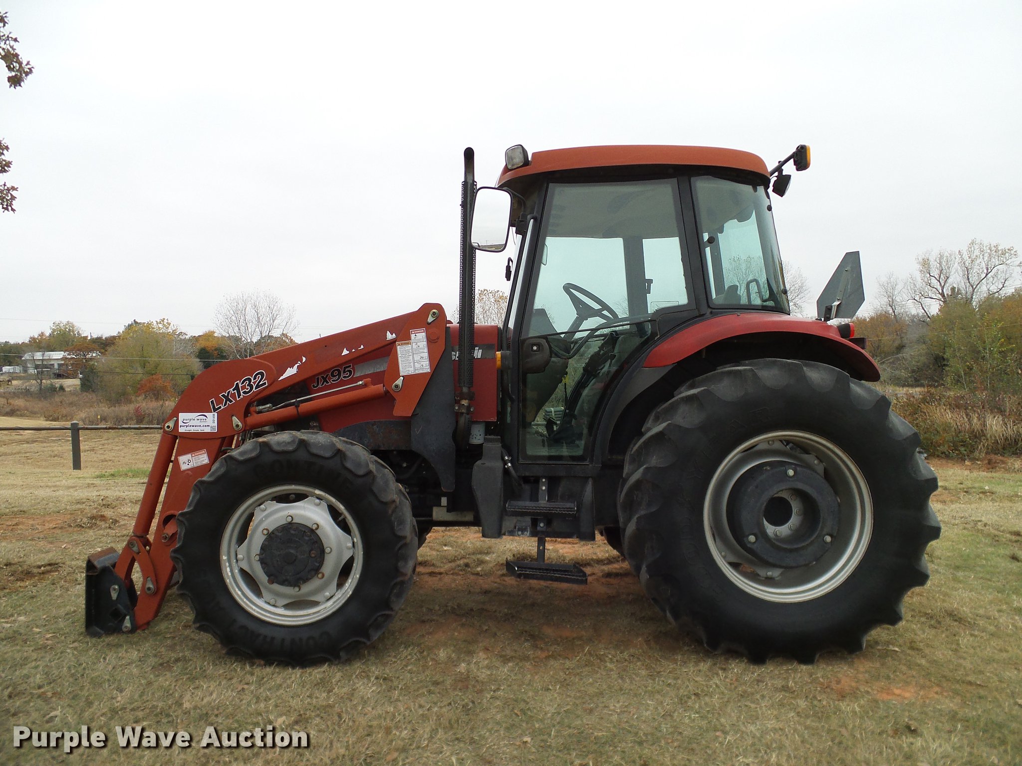 Purple Wave is selling a used Tractor in Oklahoma. This item is a 2004 Case IH JX95 MFWD tractor with the following: 2,060 hours on meter, Iveco 3.9L four cylinder turbo diesel engine, 93 HP, Mechanical shuttle shift transmission, 12F-12R gears, Left-hand reverser, Differential lock, AC, Tilt steering wheel, AM/FM, Air suspension seat, Case LX132 loader, Quick attach, Joystick loader controls, Three point, Top link, Seven pin outlet, 540 PTO, Draw bar, Work lights, (2) rear hydraulic remotes, (6) wheel weights, 320/85R24 front tires, 18.4R30 rear tires, Owners manual, Cracked windshield, 92" wheel base, Serial HFJ025328