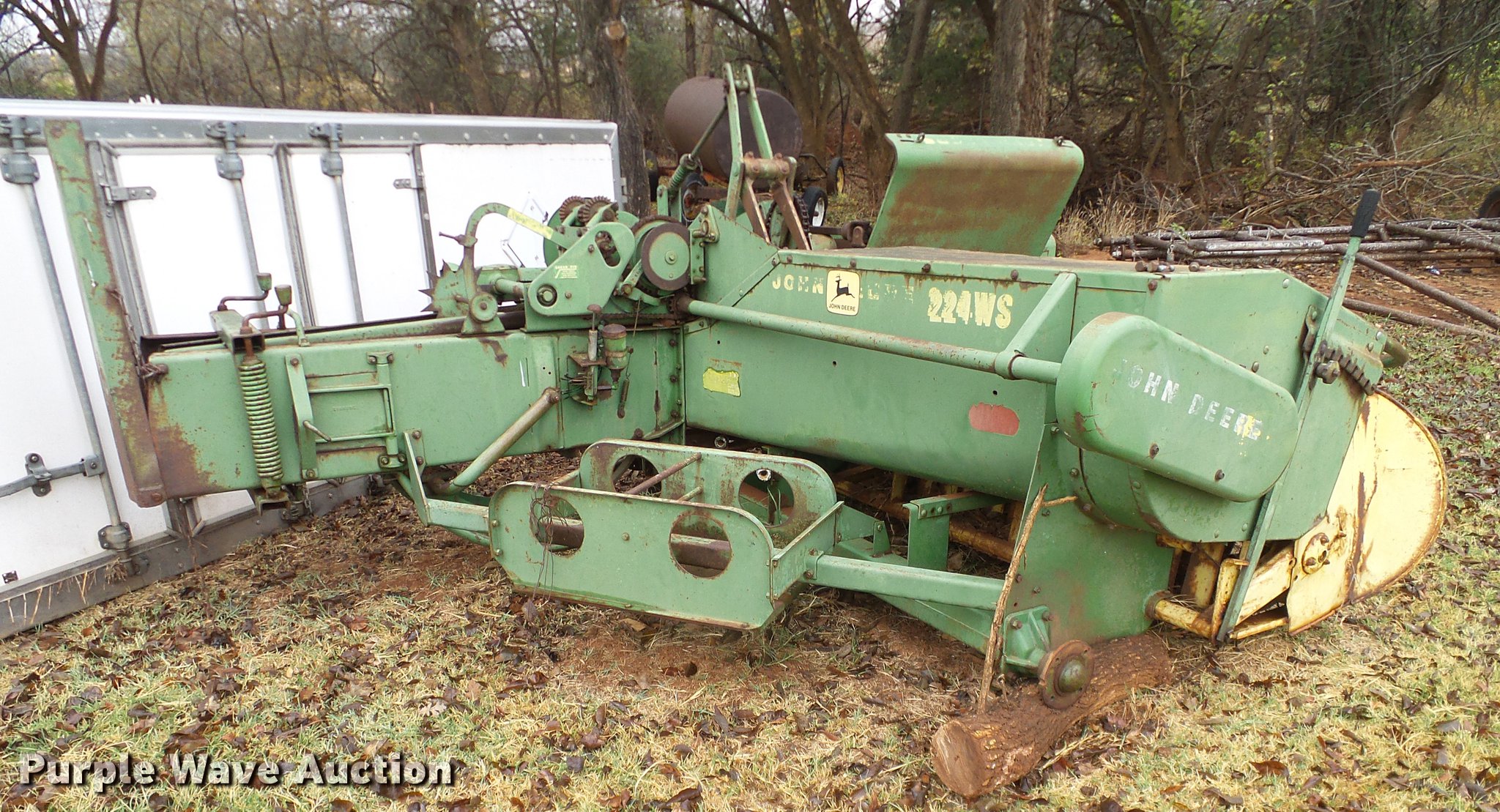 Purple Wave is selling a used Square Baler in Oklahoma. This item is a John Deere 224WS square baler with the following: 51"W pickup, Wire tire, 540 PTO, Pin hitch, Tires and wheels will be replaced prior to auction, Serial 007781