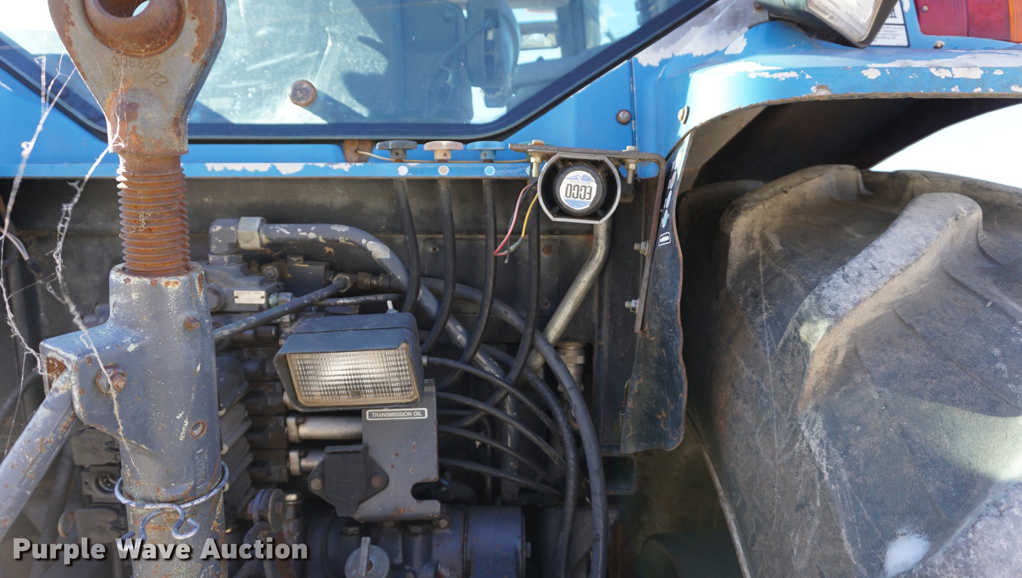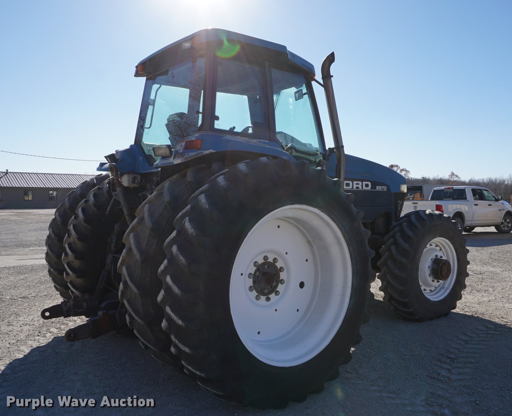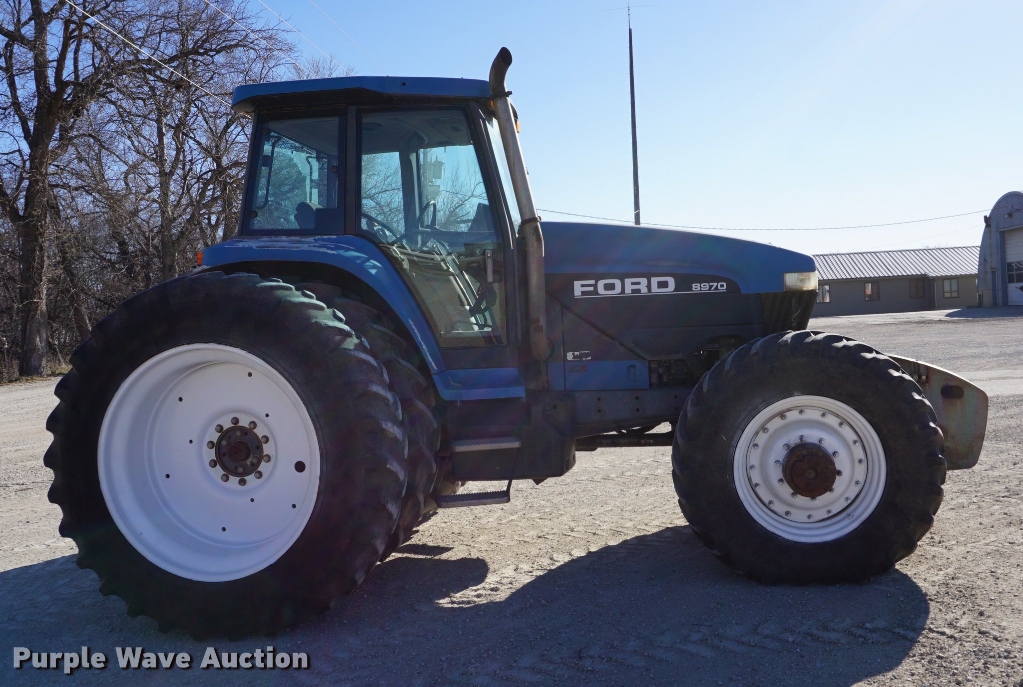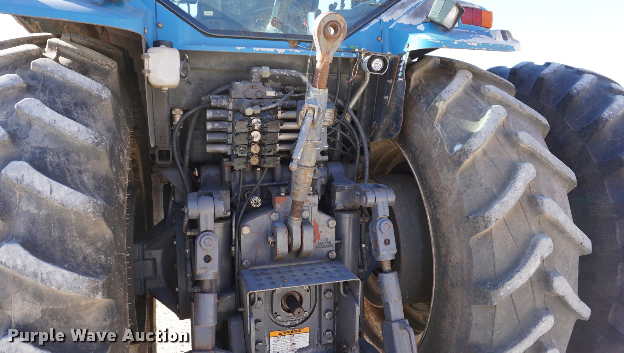 Purple Wave is selling a used Tractor in Kansas. This item is a 1995 Ford 8970 MFWD tractor with the following: 12,765 hours on meter, Ford 7.5L six cylinder turbo diesel engine, 240 HP, Powershift transmission, 16F-8R gears, AC and heat, Tilt steering wheel, AM/FM, Suspension seat, Three point, Top link, Seven pin outlet, Large 1000 PTO, (4) rear hydraulic remote set, (16) suitcase weights, 110 kg, 16.9R30 front tires, 18.4R46 dual rear tires, Serial D404215, Unit# TC-26