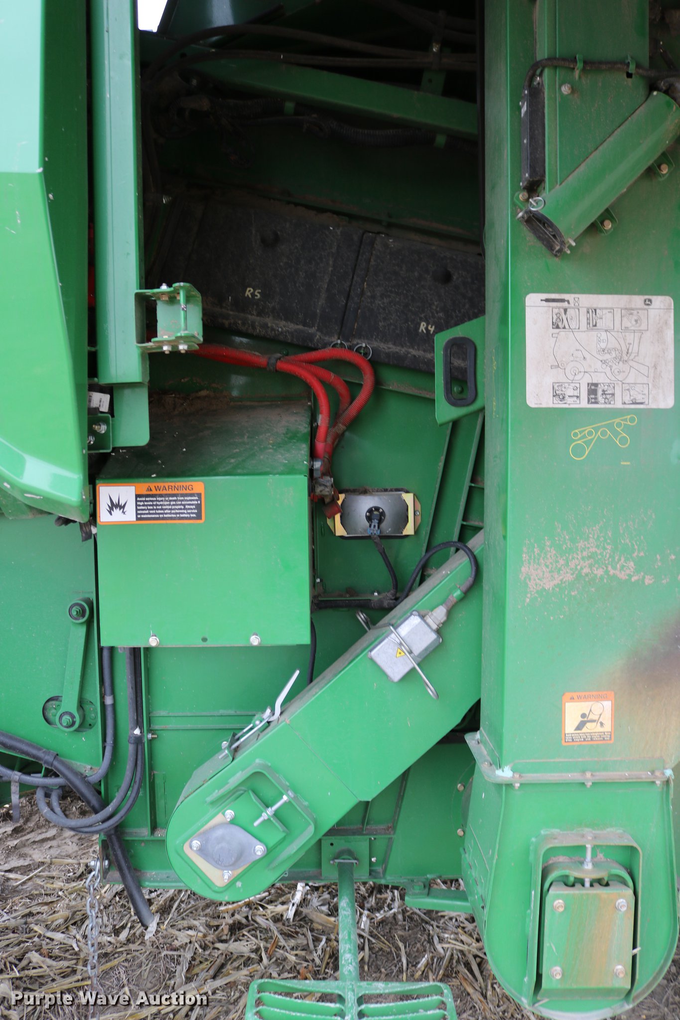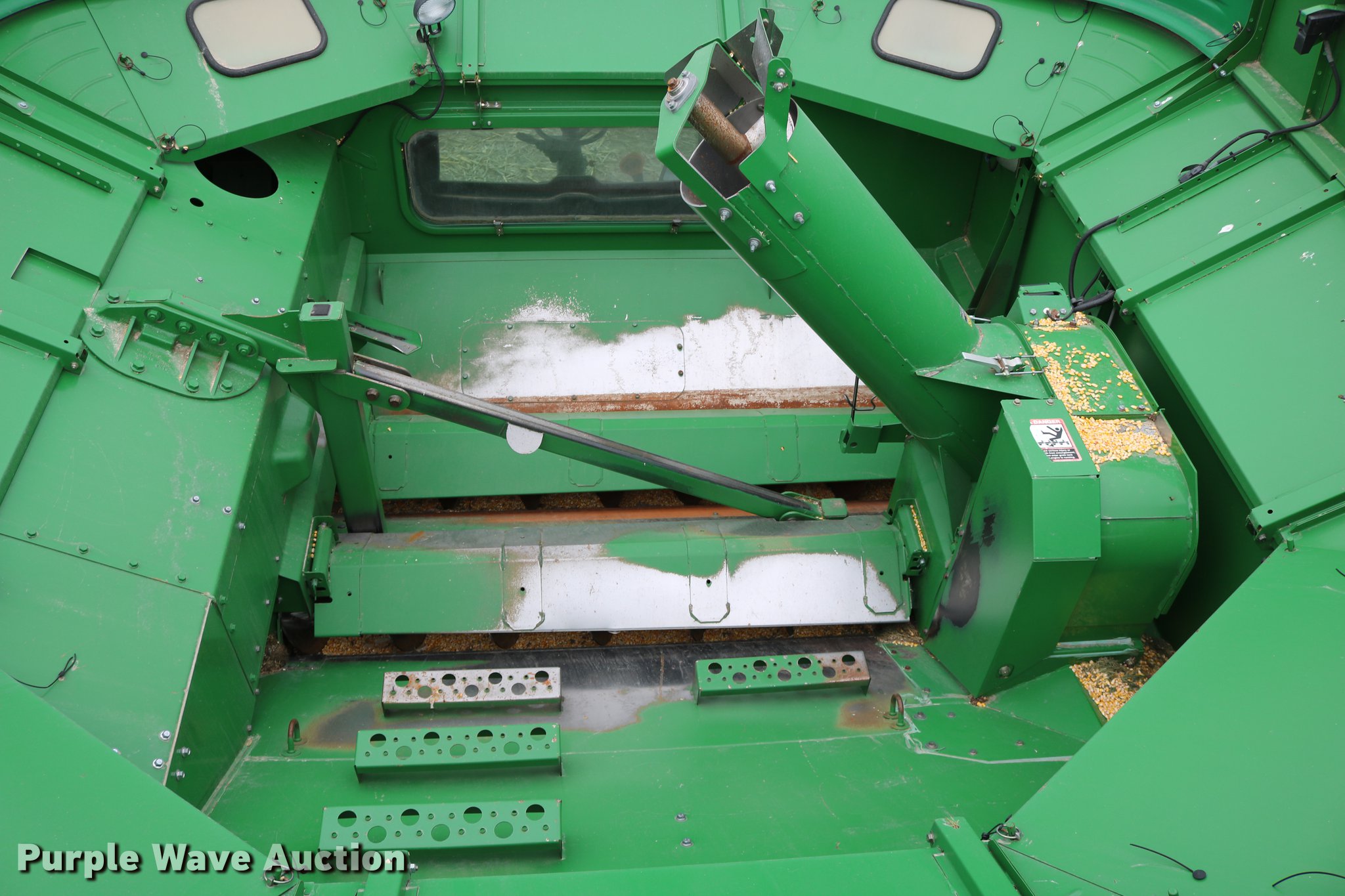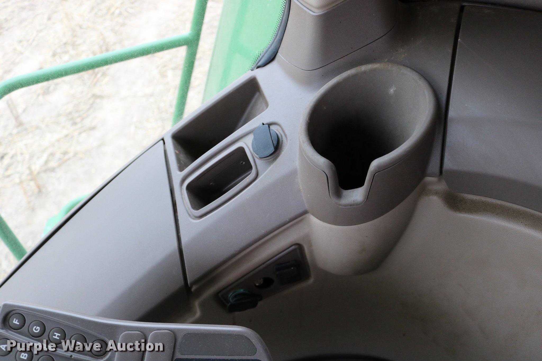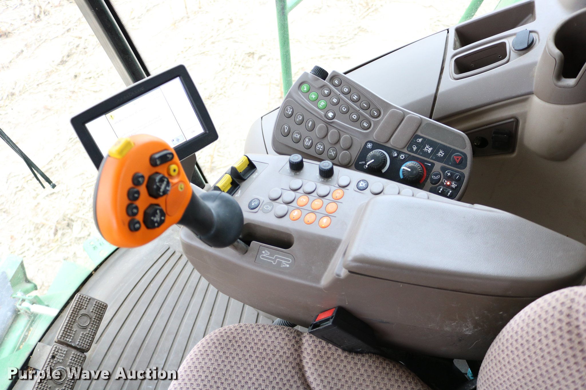Purple Wave is selling a used Combine in Kansas. This item is a 2013 John Deere S670 STS combine with the following: 1,434 engine hours on meter, 979 separator hours on meter, John Deere 9.0L six cylinder turbo diesel engine, ProDrive hydrostatic transmission, 3F-1R gears, Feederhouse, Lateral tilt, Variable speed, Reverser, Custom cutter extended wear package, Single point header coupler, AC and heat, Tilt steering wheel, AM/FM, Suspension seat, Instructor's seat, Visor, GreenStar ready, Yield monitor, Round concaves, Two speed rotor, Chaff spreader, Straw chopper, Power tailboard, Maurer bin extensions, 25' unloading auger length, S-series cleaning shoe, Work lights, 800/70R38 front tires, 480/70R30 rear tires, Operators manual, Serial 1H0S670SHD0756635, Unit# 3