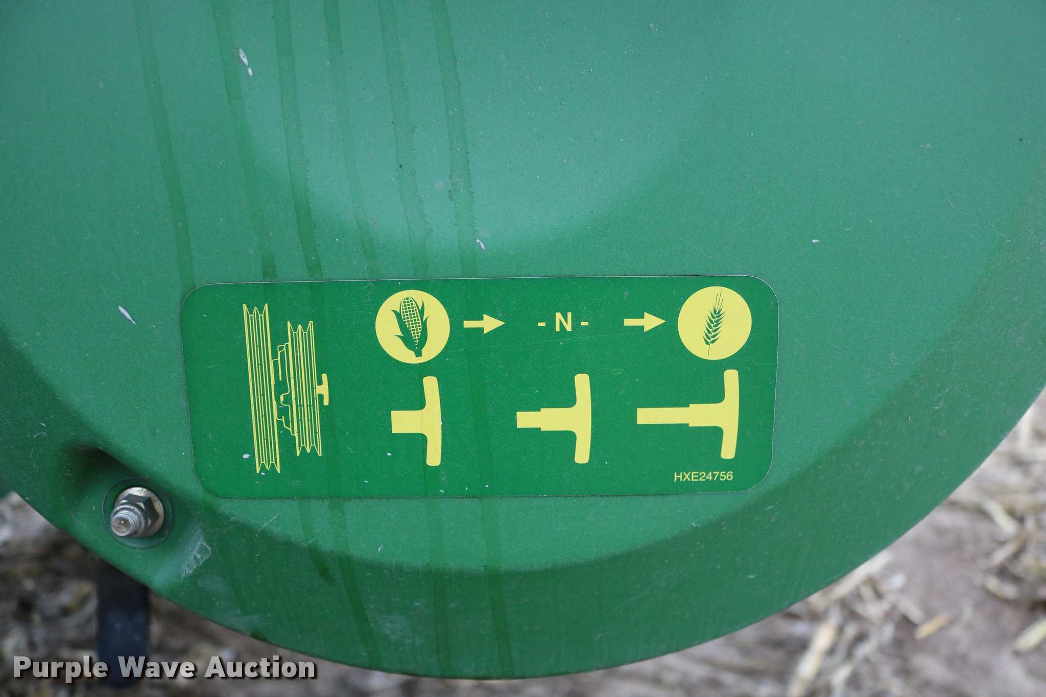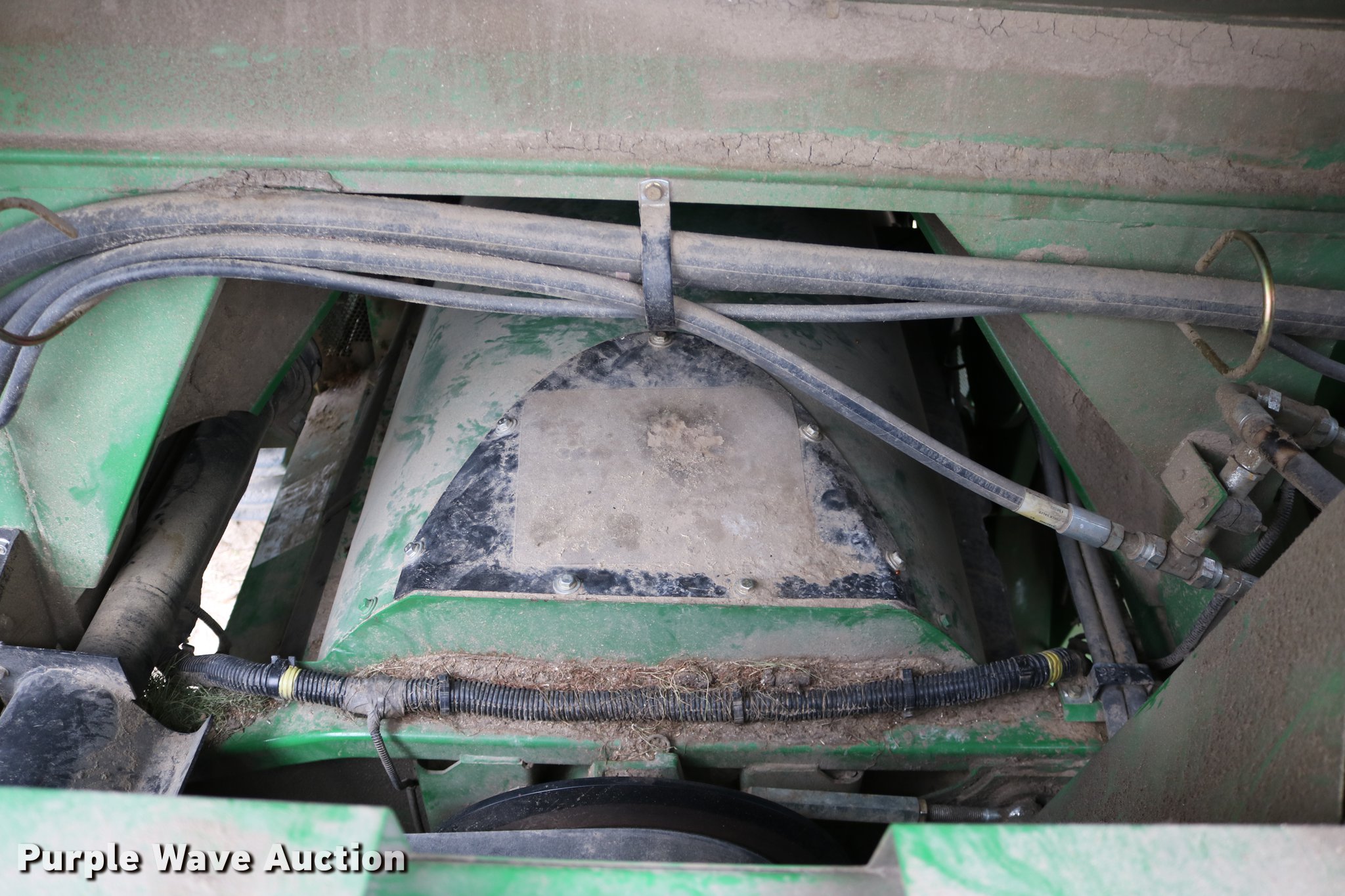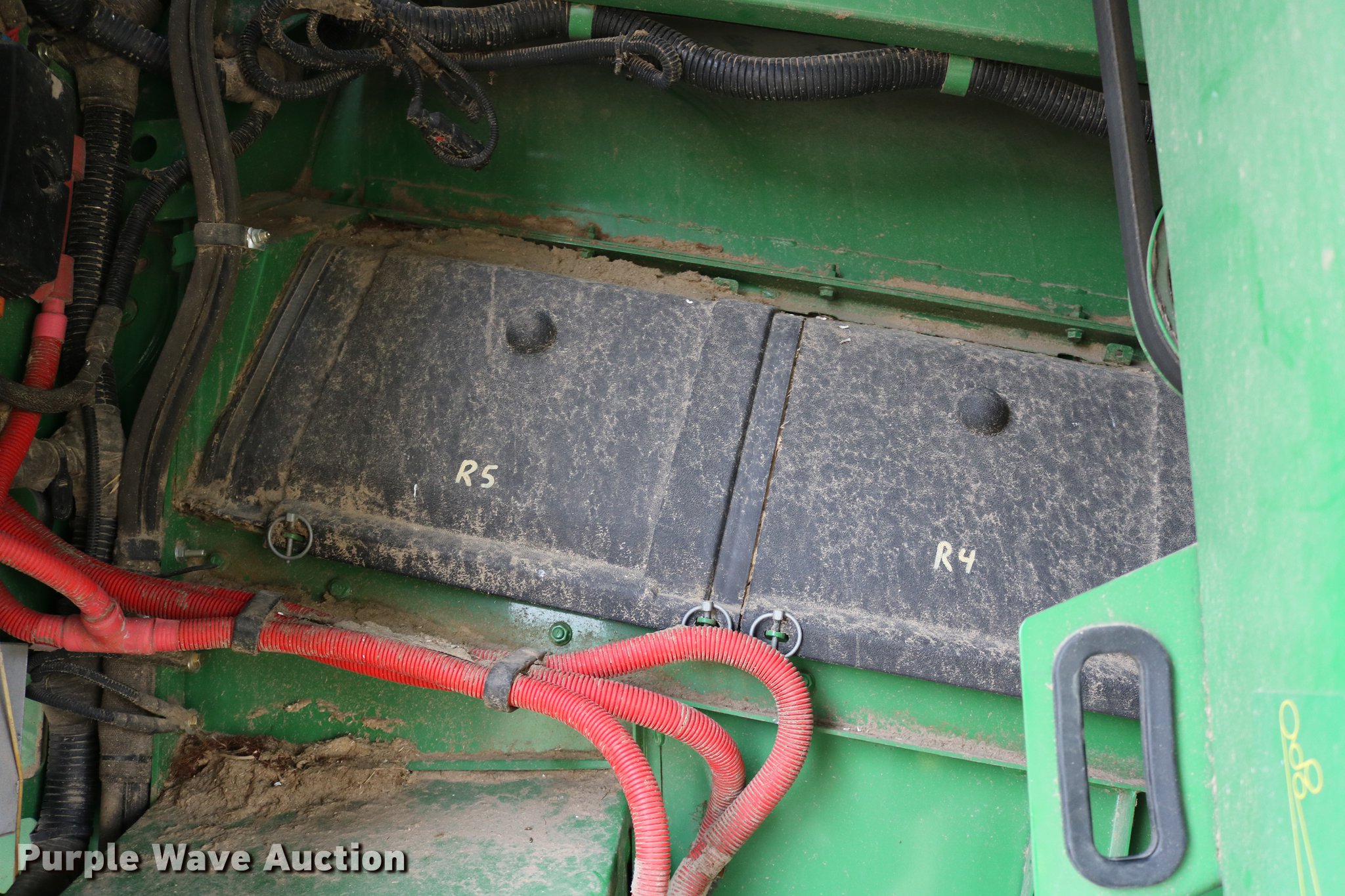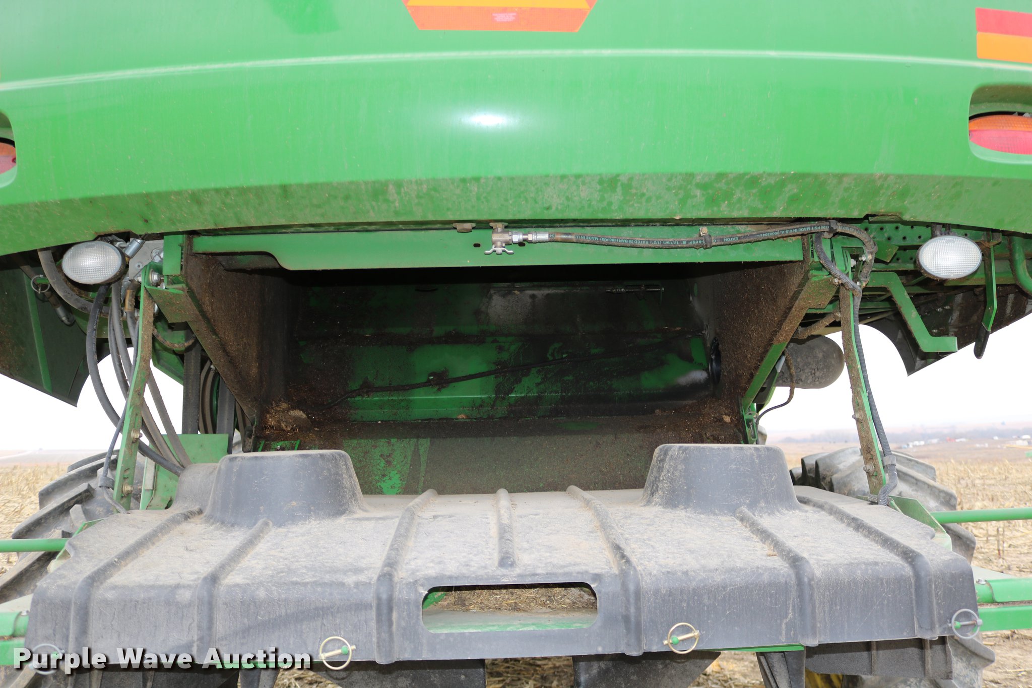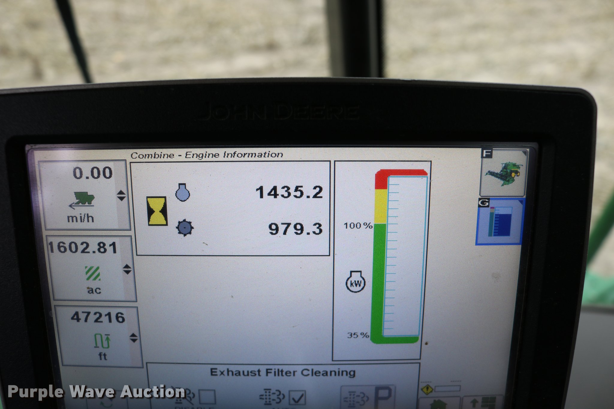 Purple Wave is selling a used Combine in Kansas. This item is a 2013 John Deere S670 STS combine with the following: 1,434 engine hours on meter, 979 separator hours on meter, John Deere 9.0L six cylinder turbo diesel engine, ProDrive hydrostatic transmission, 3F-1R gears, Feederhouse, Lateral tilt, Variable speed, Reverser, Custom cutter extended wear package, Single point header coupler, AC and heat, Tilt steering wheel, AM/FM, Suspension seat, Instructor's seat, Visor, GreenStar ready, Yield monitor, Round concaves, Two speed rotor, Chaff spreader, Straw chopper, Power tailboard, Maurer bin extensions, 25' unloading auger length, S-series cleaning shoe, Work lights, 800/70R38 front tires, 480/70R30 rear tires, Operators manual, Serial 1H0S670SHD0756635, Unit# 3