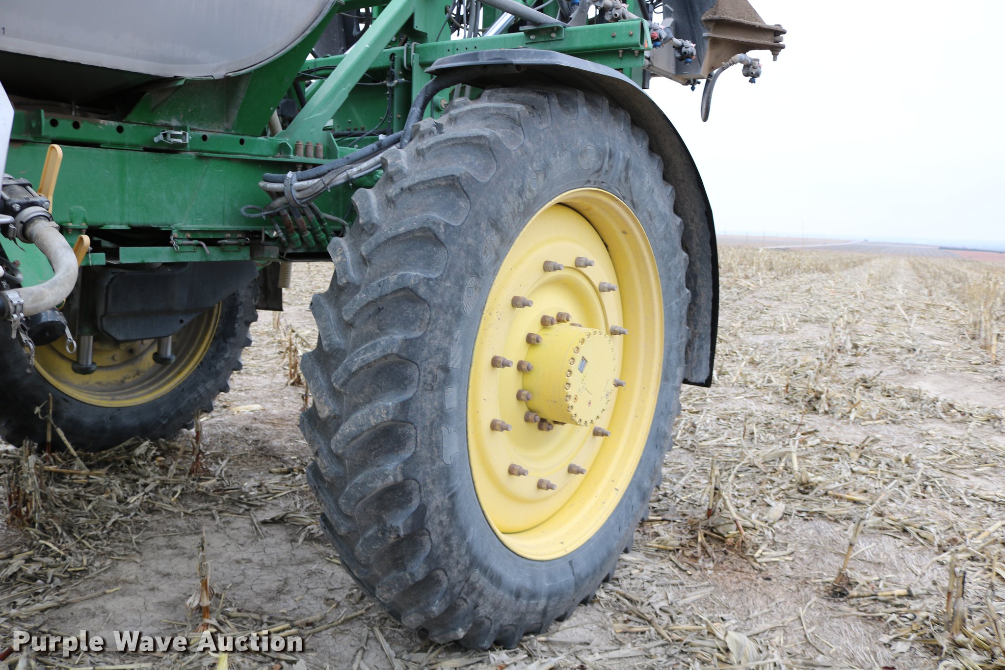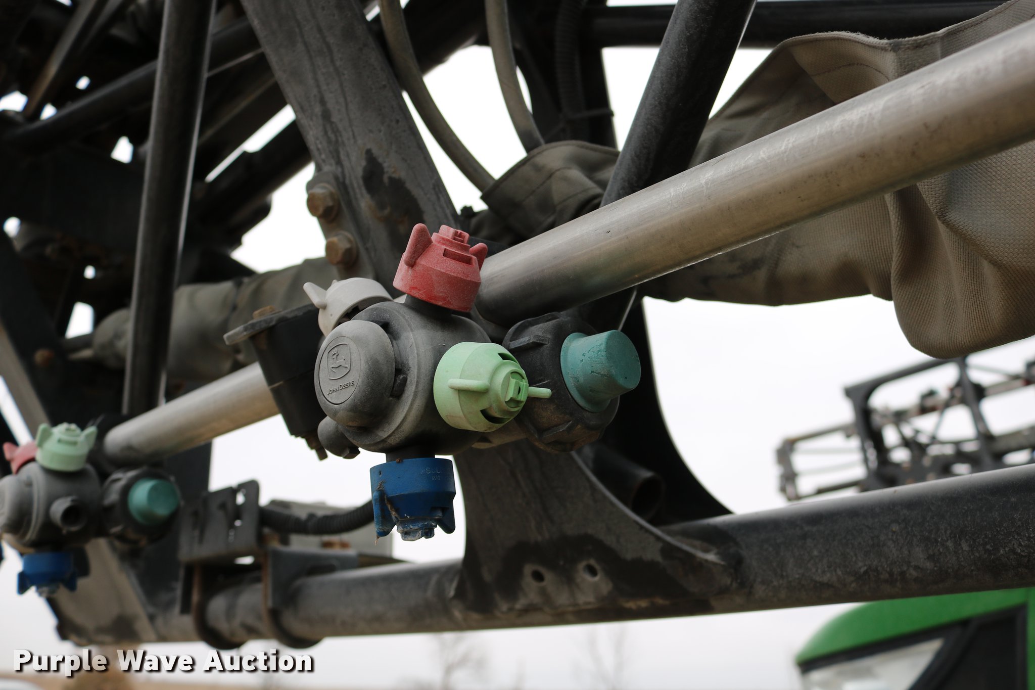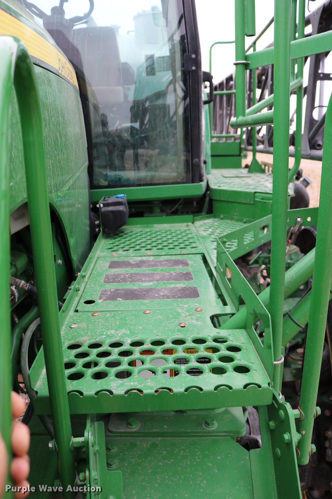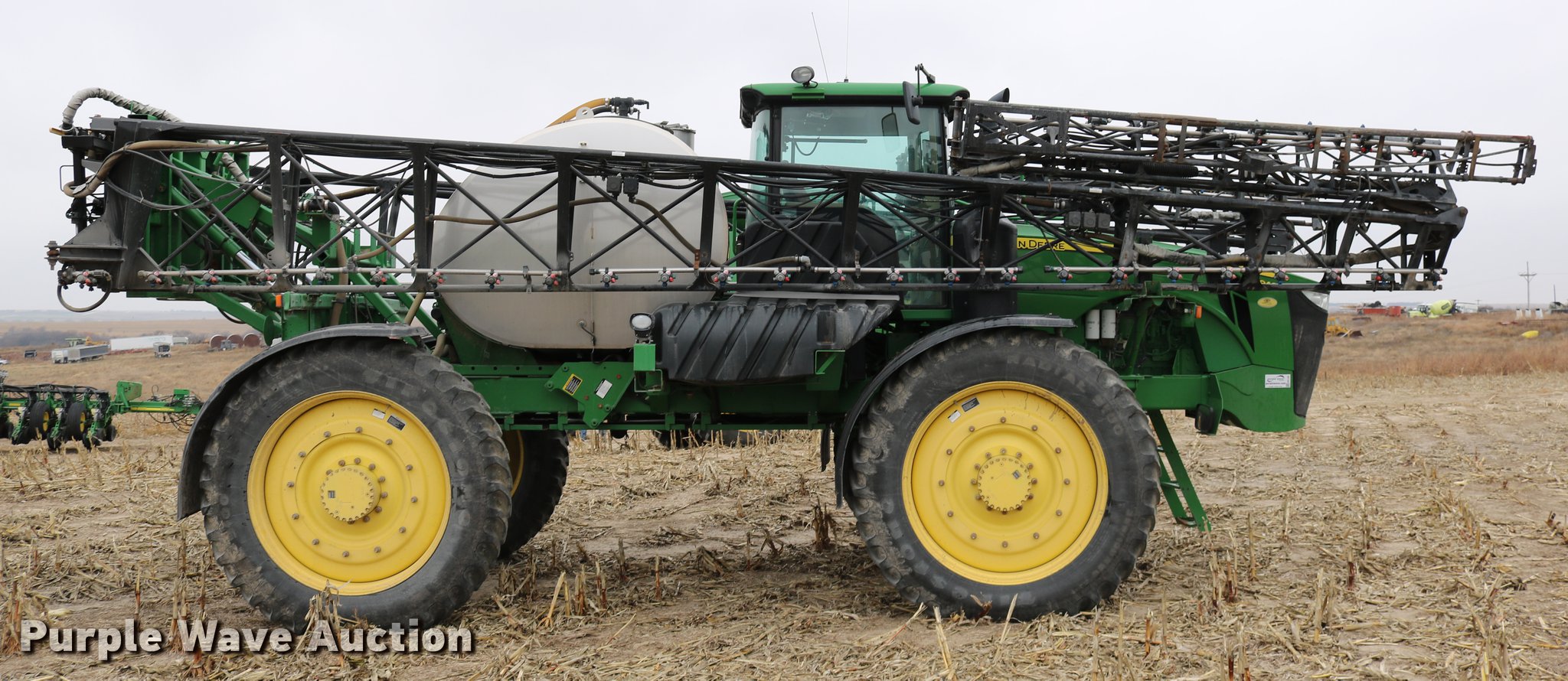 Purple Wave is selling a used Applicator Self Propelled in Kansas. This item is a 2012 John Deere 4940 self-propelled sprayer with the following: 1,474 engine hours on meter, 466 spray hours on meter, John Deere 9.0L six cylinder turbo diesel engine, Serial RG6090R006147, Hydrostatic transmission, Four wheel drive, 1,200 gallon stainless steel solution tank, Five gallon stainless steel chemical eductor tank, 170 gallon rinse tank, 1.5 gallon foam maker tank, 120'W boom, Seven boom sections, Break-away boom, Hydraulic boom fold, Hydraulic height control, Automatic height control, 15" nozzle spacing, Five-way nozzle bodies, Right side fence row nozzles, Swath control, AC and heat, AM/FM, Suspension seat, Work lights, GPS monitor, John Deere spray controls, Auto steer, Ground radar, Block heater, Hydraulic ladder, Fenders, Belly shield, Hydraulic axle width adjust, 380/105R50 row crop tires, Serial 1N04940XCB0018066