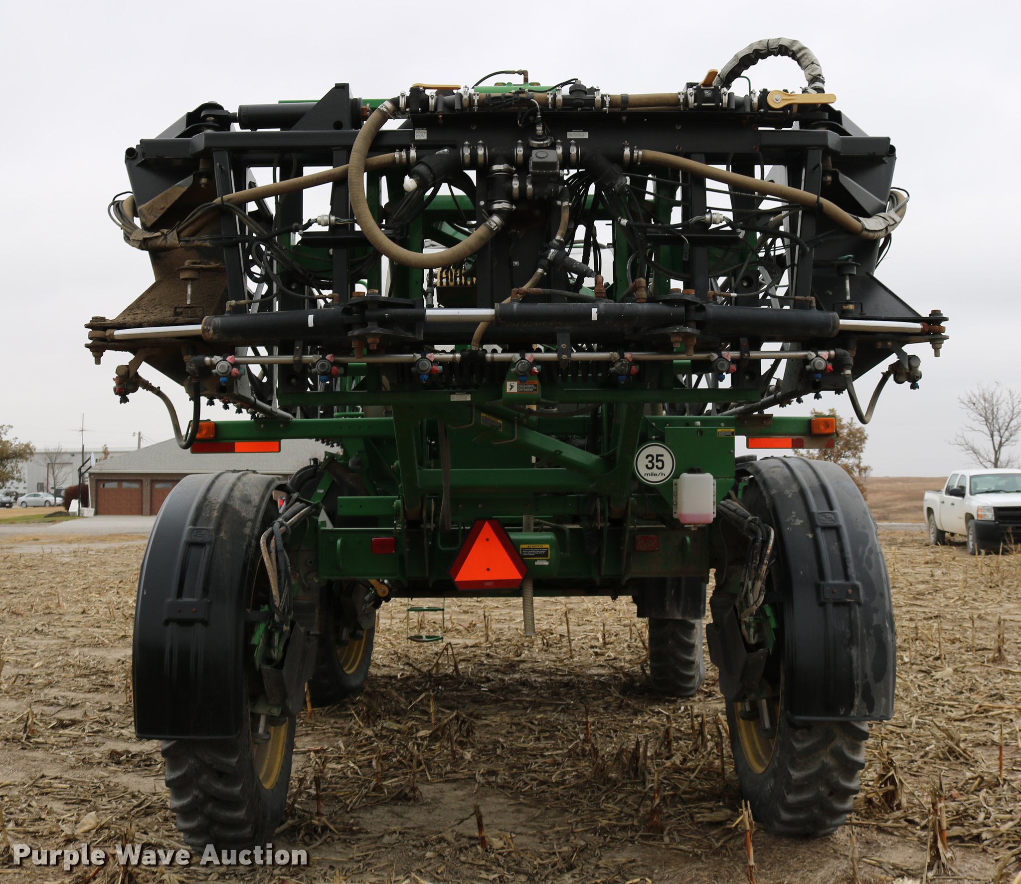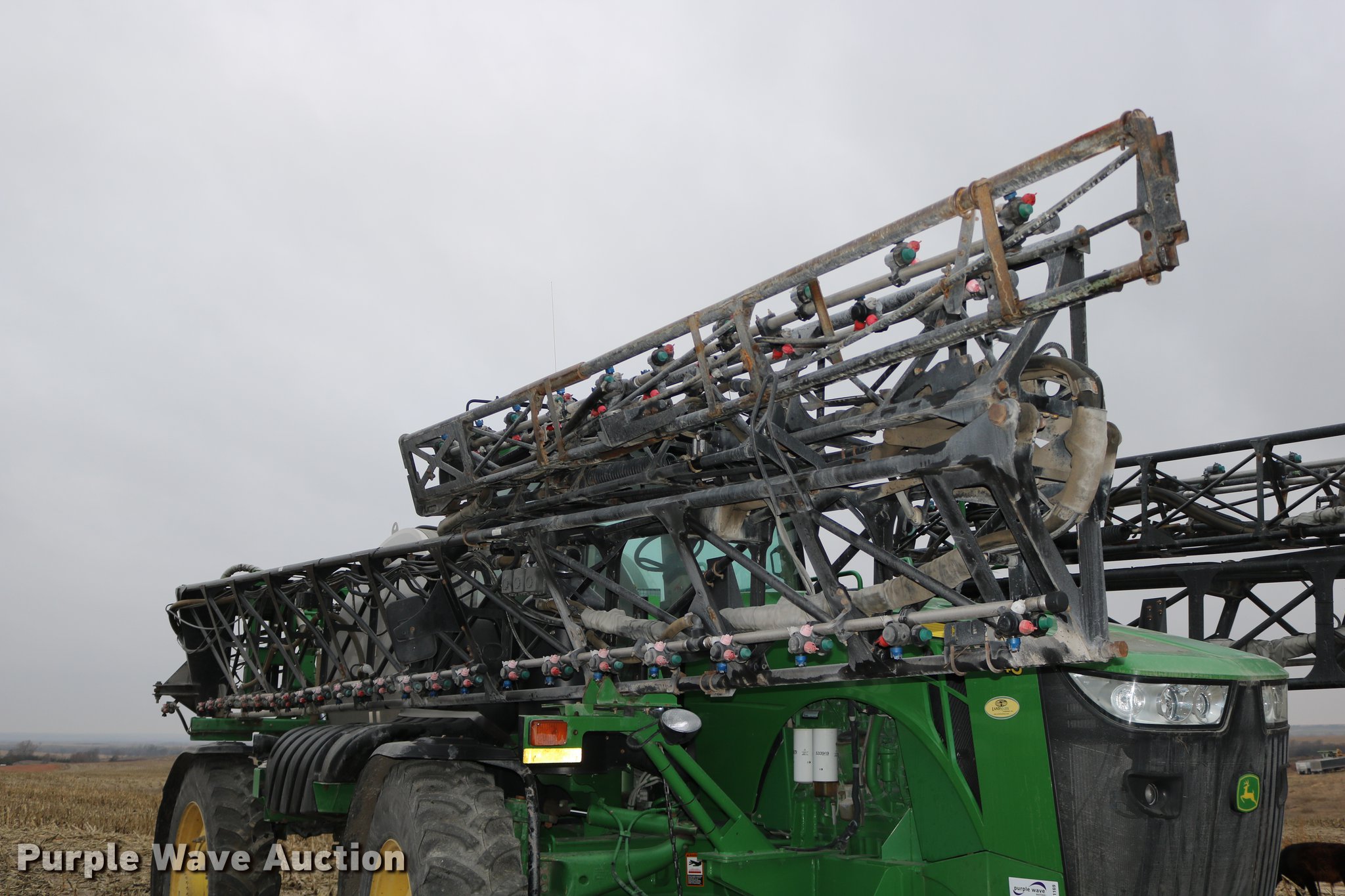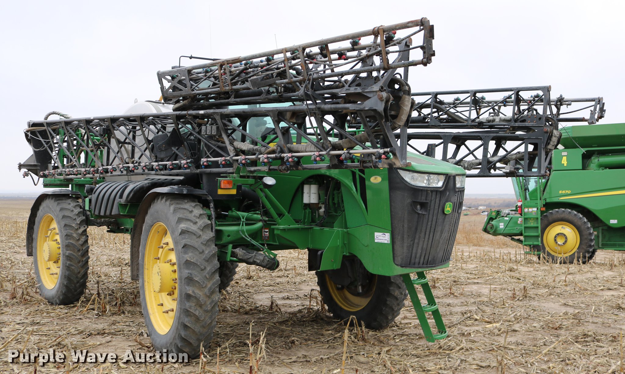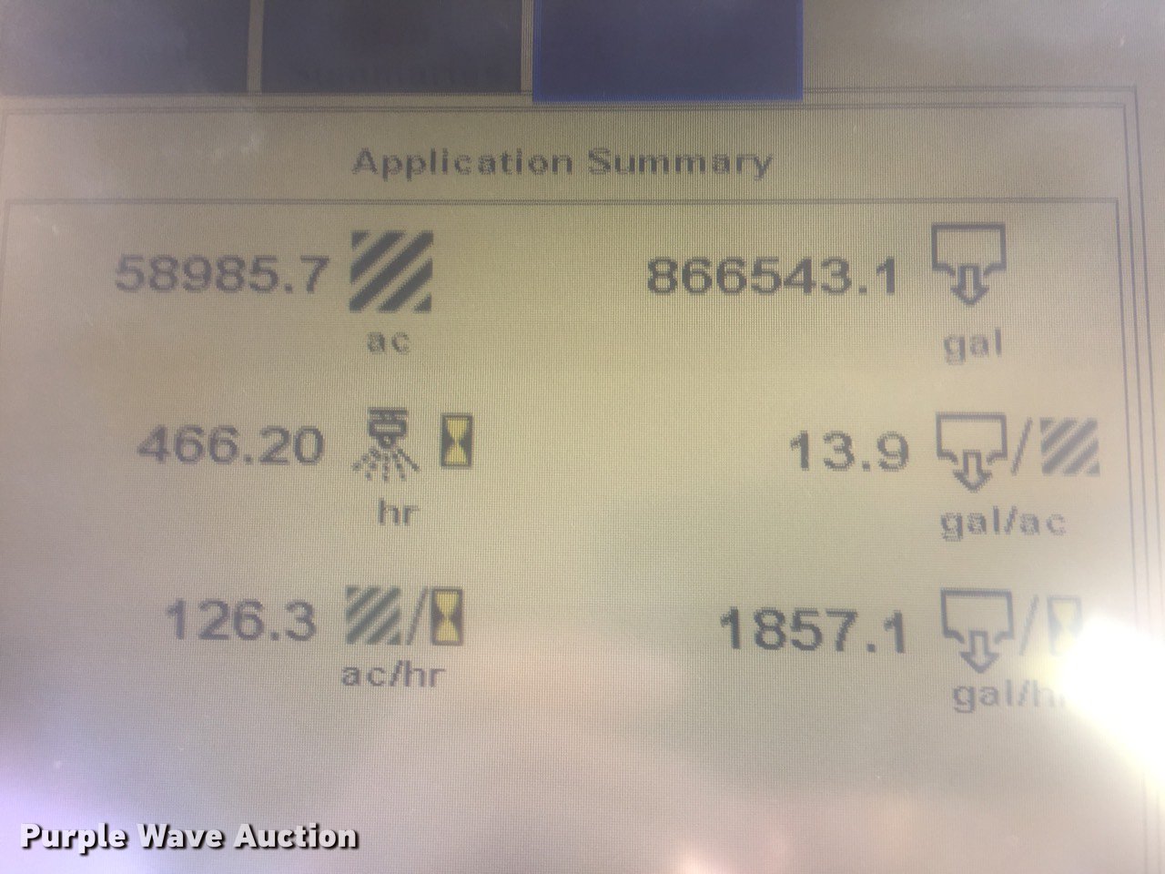 Purple Wave is selling a used Applicator Self Propelled in Kansas. This item is a 2012 John Deere 4940 self-propelled sprayer with the following: 1,474 engine hours on meter, 466 spray hours on meter, John Deere 9.0L six cylinder turbo diesel engine, Serial RG6090R006147, Hydrostatic transmission, Four wheel drive, 1,200 gallon stainless steel solution tank, Five gallon stainless steel chemical eductor tank, 170 gallon rinse tank, 1.5 gallon foam maker tank, 120'W boom, Seven boom sections, Break-away boom, Hydraulic boom fold, Hydraulic height control, Automatic height control, 15" nozzle spacing, Five-way nozzle bodies, Right side fence row nozzles, Swath control, AC and heat, AM/FM, Suspension seat, Work lights, GPS monitor, John Deere spray controls, Auto steer, Ground radar, Block heater, Hydraulic ladder, Fenders, Belly shield, Hydraulic axle width adjust, 380/105R50 row crop tires, Serial 1N04940XCB0018066