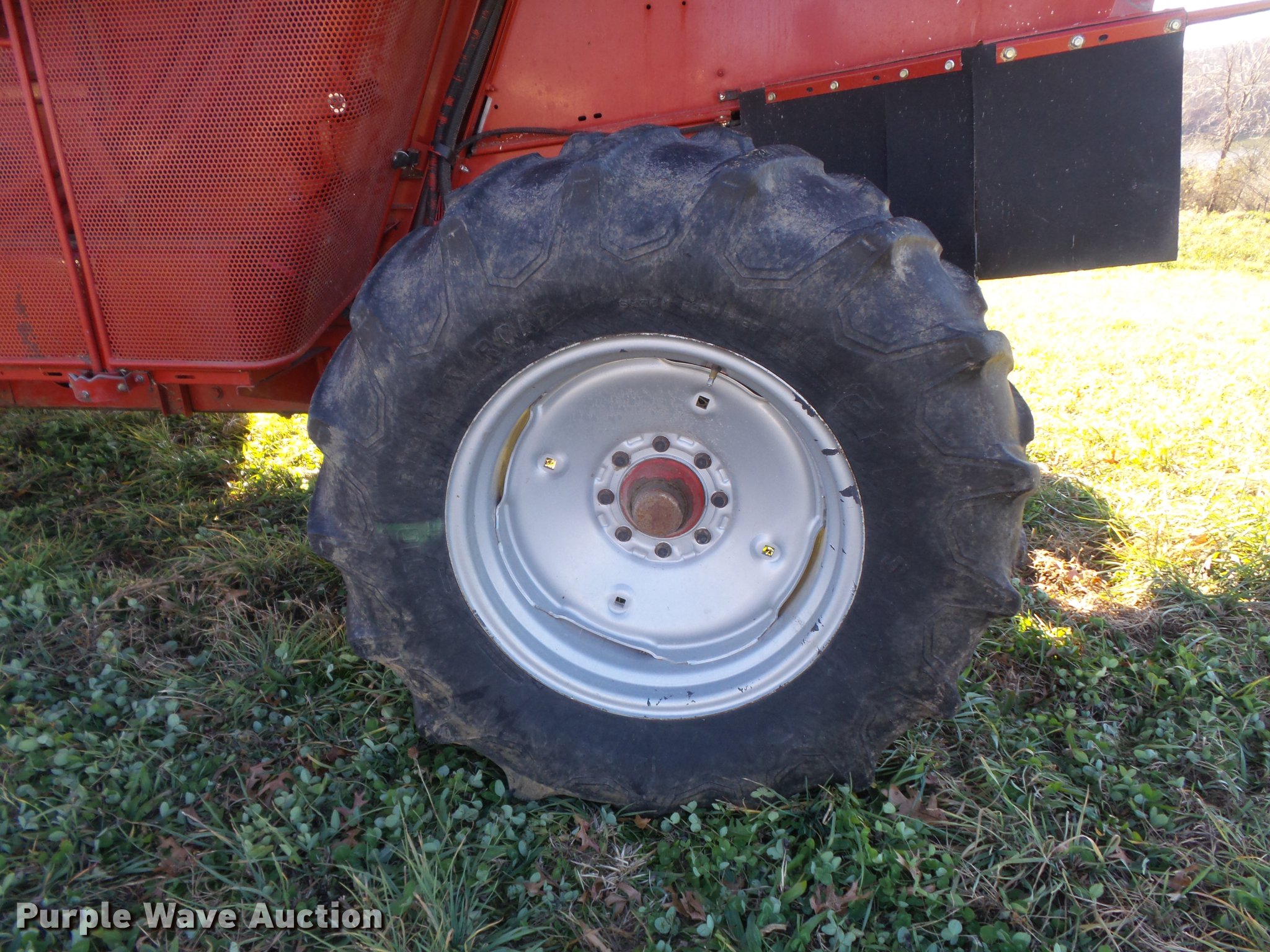 1997 Case IH 2144 combine. 3,508 engine hours on meter, 2,532 separator hours on meter, Cummins 6TA-590 5.9L six cylinder turbo diesel engine 180 HP, Serial 45569092, Hydrostatic transmission, Feederhouse Variable speed, Reverser, AC and heat, Tilt steering wheel, AM/FM, Suspension seat, Instructor's seat, Block heater, Ether start, Corn/soybean concaves, Chaff spreader, Straw chopper, Bin extensions, Work lights, 24.5-32 front tires, 14.9-24 rear tires, Operators manual, Serial JJC0173454. Elsberry, MO 63343