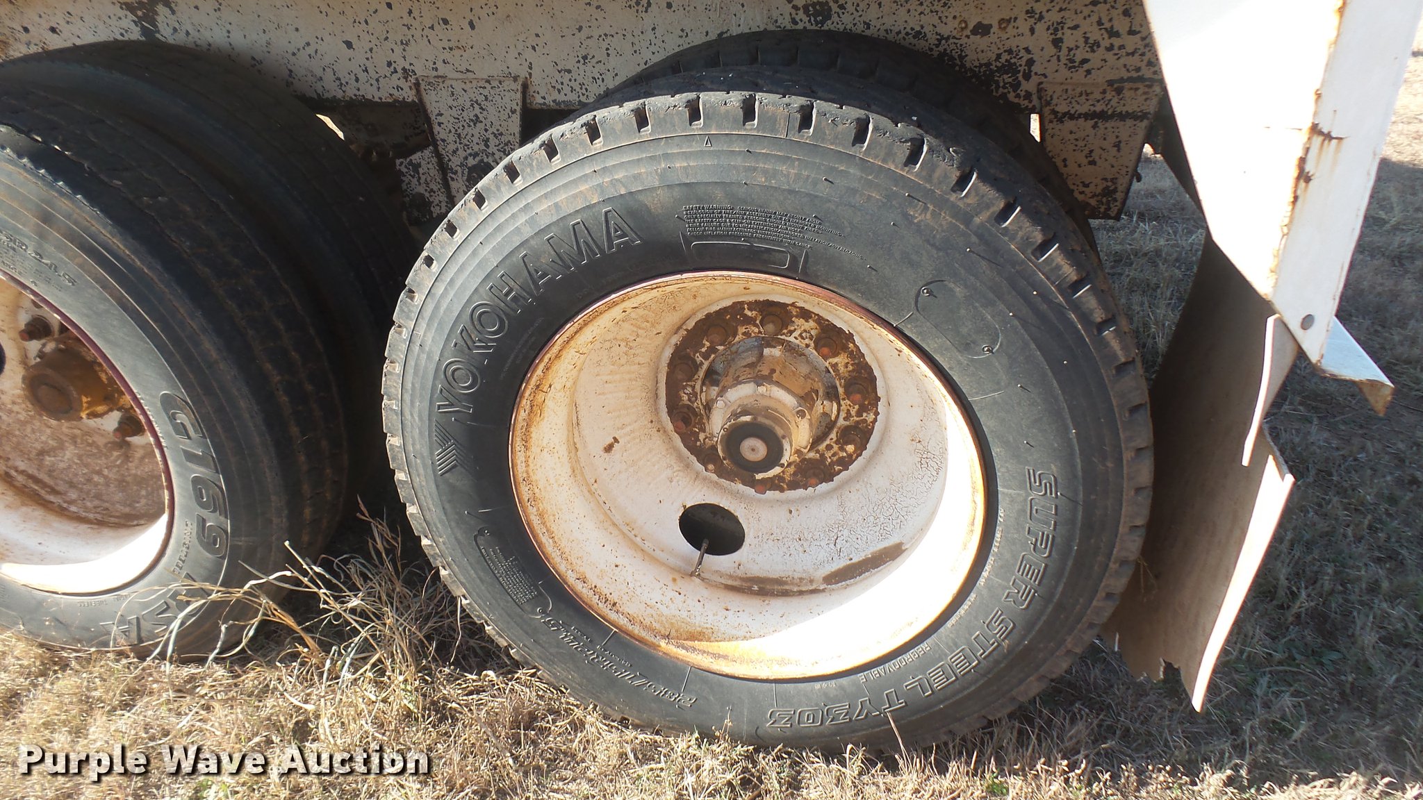 Purple Wave is selling a used Grain or Commodity Trailer in Kansas. This item is a 2005 MCM double hopper bottom grain trailer with the following: 38'L, Approx. 60" side height, Manual trap gates, Roll tarp, Steel construction, Fifth wheel plate, Dual leg landing gear, Spring suspension, Air brakes, Tandem axle, 285/75R24.5 tires