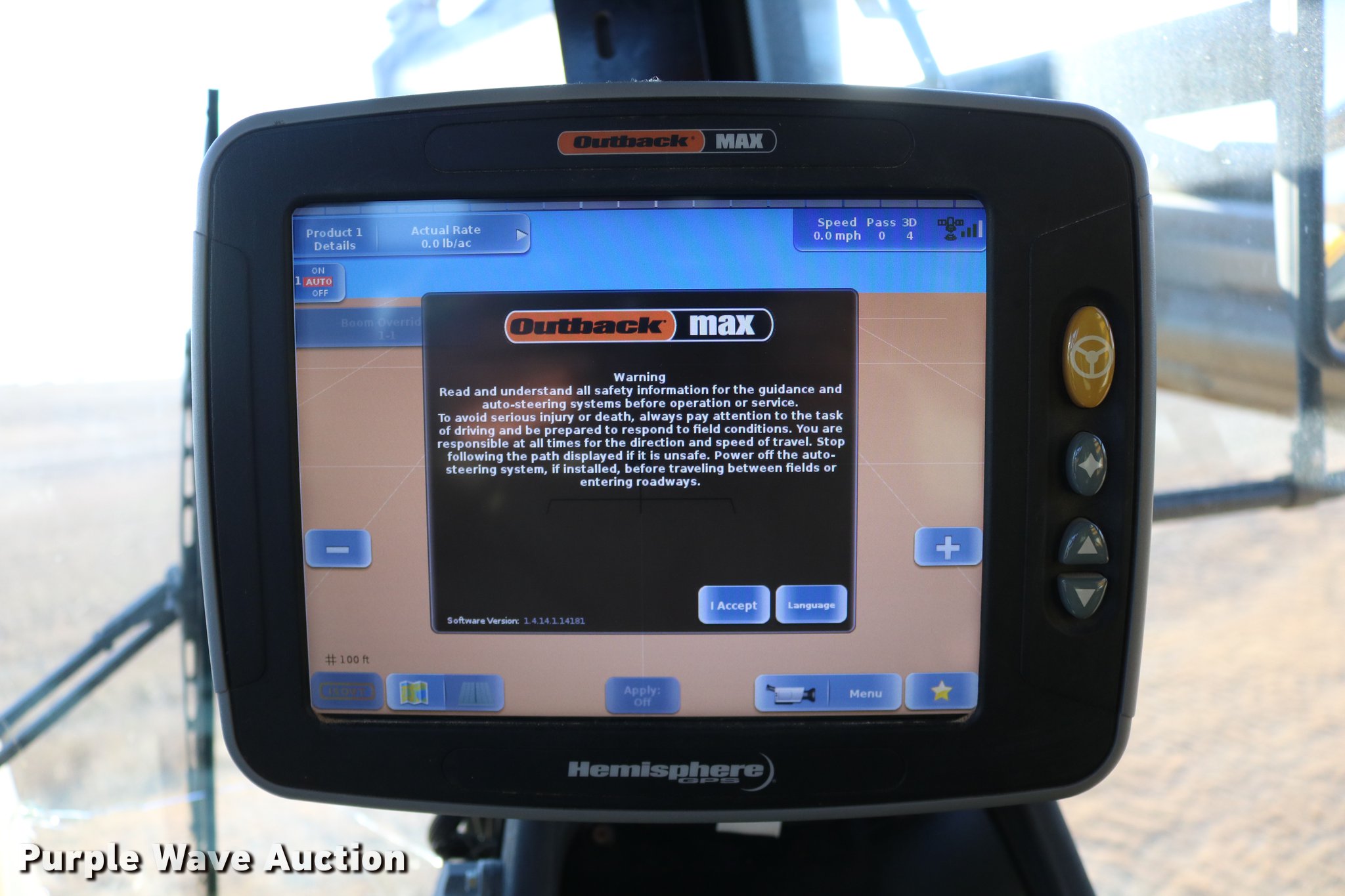 Purple Wave is selling a used Applicator Self Propelled in Kansas. This item is a 2003 Ag-Chem TerraGator 8104 self-propelled applicator with the following: 9,952 miles on odometer, 3,868 engine hours on meter, 1,055 spreader hours on meter, John Deere 8.1L six cylinder turbo diesel engine, 325 HP, Terra powershift transmission, 11F-4R gears, AC and heat, Non-operational AC, AM/FM, Air suspension seat, Work lights, Outback Hemisphere GPS monitor, Outback E-Drive GPS receiver, Auto steer, Ag-Chem AM1000 dry fertilizer spreader, Five ton capacity, 70'W boom, Two boom sections, Rollover tarp, Stainless steel chain conveyors, Serial A1J-0232, Fenders, 48x31.00R20 front flotation tires, 66x43.00-25 rear flotation tires, Cracked windshield, Serial 84060703, Unit# C0000800