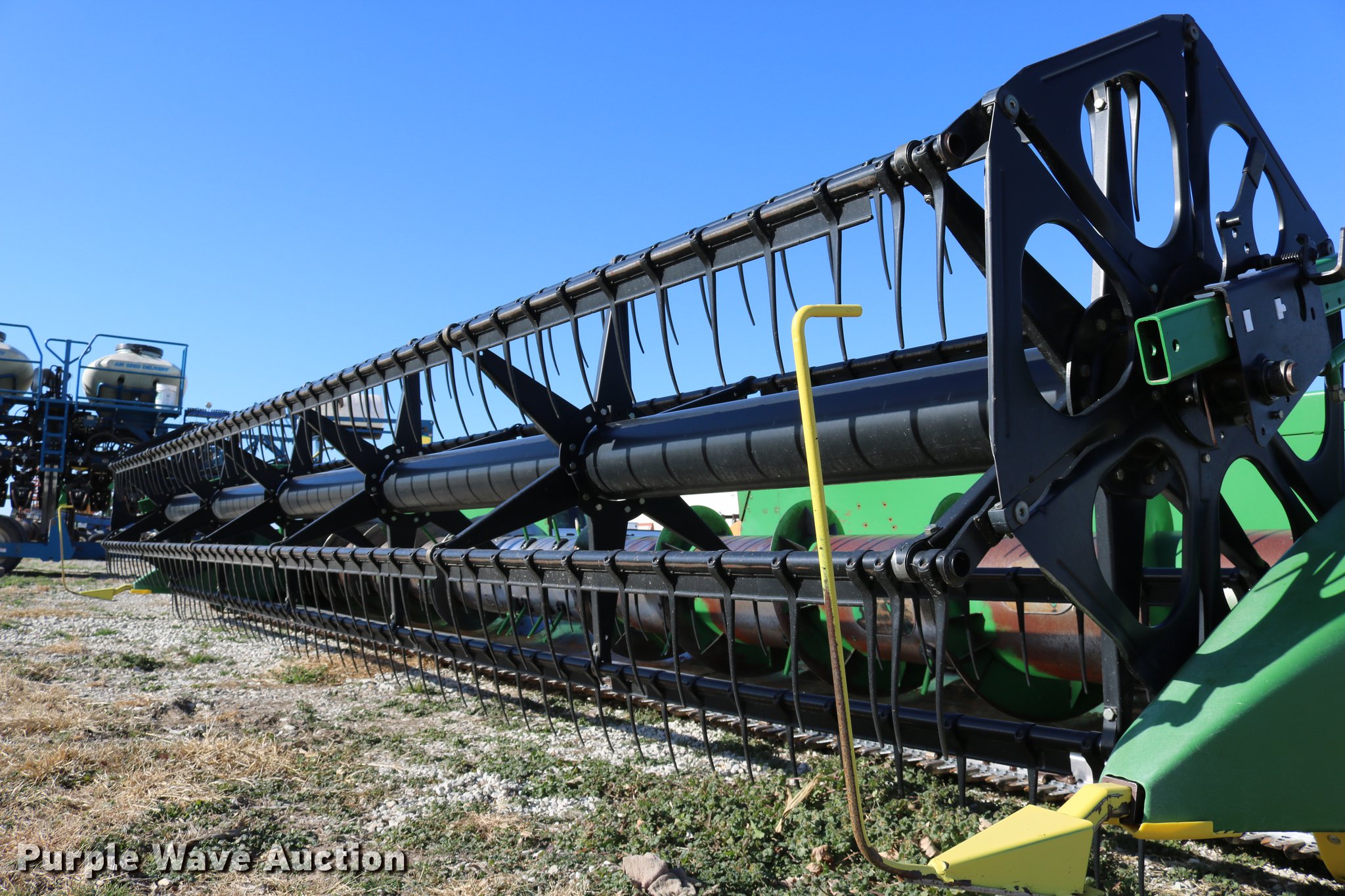 Purple Wave is selling a used Platform or Stripper Head in Kansas. This item is a 2004 John Deere 625F flex head with the following: 25'W, Finger reel, Auger with full finger, Hydraulic fore/aft, Hydraulic reel height control, Poly skid plates, High stone dam, Single driveline, Serial H00625F705996