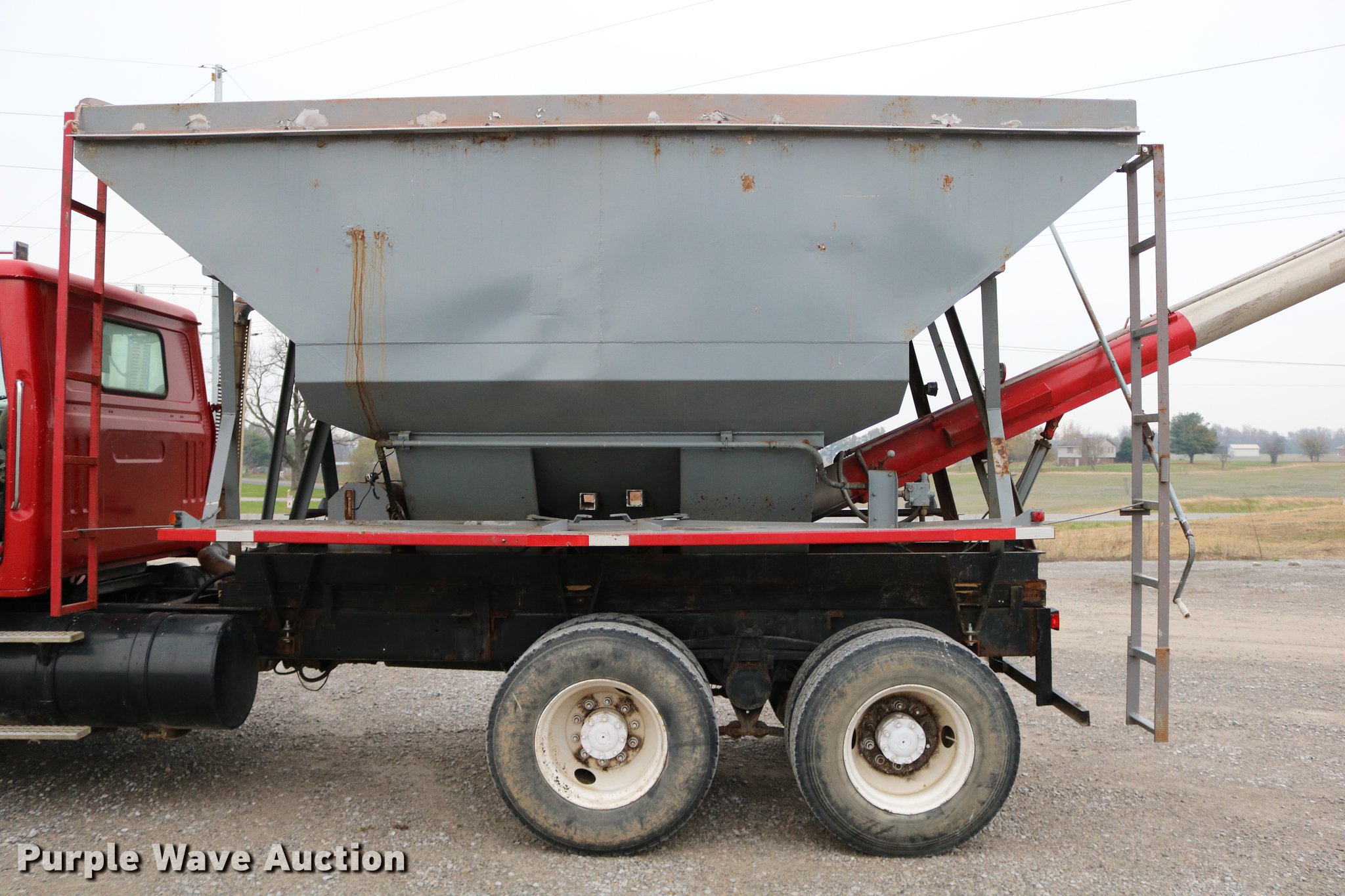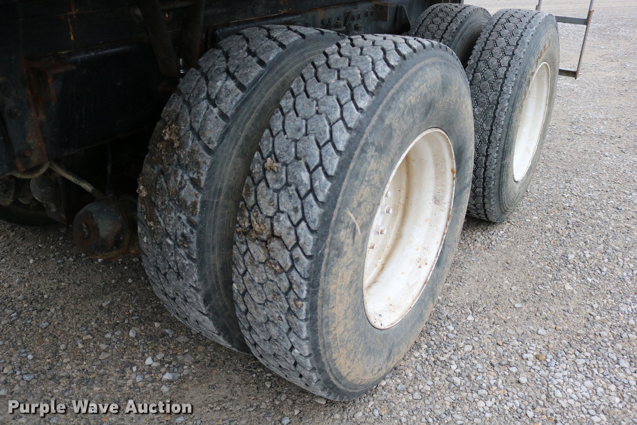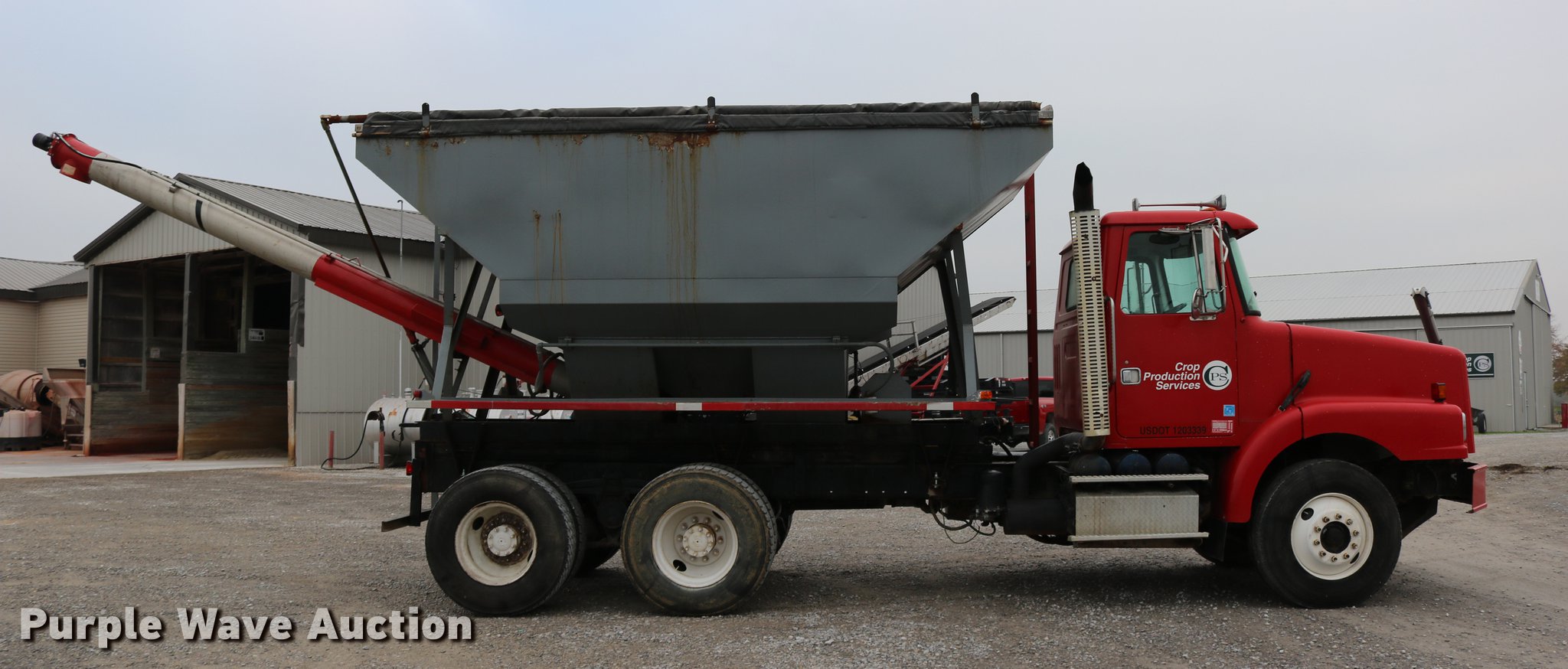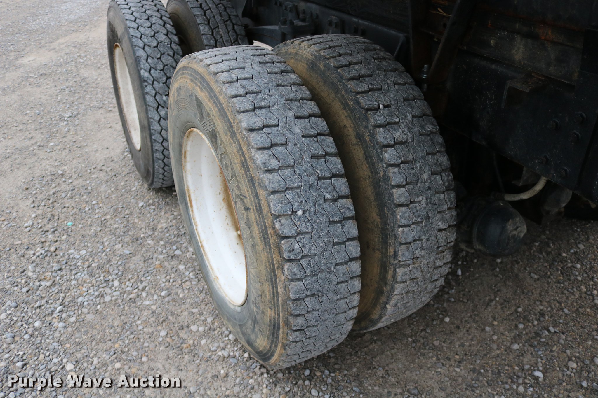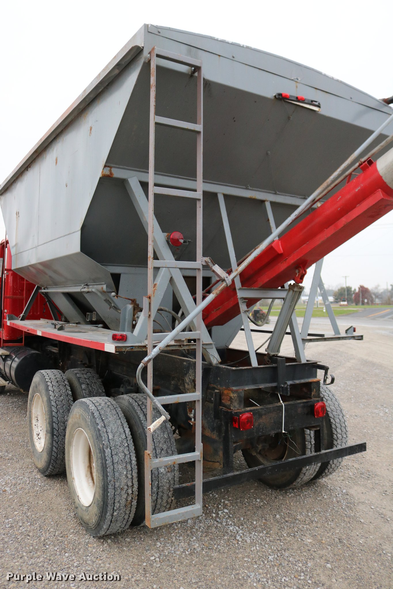 Purple Wave is selling a used Fertilizer or Feed Delivery Truck in Kentucky. This item is a 2000 Volvo WG fertilizer truck with the following: 168,345 miles on odometer, 1,701 hours on meter, Volvo VE D7 6.7L L6 turbo diesel engine, 700 HP, Eaton Fuller RTP-11908LL 10 speed manual transmission, Inter-axle differential lock, Tandem axle, AC and heat, Tilt, Air suspension seat, Block heater, 15'10"L x 95.5"W fertilizer bed, 19.5'L x 8" diameter discharge auger, Rear hydraulic lift, Roll over tarp, Rear/ground controls, 4:88 gear ratio, 196" wheelbase, Spring over walking beam suspension, 11R22.5 tires, GVWR 55,000 lbs, FAWR 13,220 lbs, Windshield cracked, Non-operational AC, No belt on AC compressor, No AC and heat fan switch, Unit# 78010/17254
